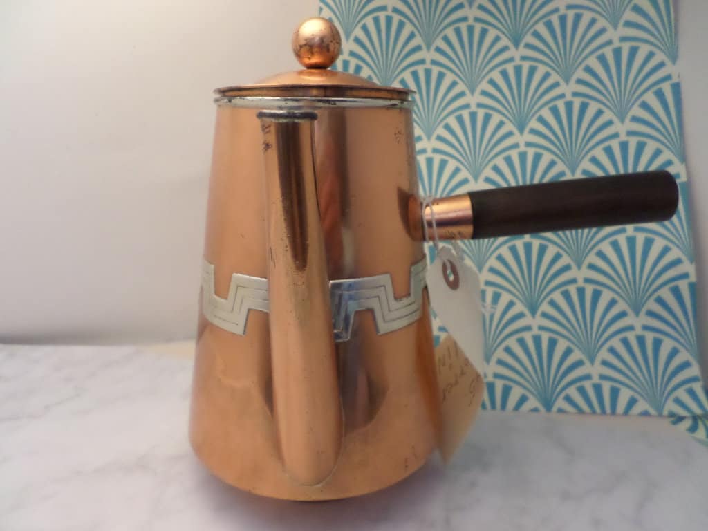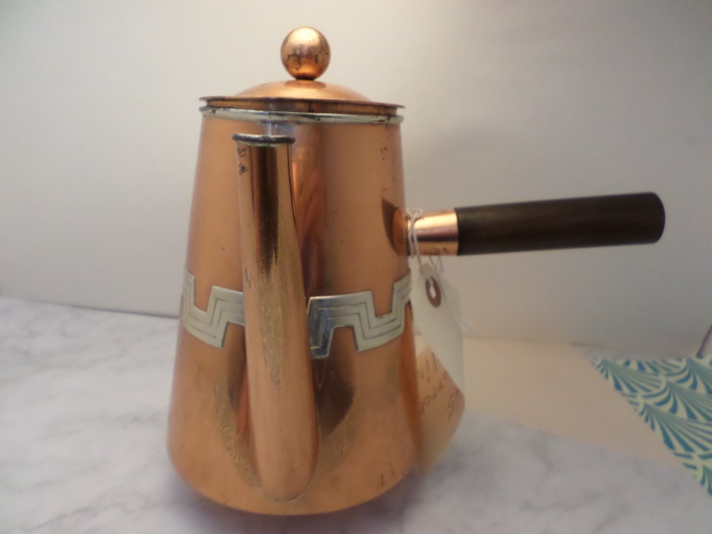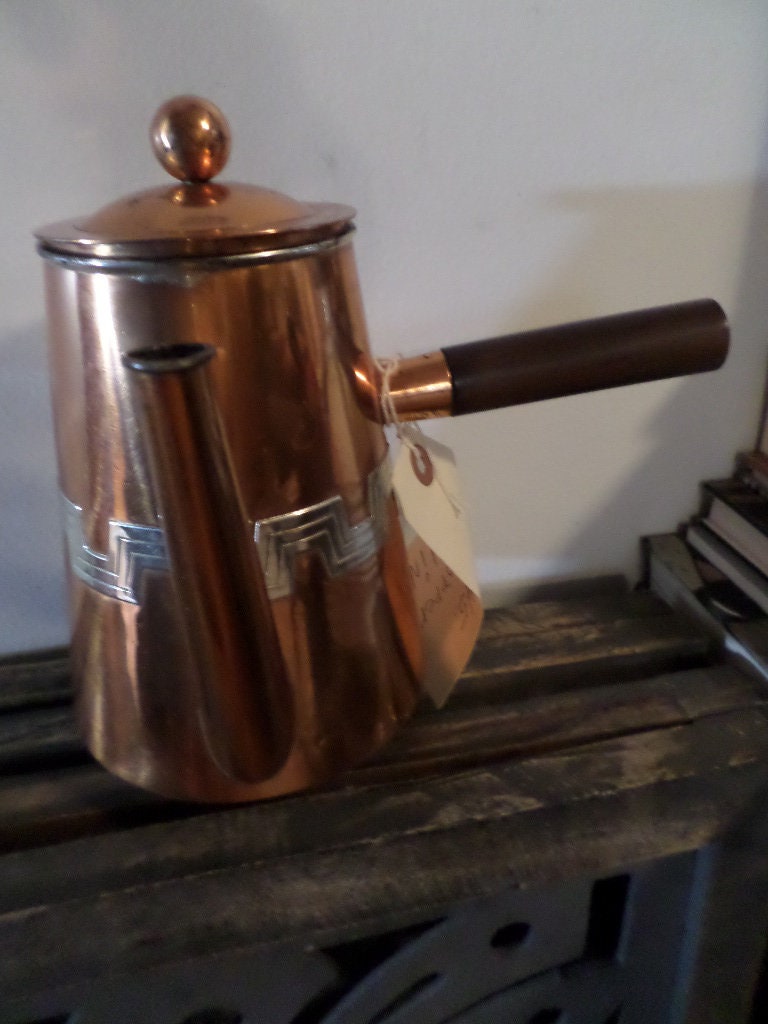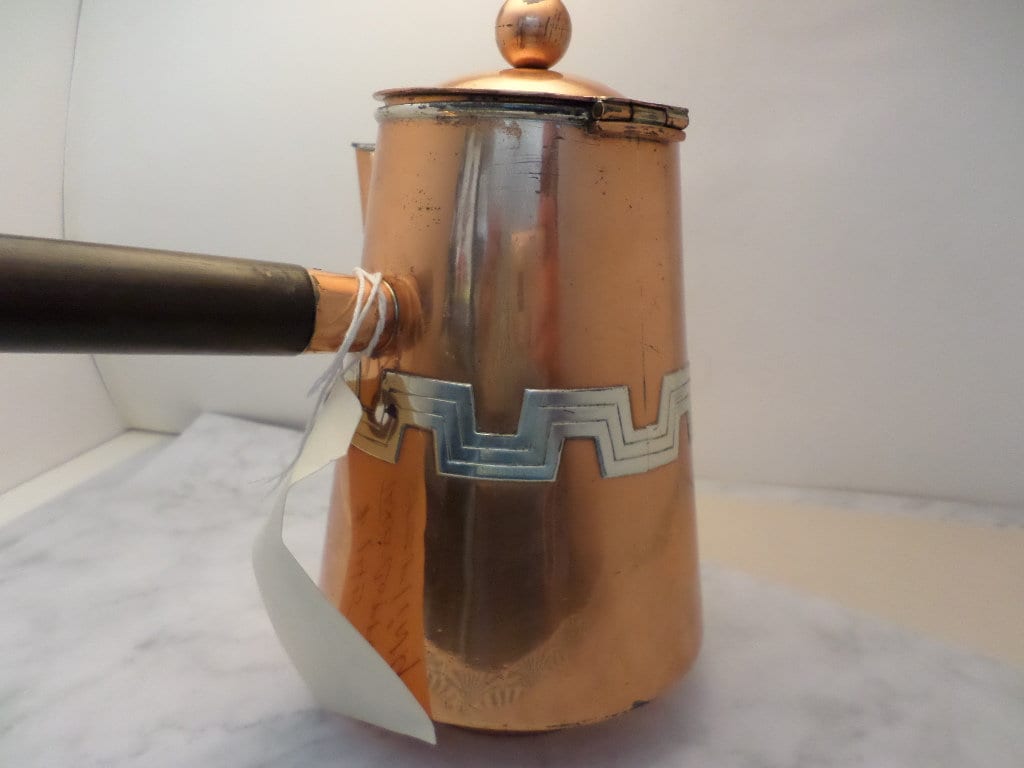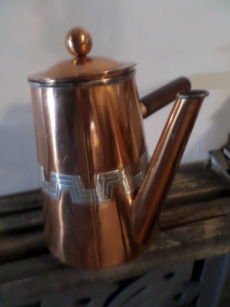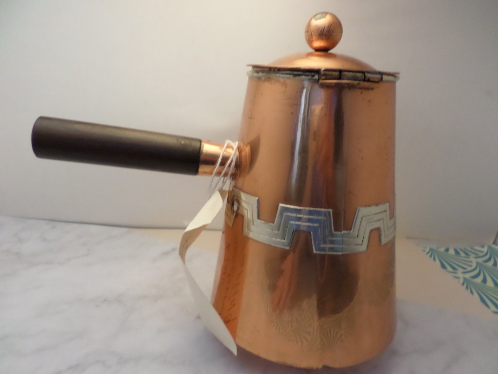 Vintage 1930's Taxco Victoria copper Turkish coffee pot geometric design incredible