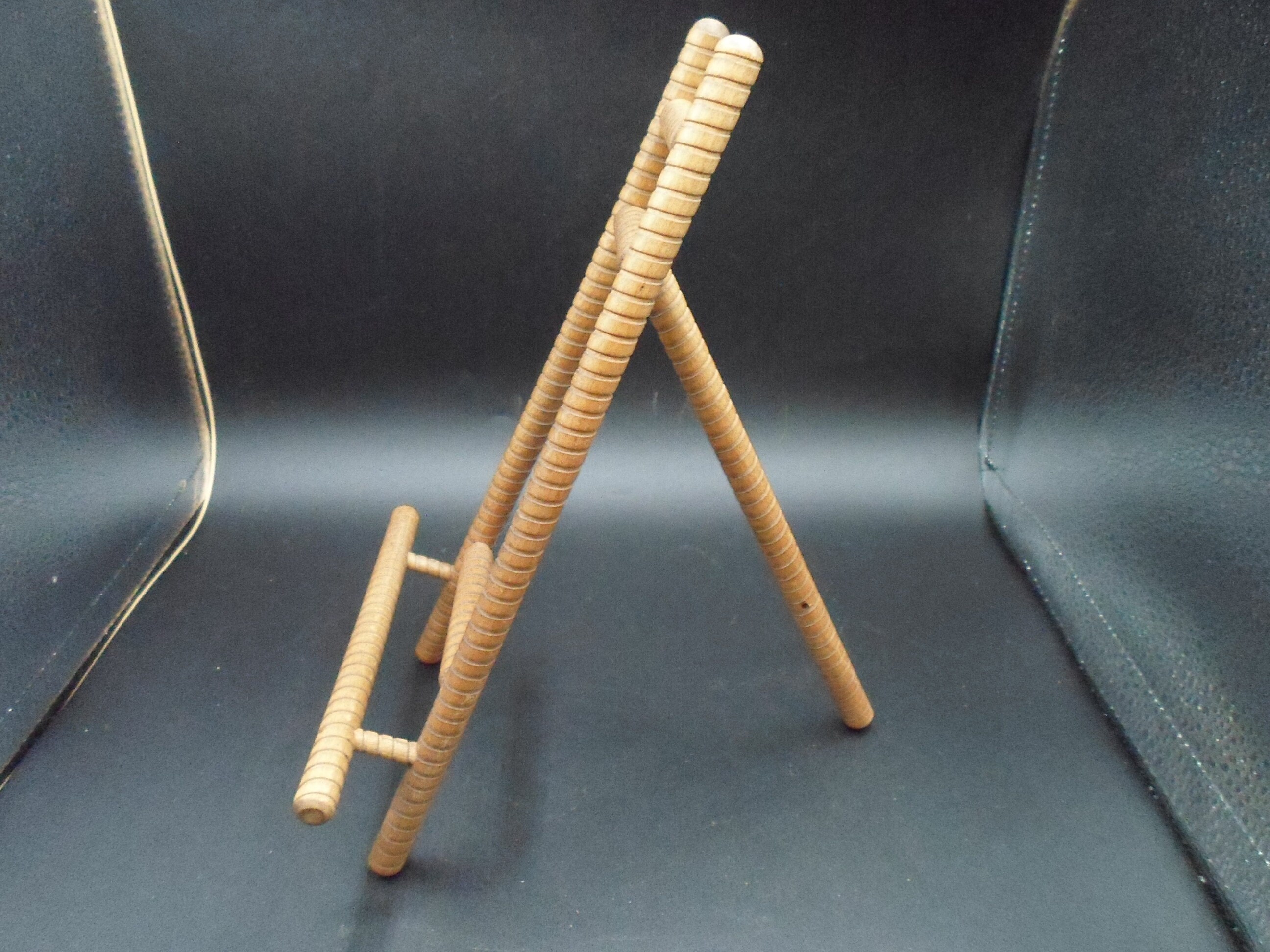 Antique Wood Easel Stand 10"tall 6" wide. Victorian Edwardian Style for small paintings pictures etc. Very good Vintage condition. This does not have a chain stopper.