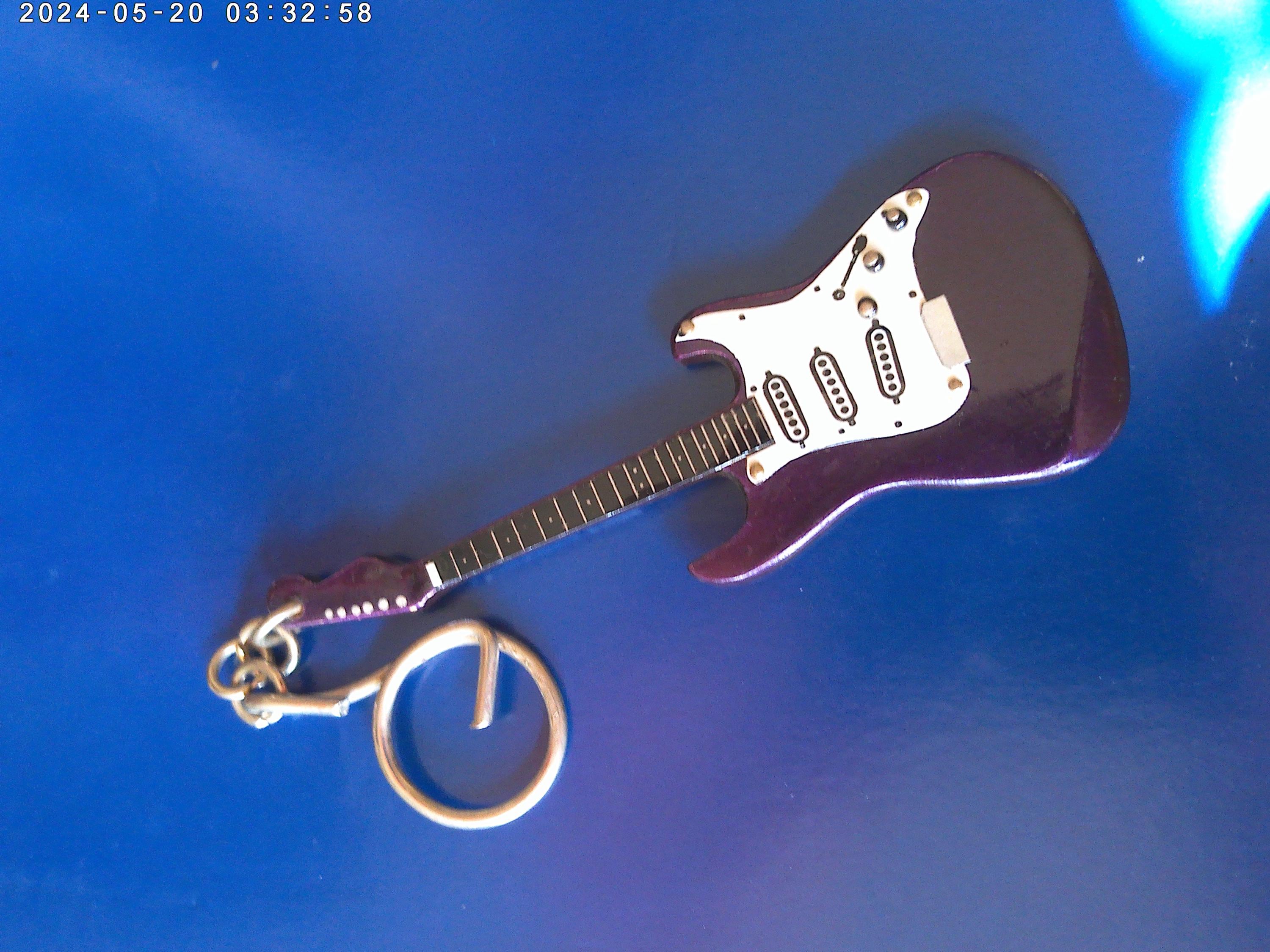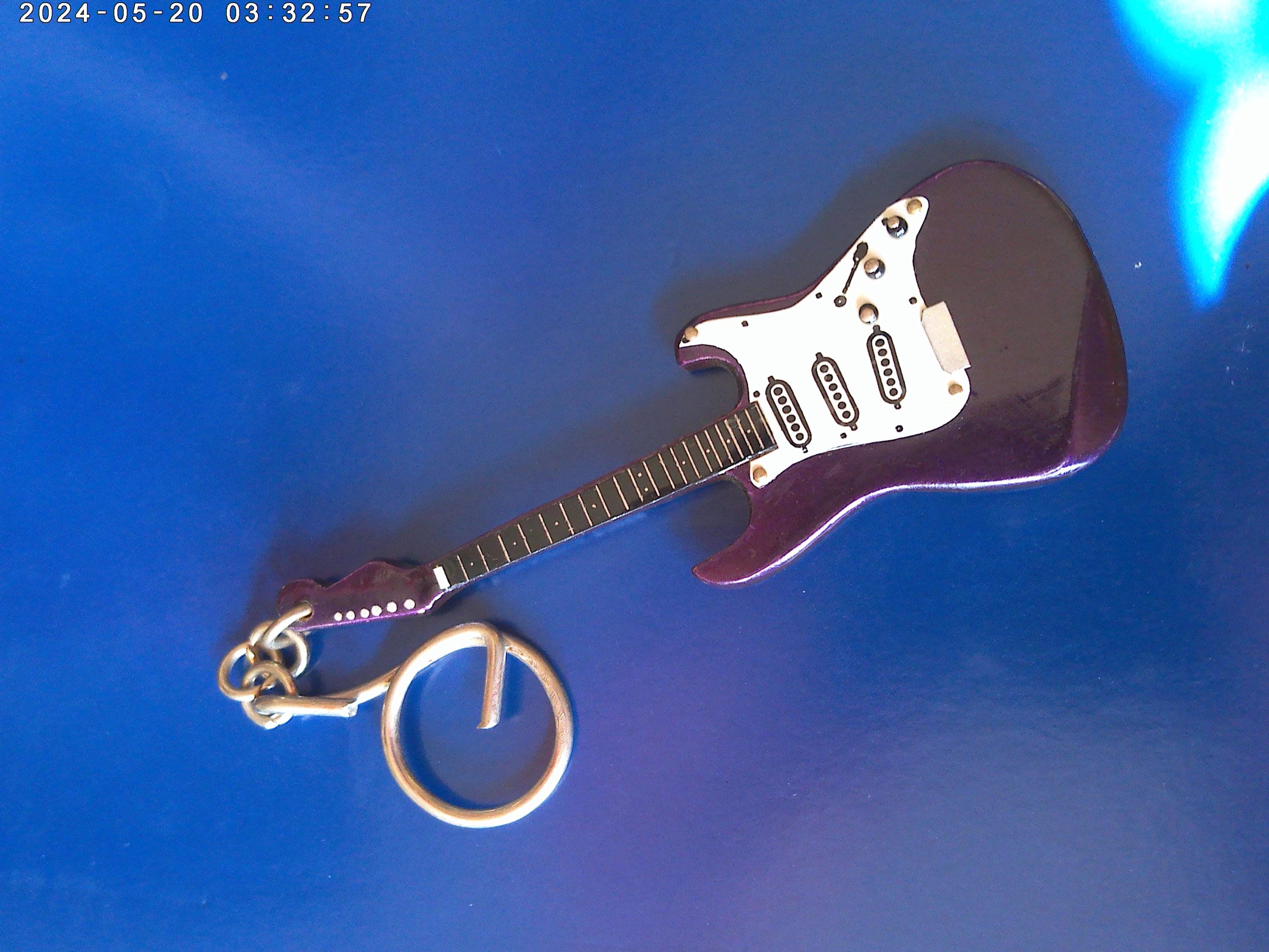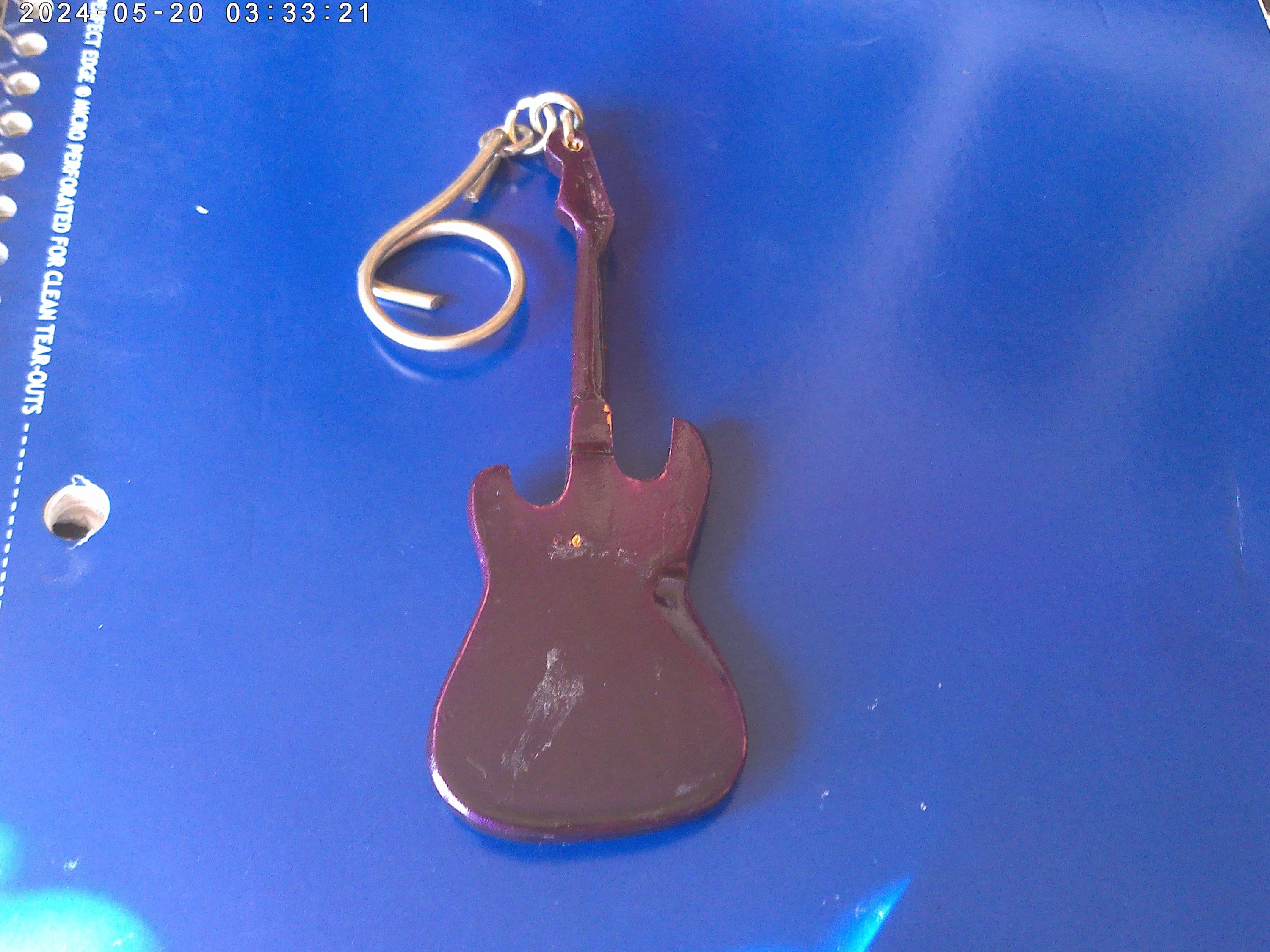 4" purple guitar carved out of wood, with details in metal, see photos.