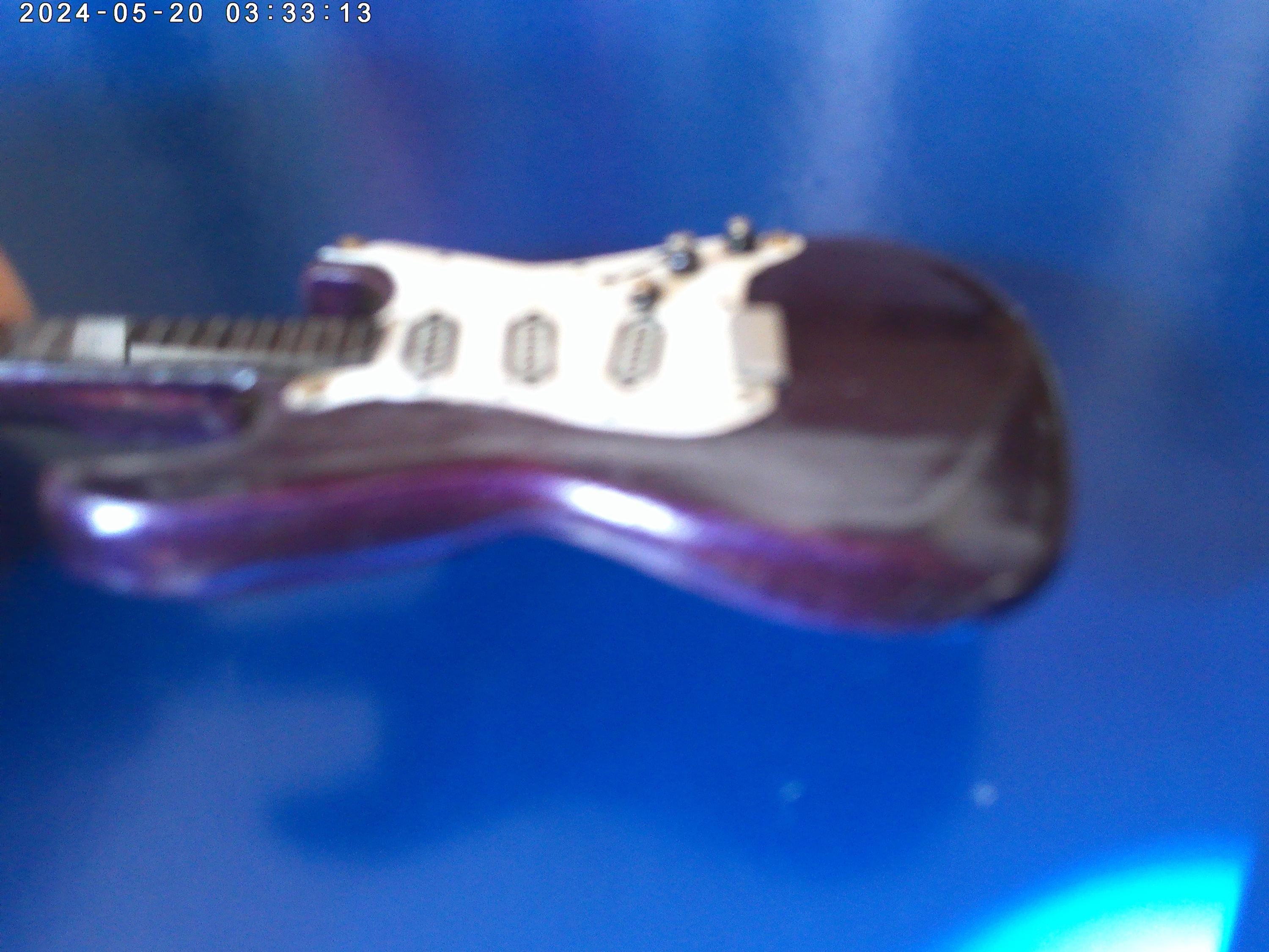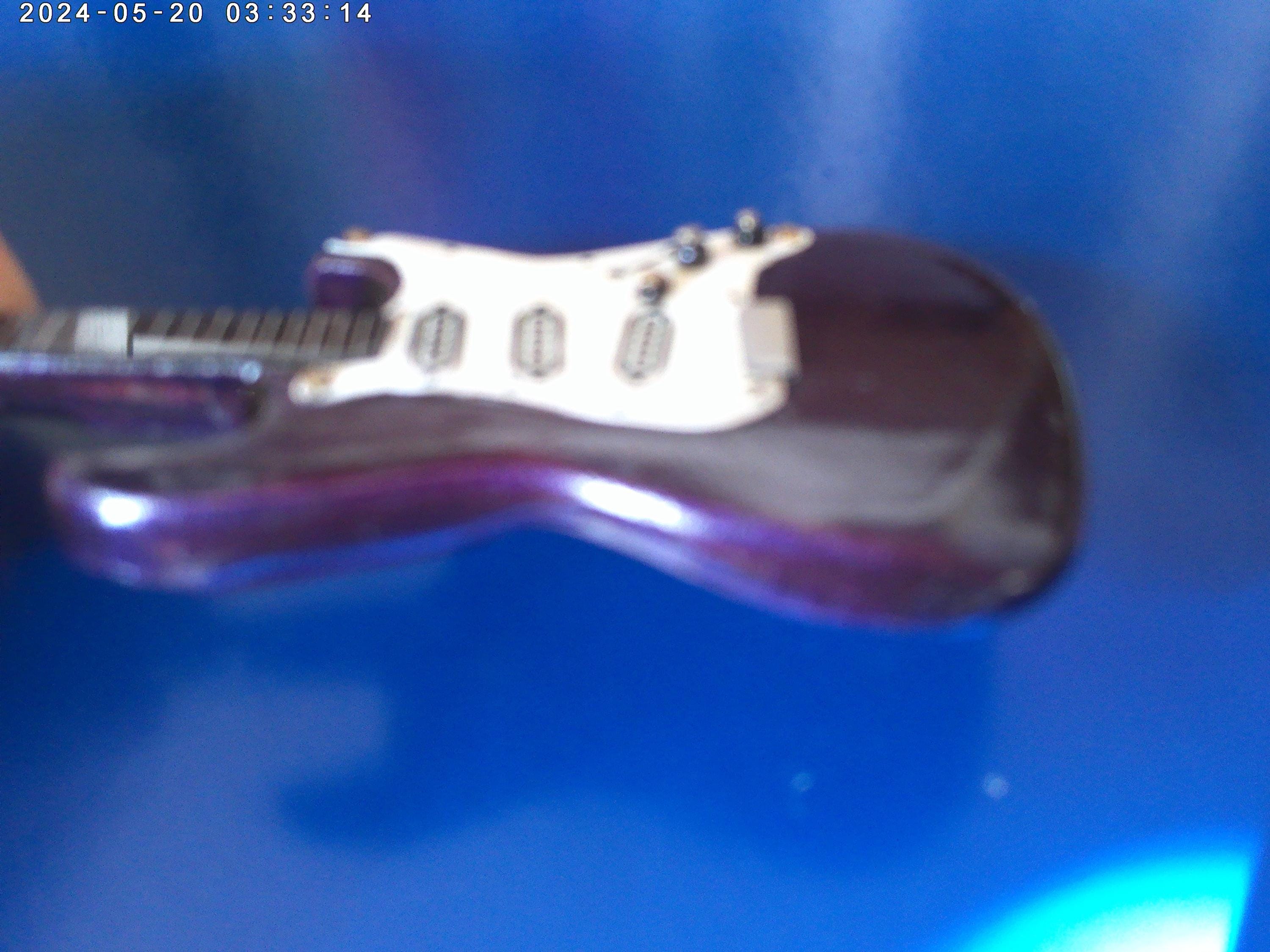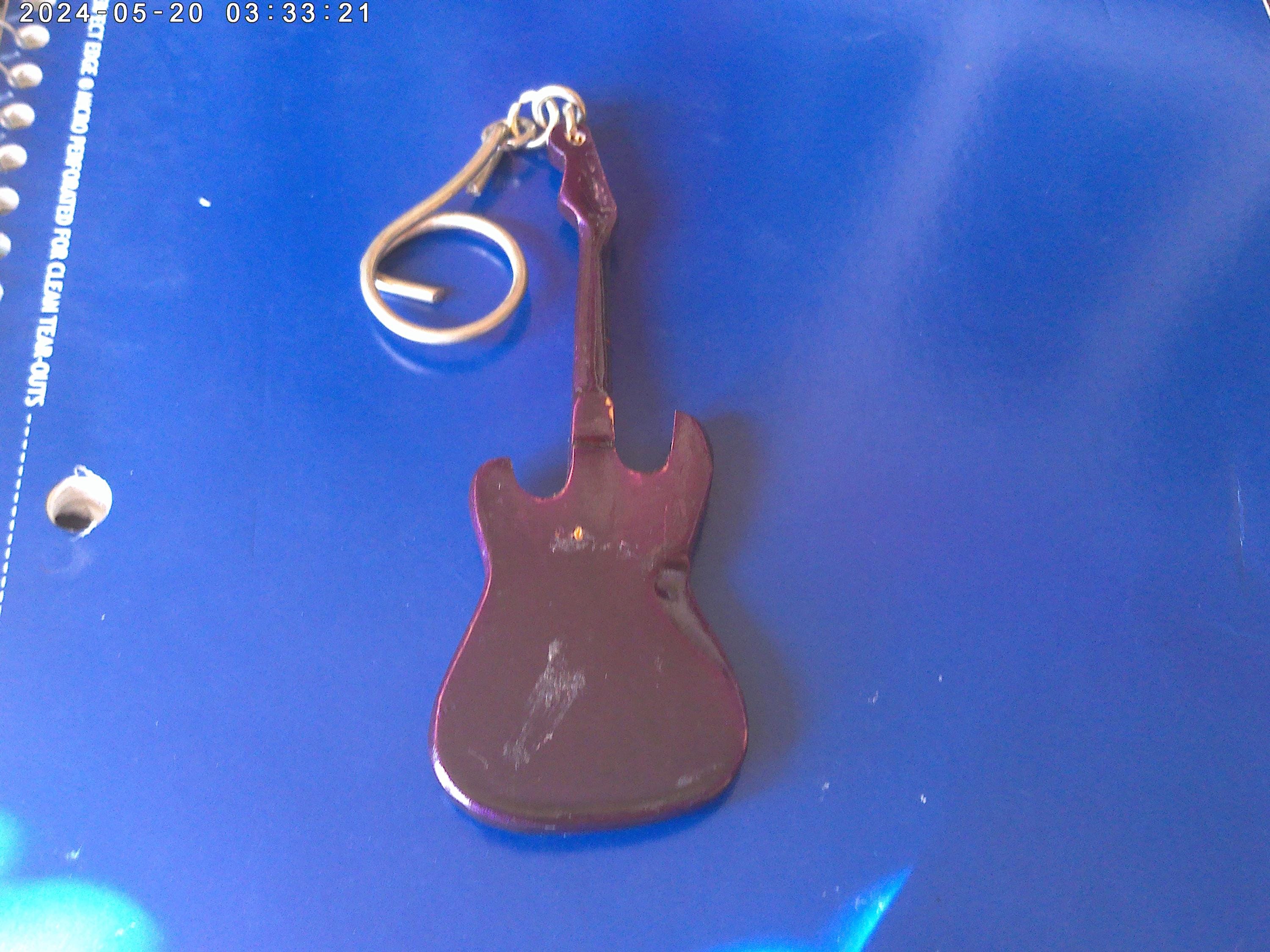 4" purple guitar carved out of wood, with details in metal, see photos.