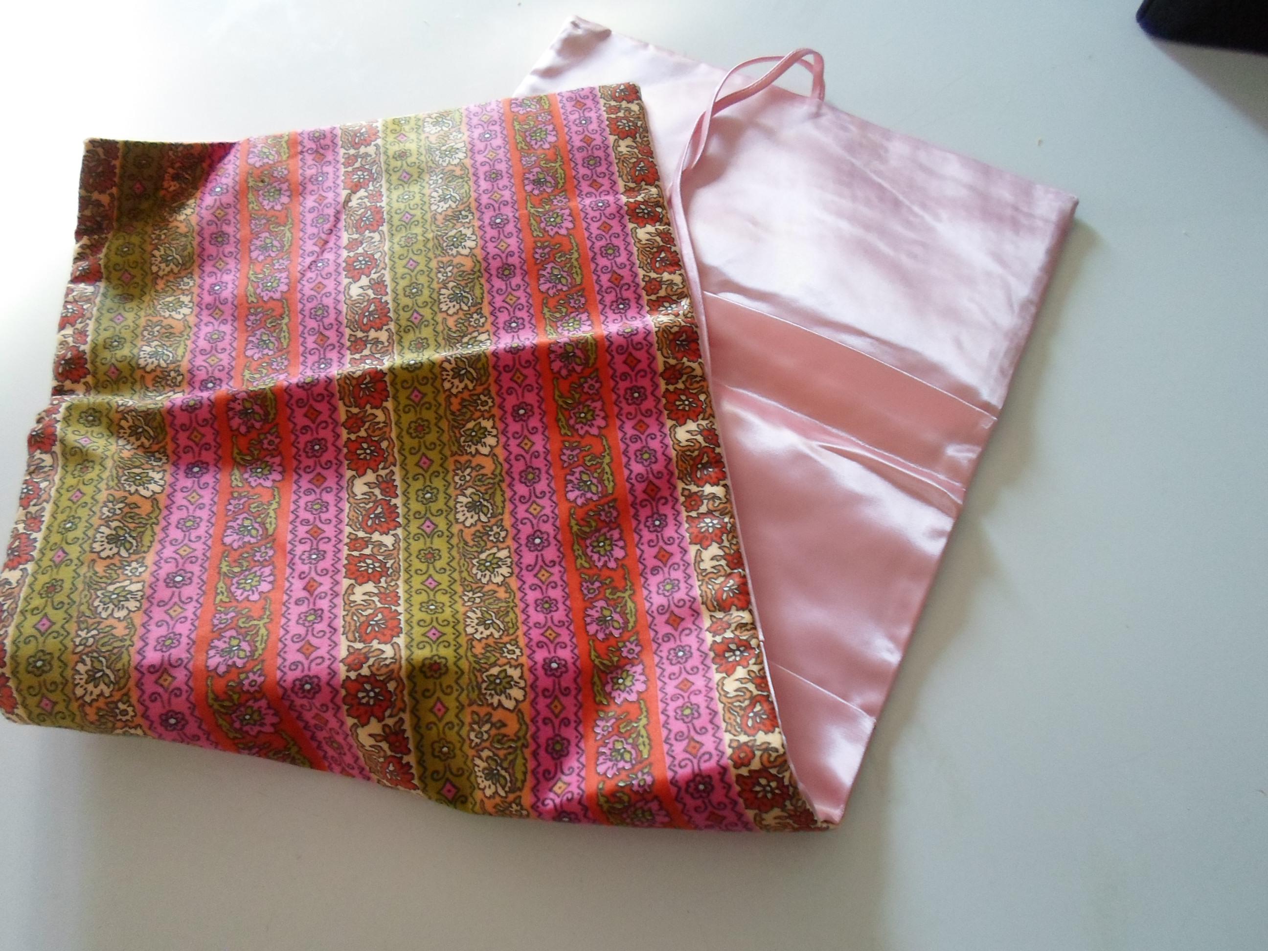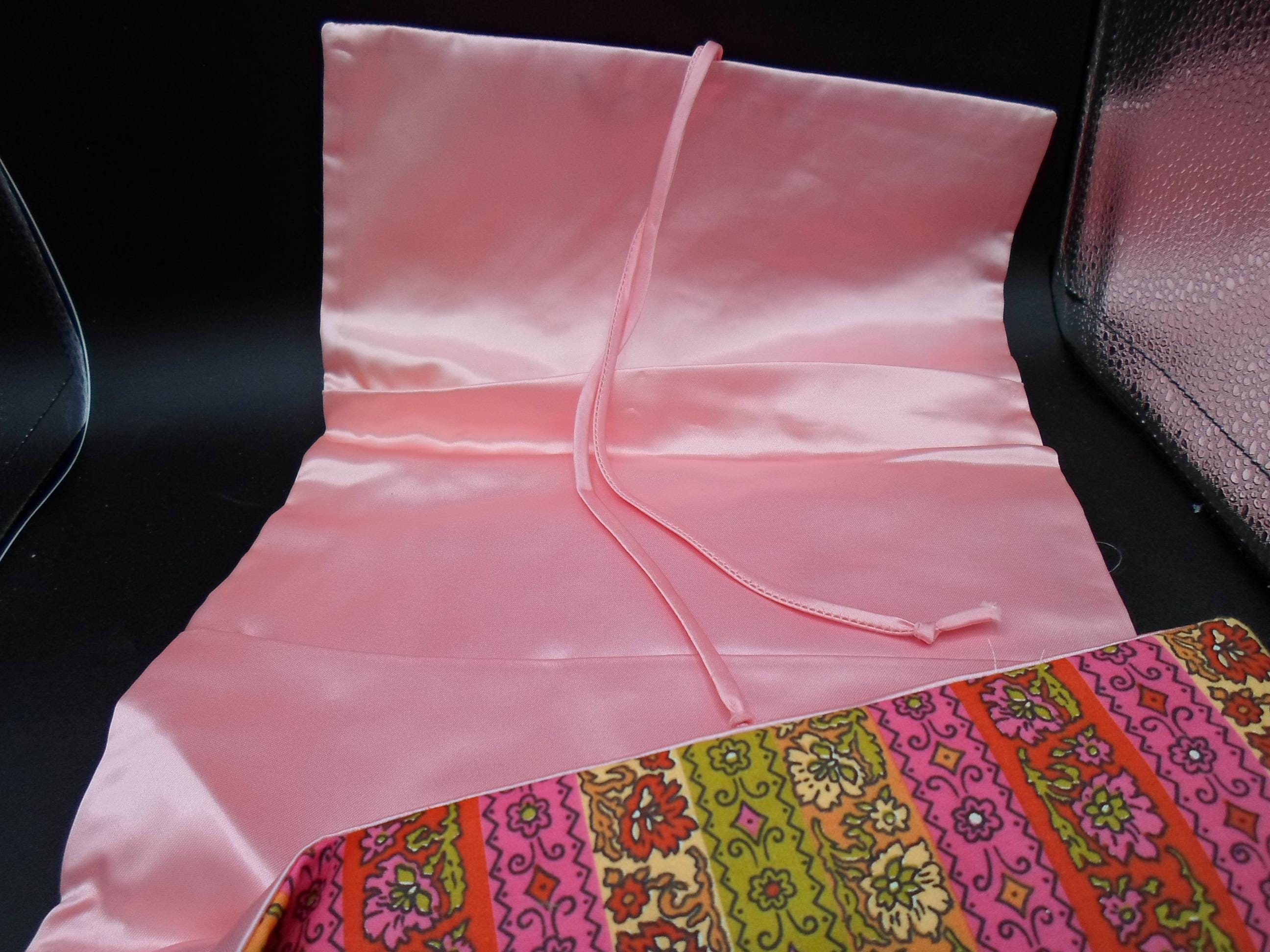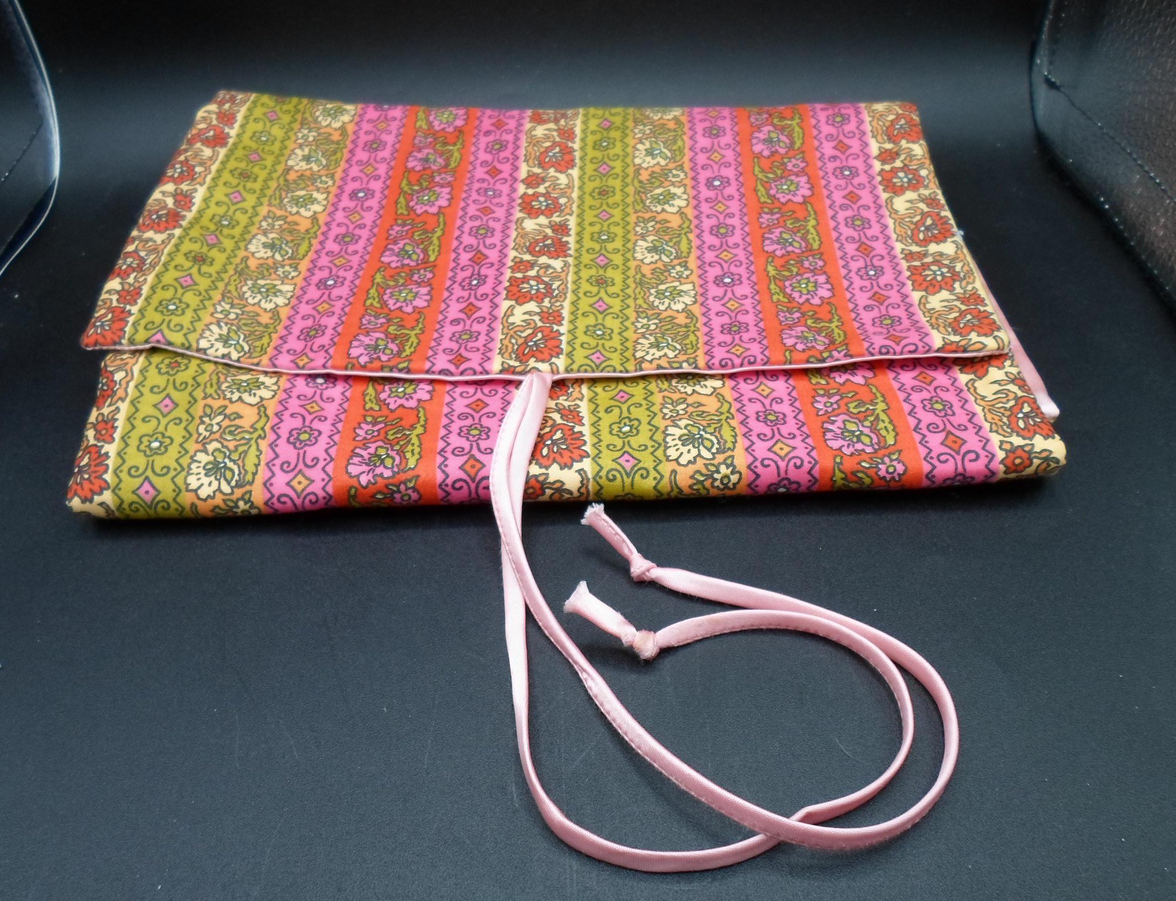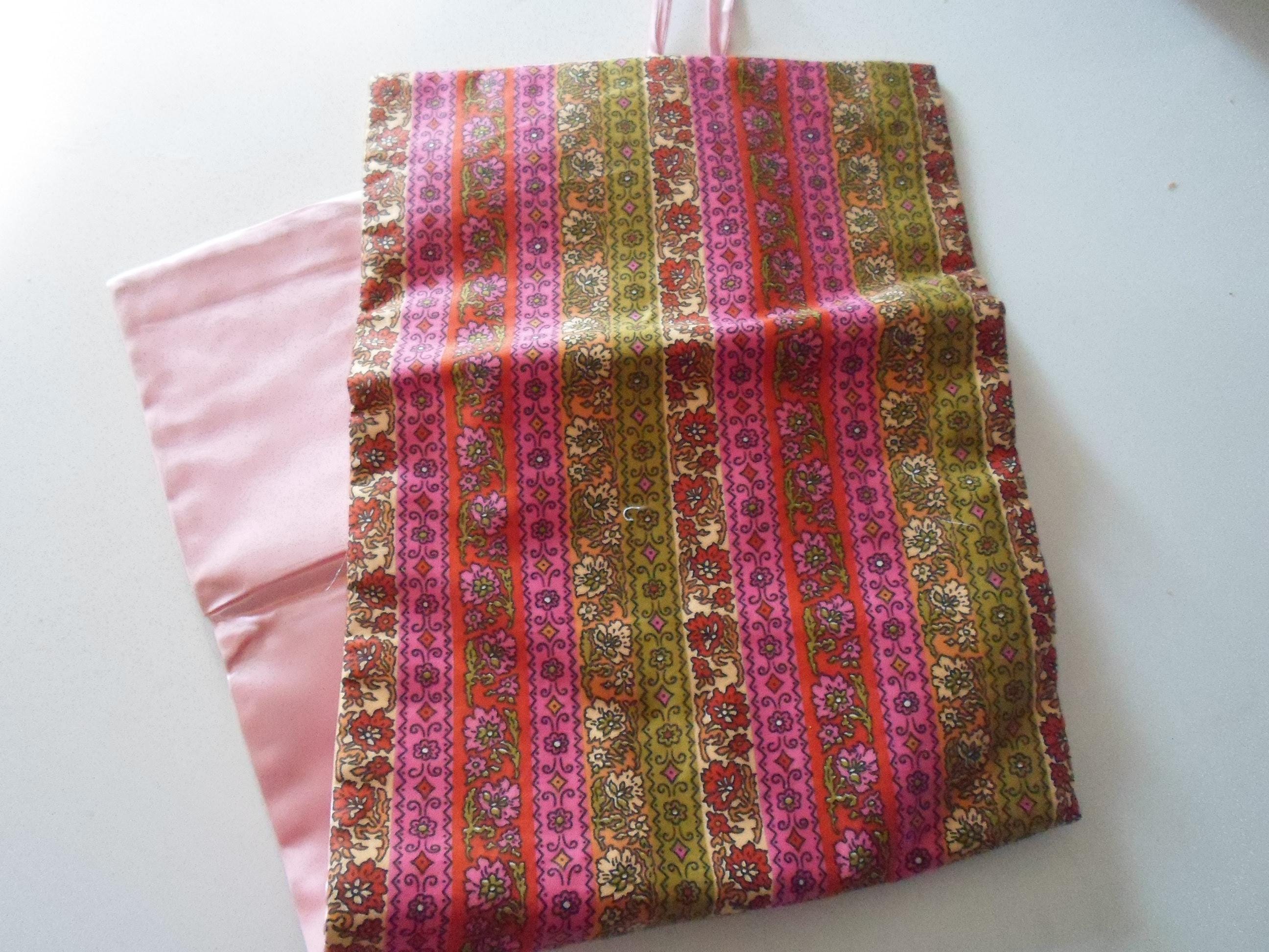 Vintage Lingerie Bag Adorable 1970's 4 Satin Pockets Lovely Print Floral Cover