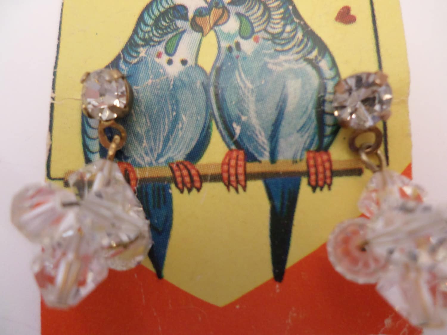 vintage 60's crystal cluster dangle earrings on rhinestone post gold tone metal