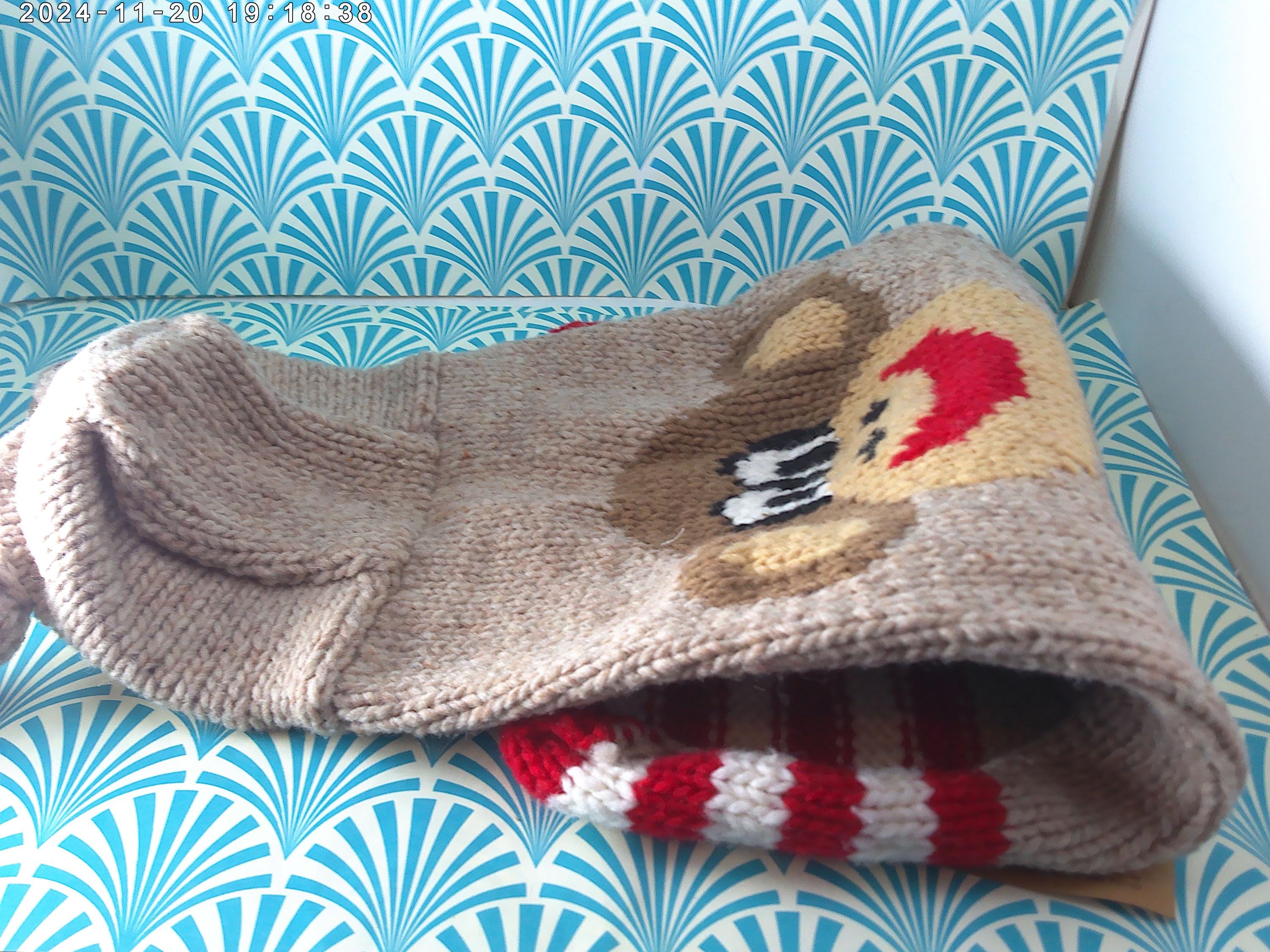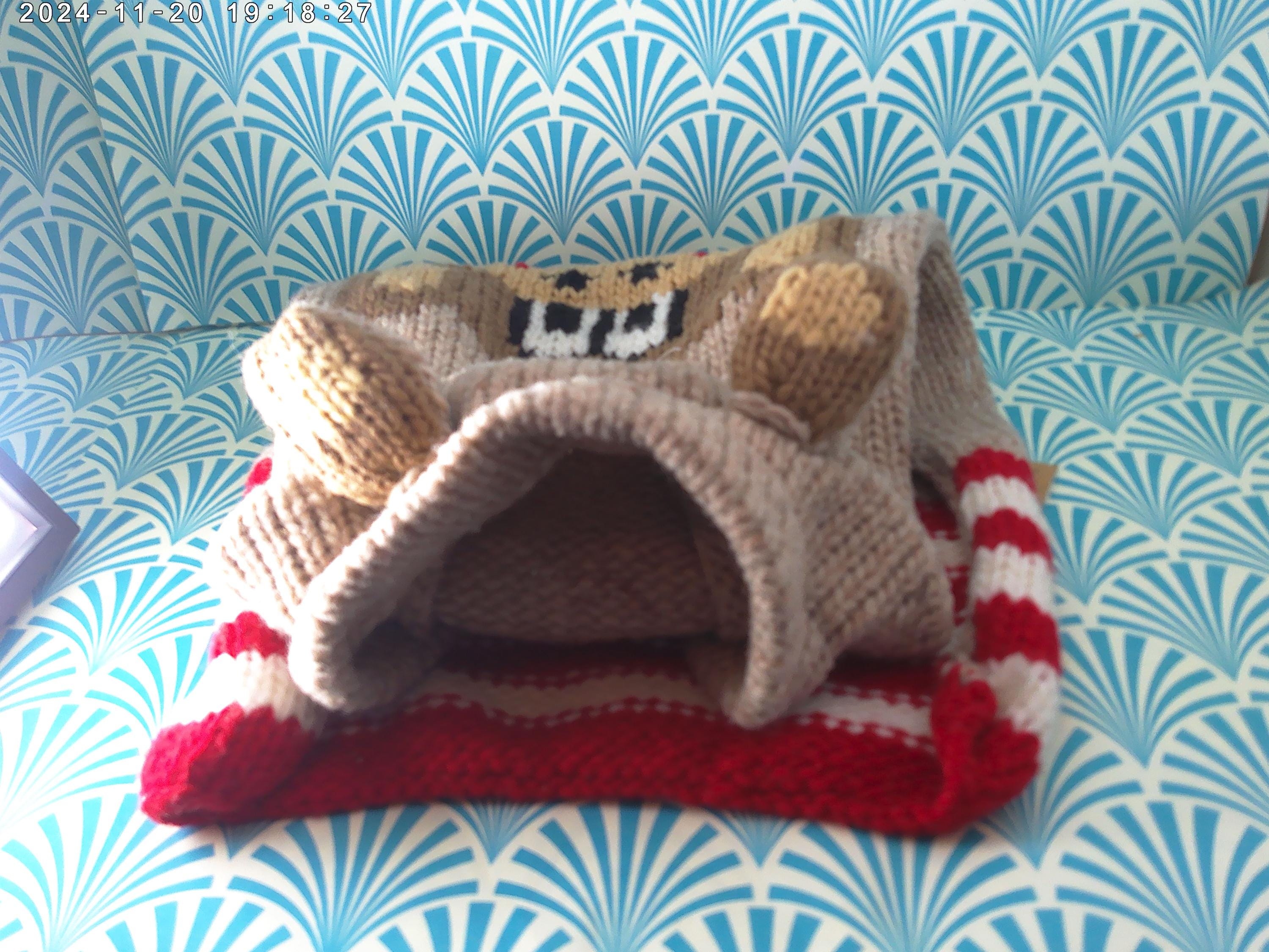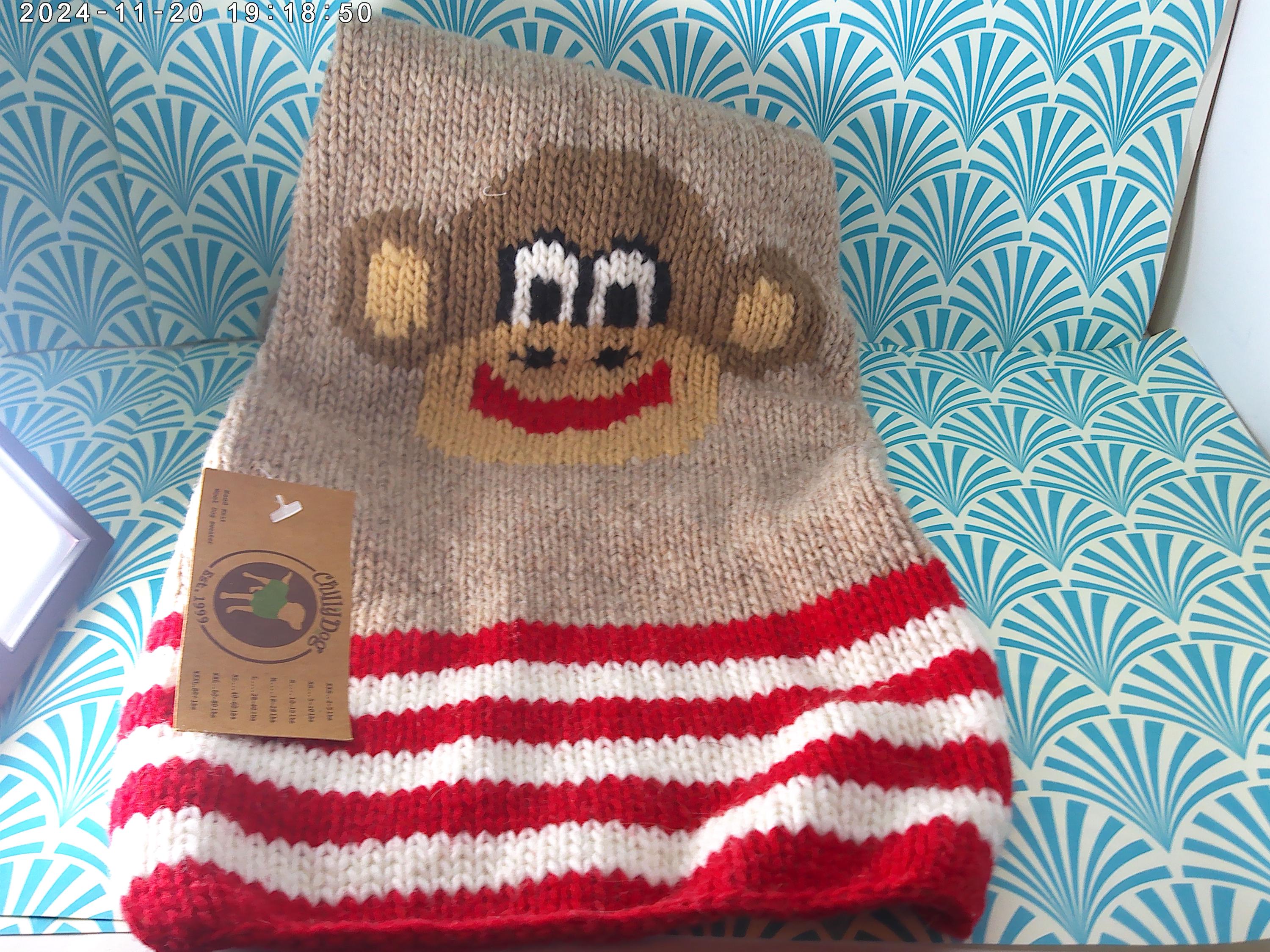 Chilly Dog hand knit wool dog sweater monkey face tan red M 18-28 lbs NWT