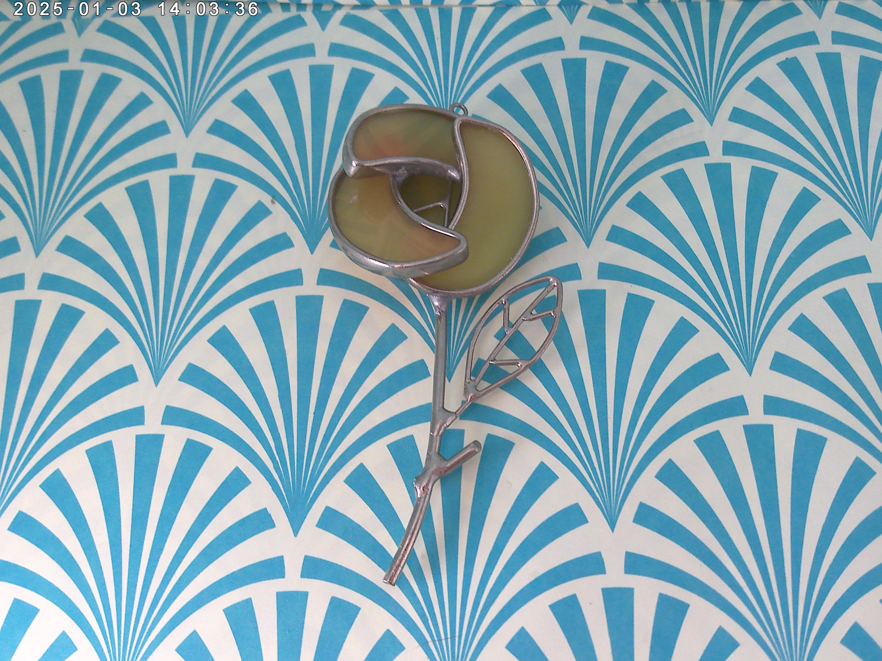 Uranium glass glows 3-D stained glass wall hanging Rose flower