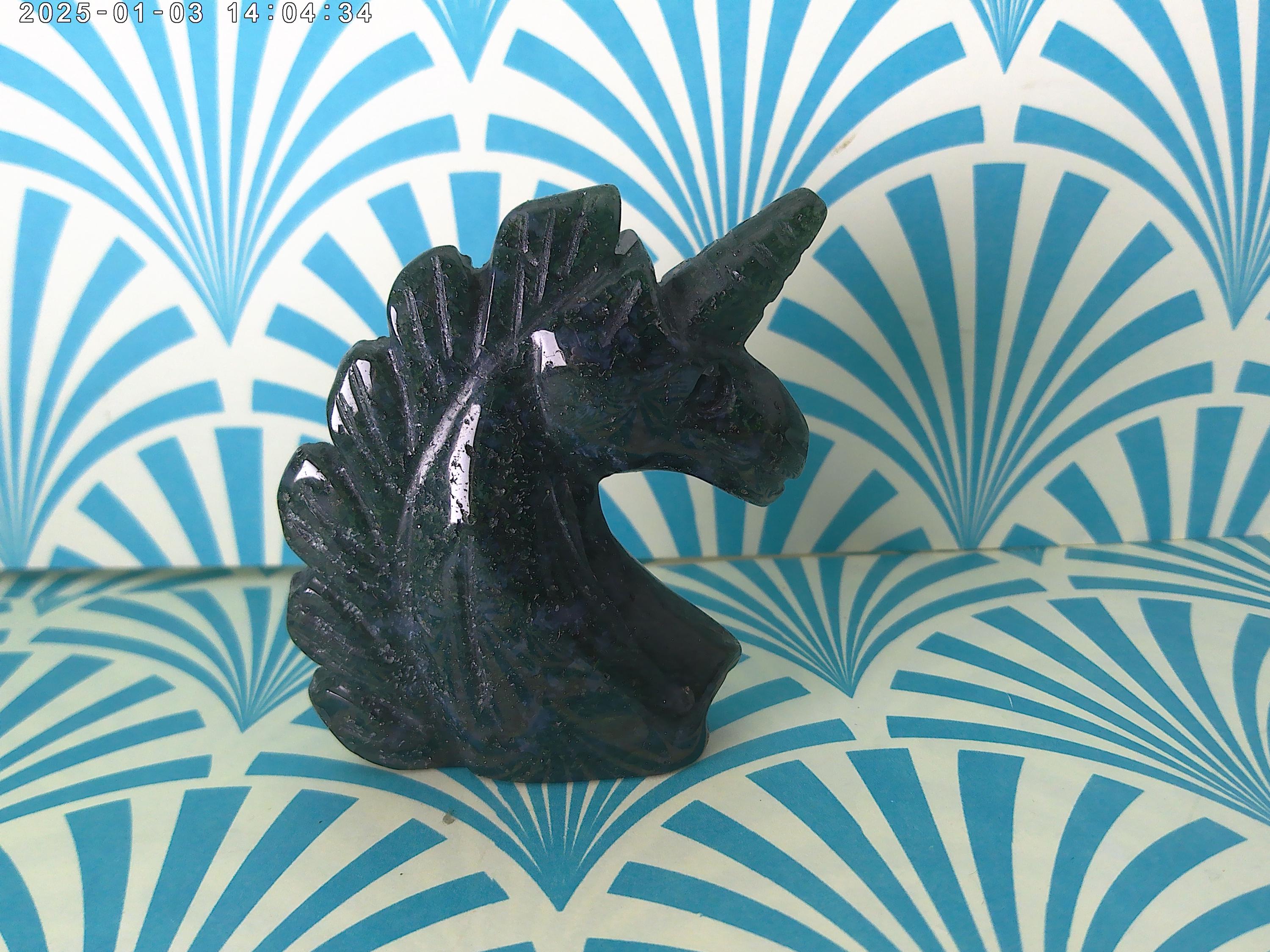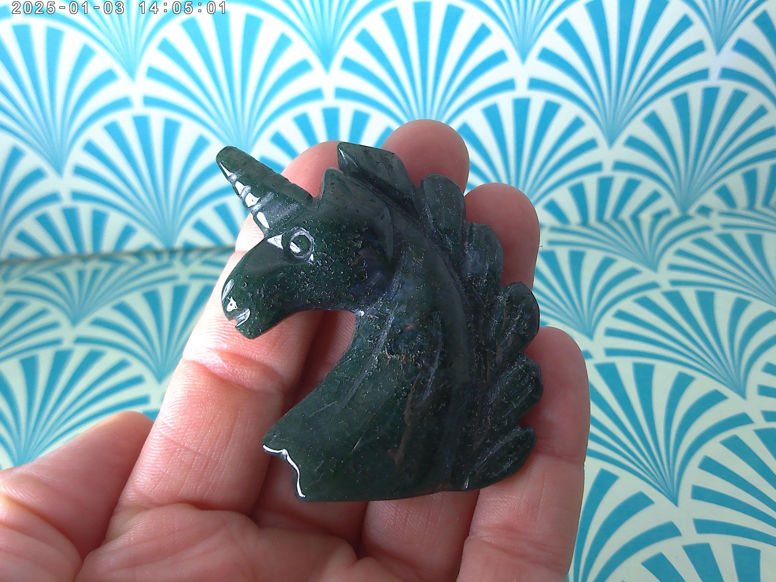 Y2K Unicorn made of Madagascar Jasper Unicorn Head/bust figure for Calm Protection Green stone