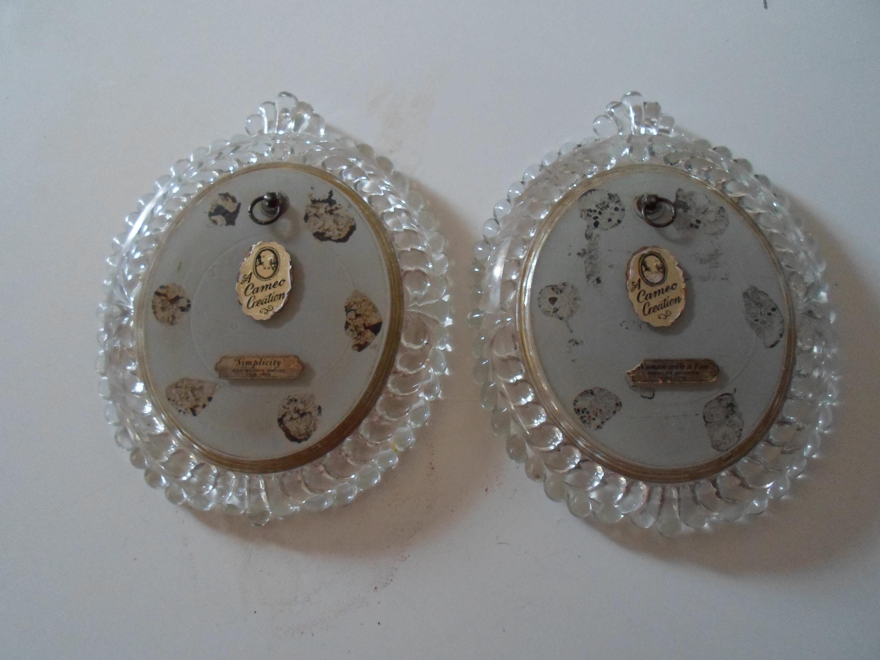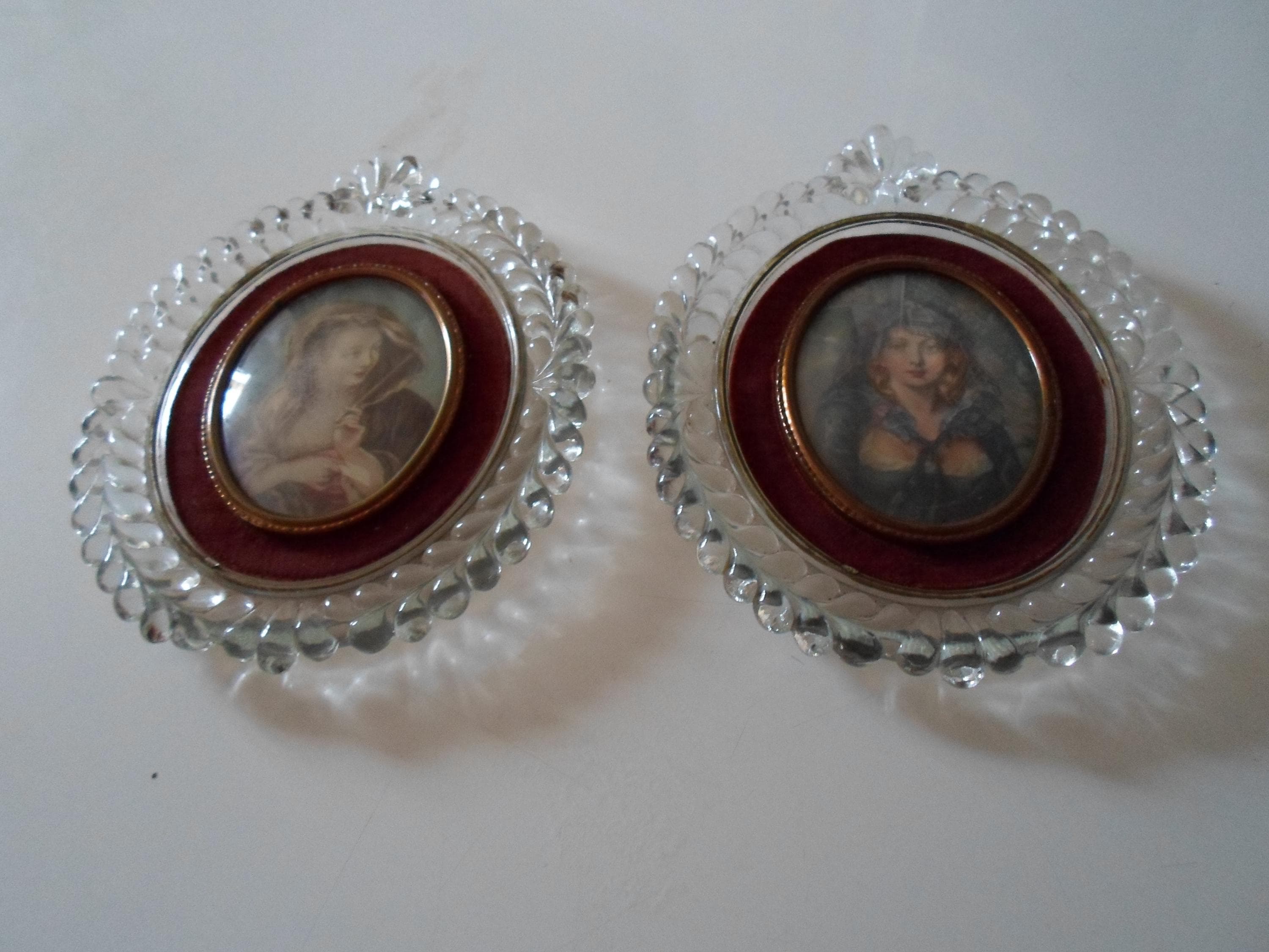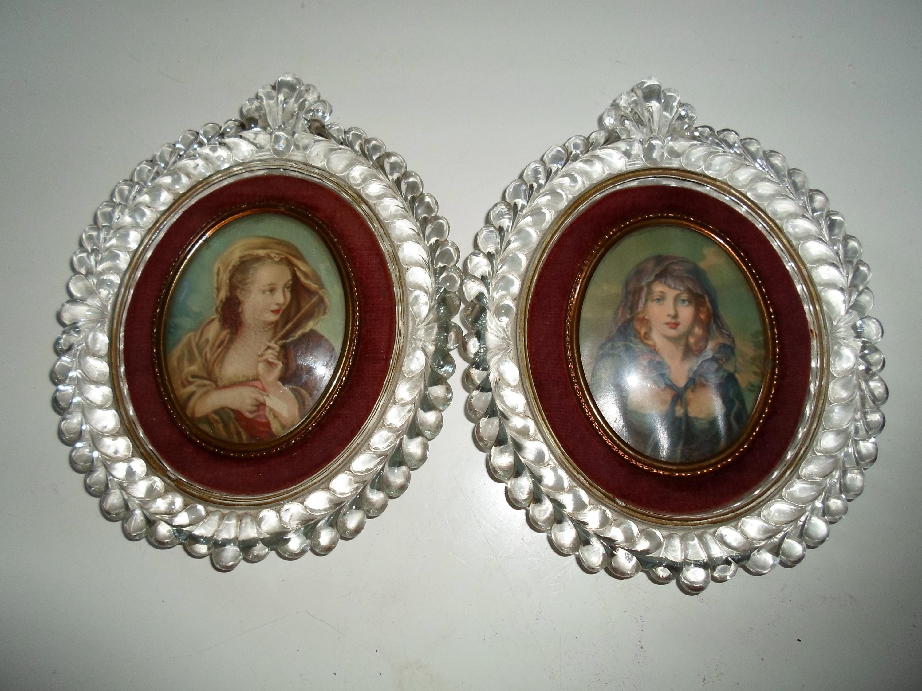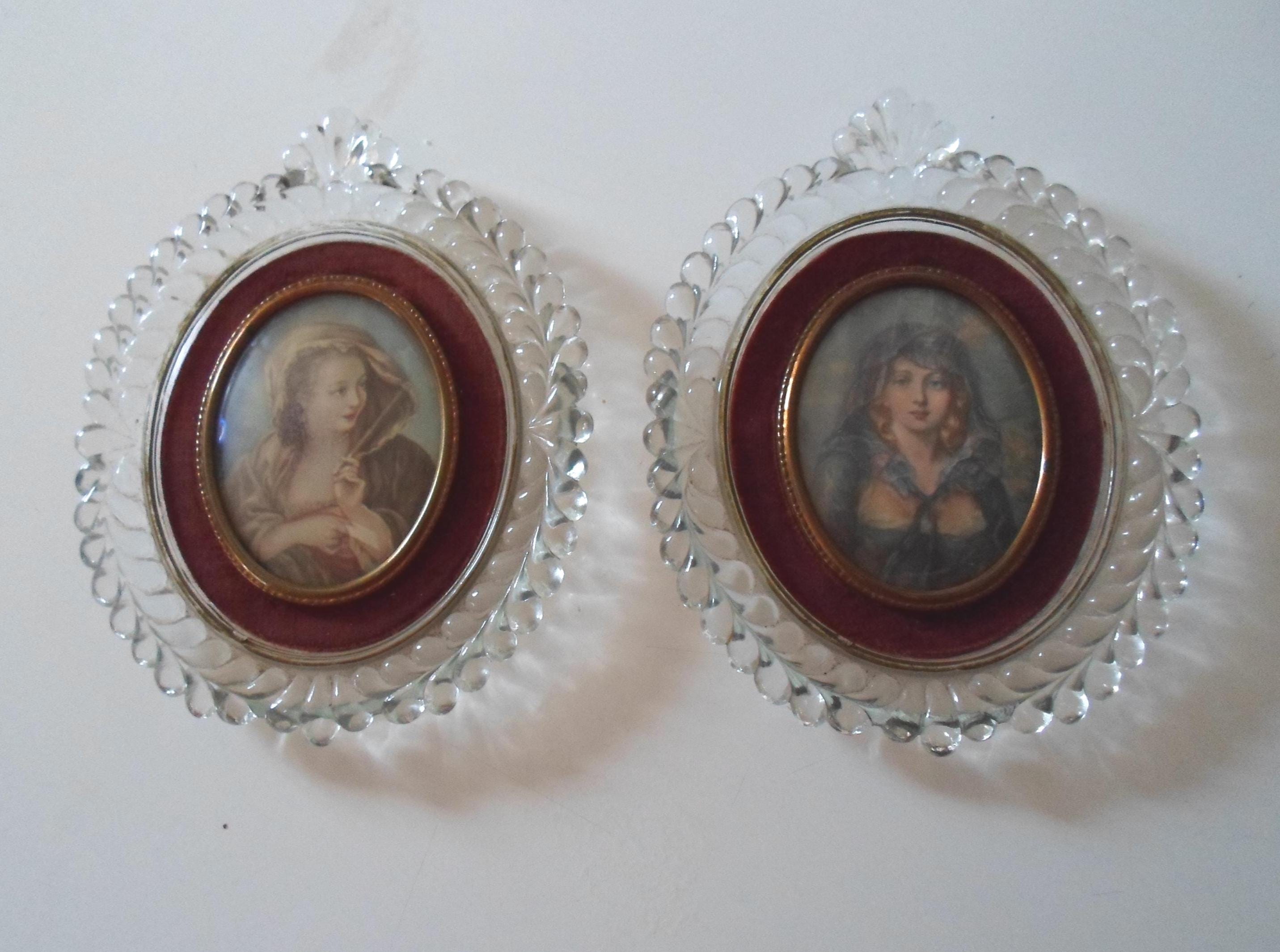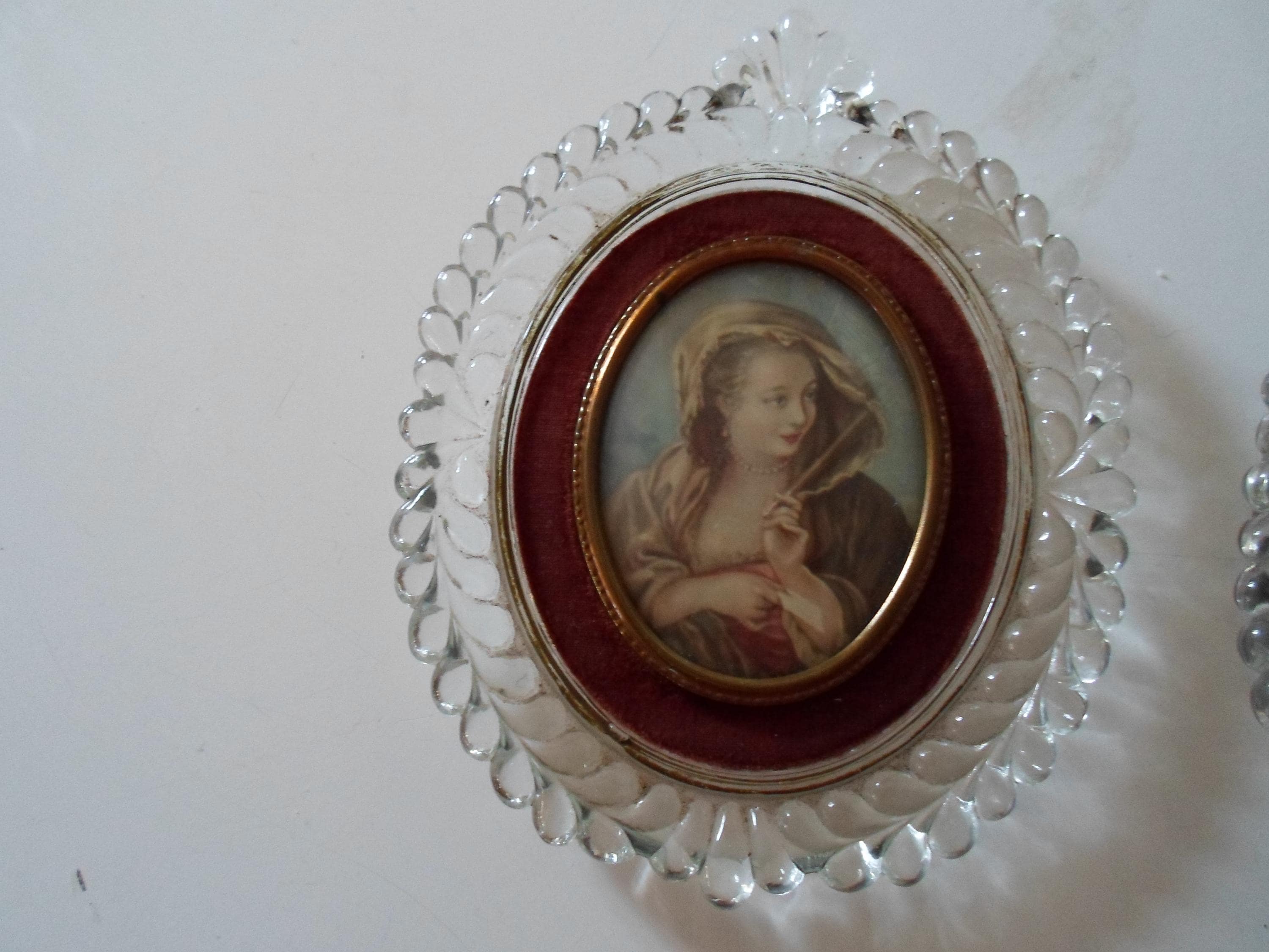 7"x 5" Sculptured Glass Framed French Victorian Women. Interesting and alluring these came out of a Lake Shore Drive Estate in Chicago. Stunning frames are thick and beautiful. Note photos as part of the description. No chips. Original Labels.