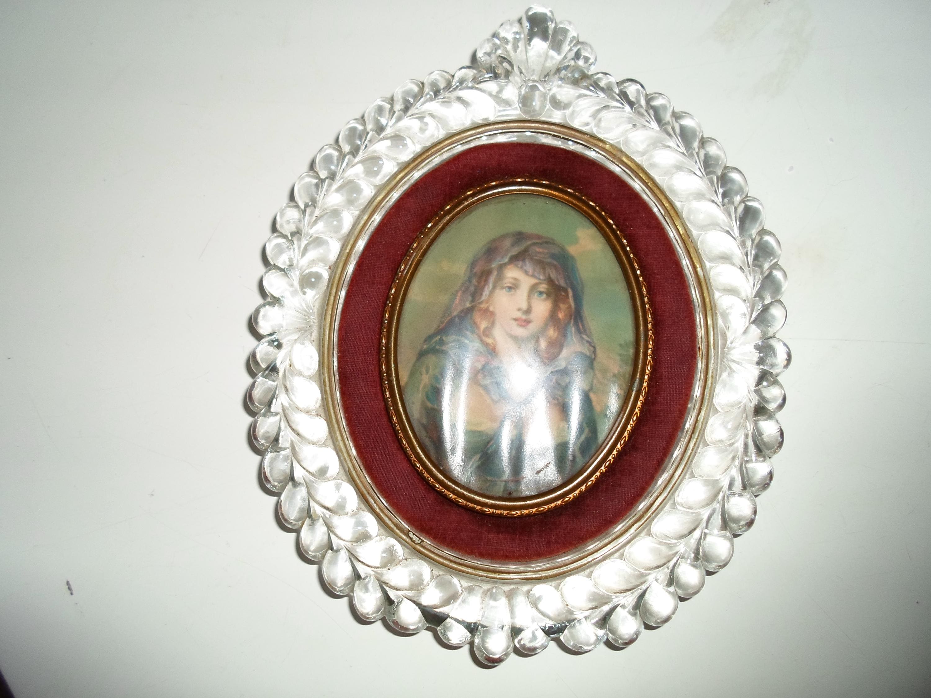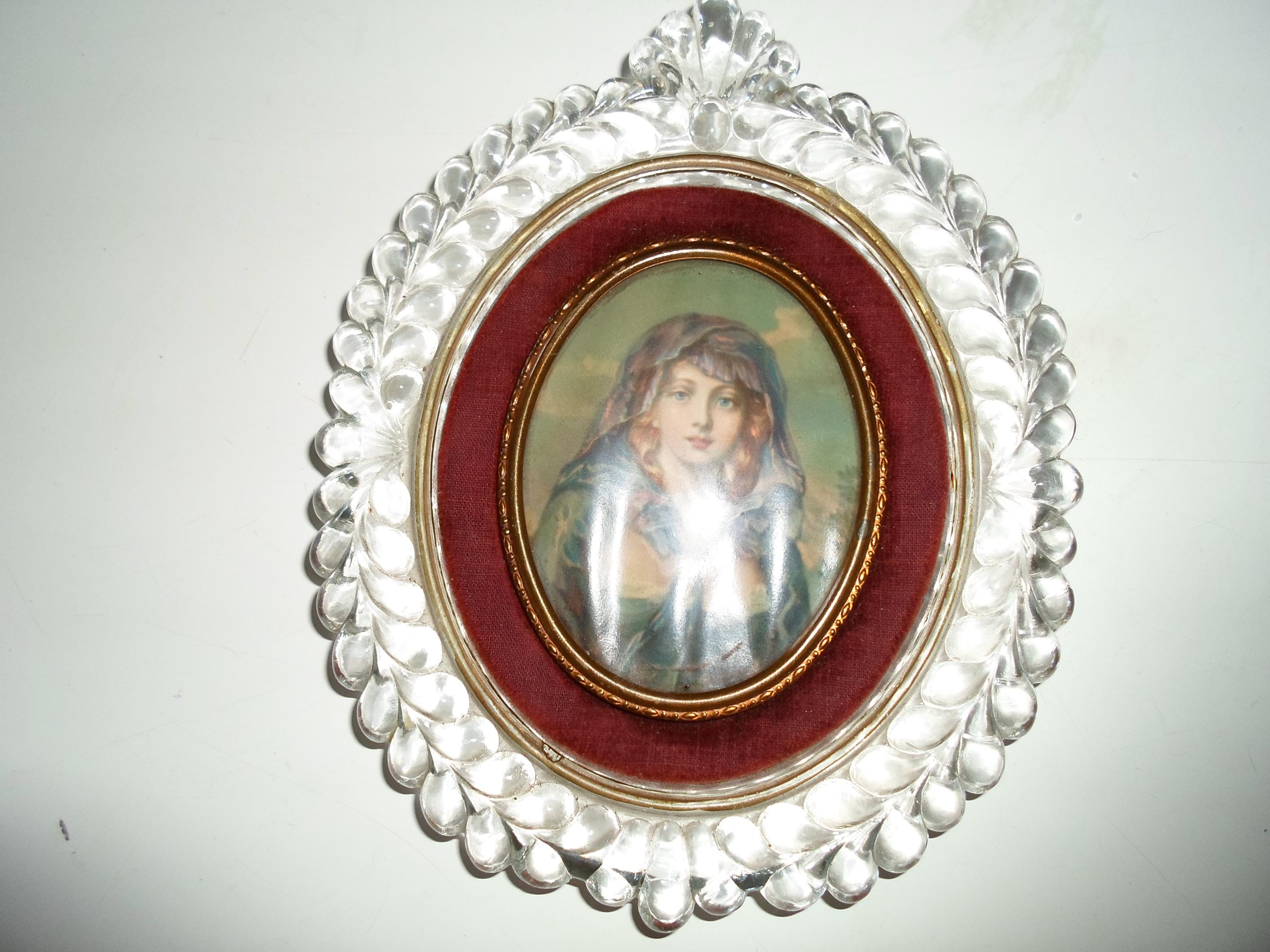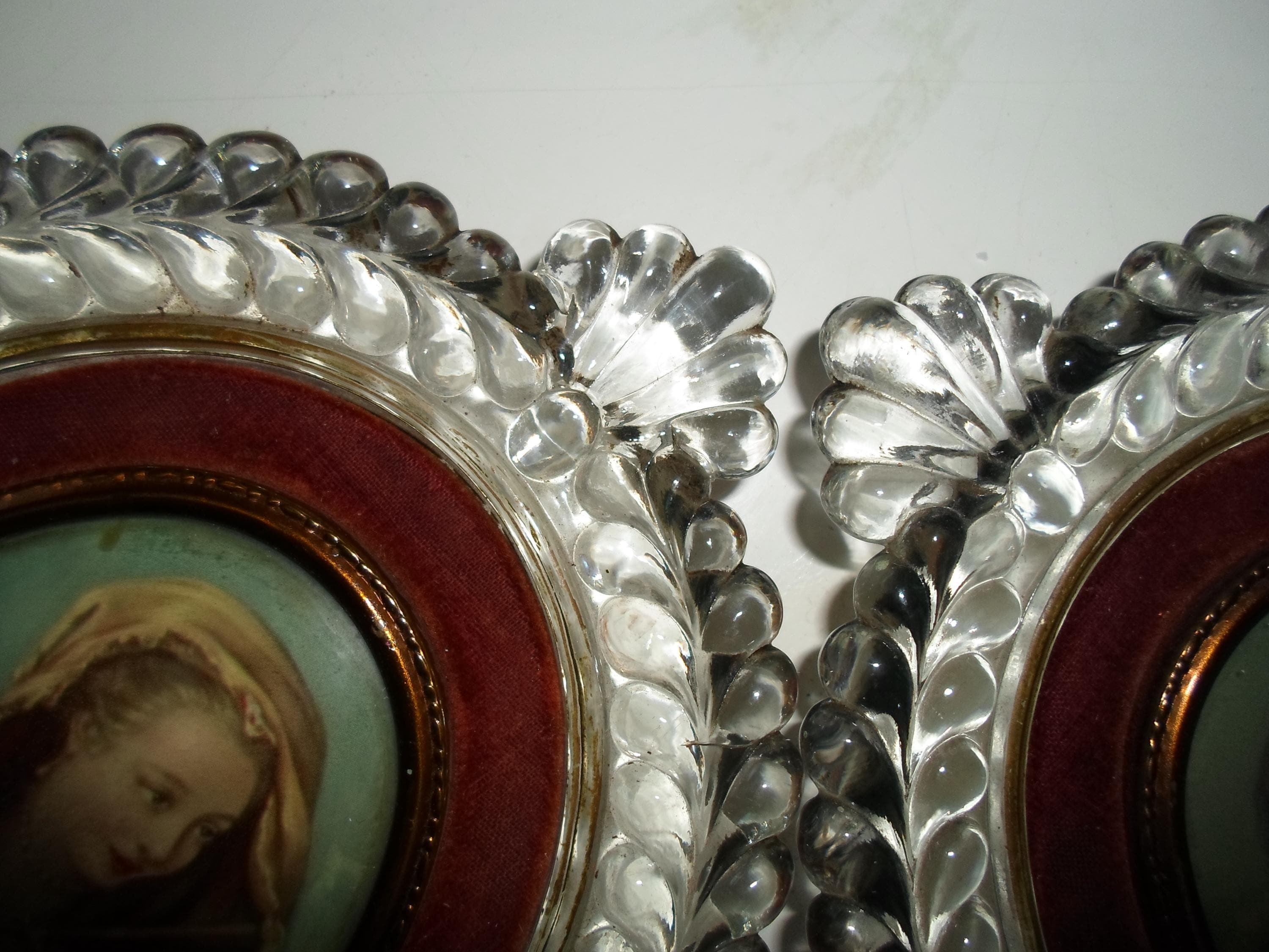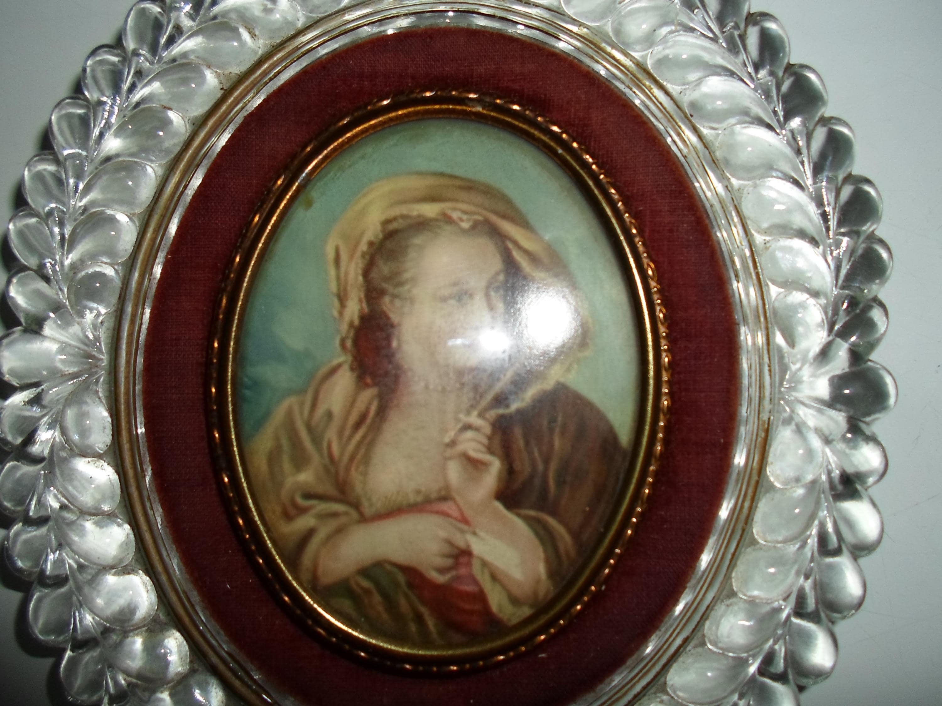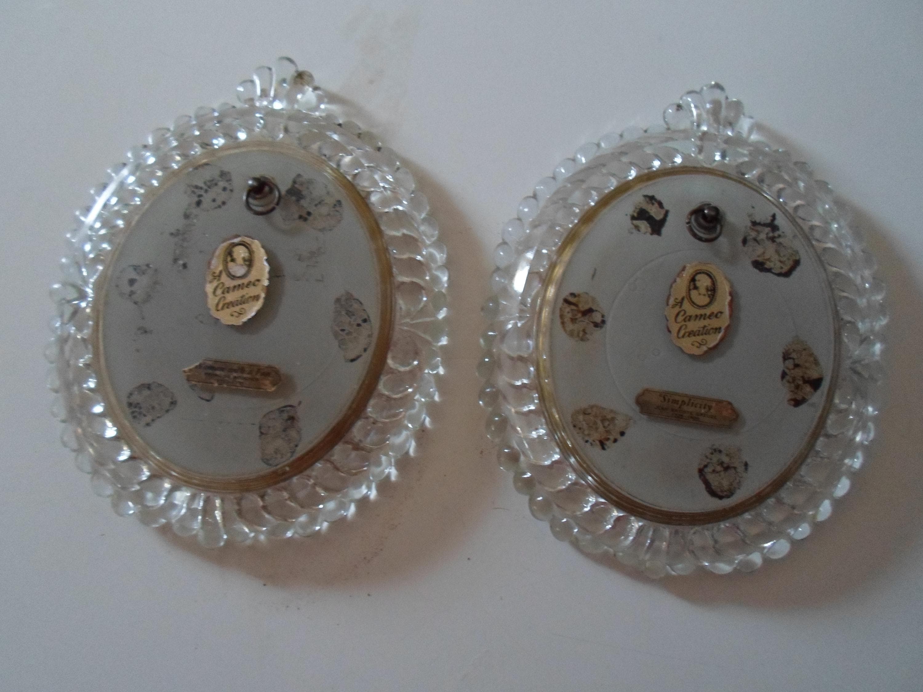 7"x 5" Sculptured Glass Framed French Victorian Women. Interesting and alluring these came out of a Lake Shore Drive Estate in Chicago. Stunning frames are thick and beautiful. Note photos as part of the description. No chips. Original Labels.