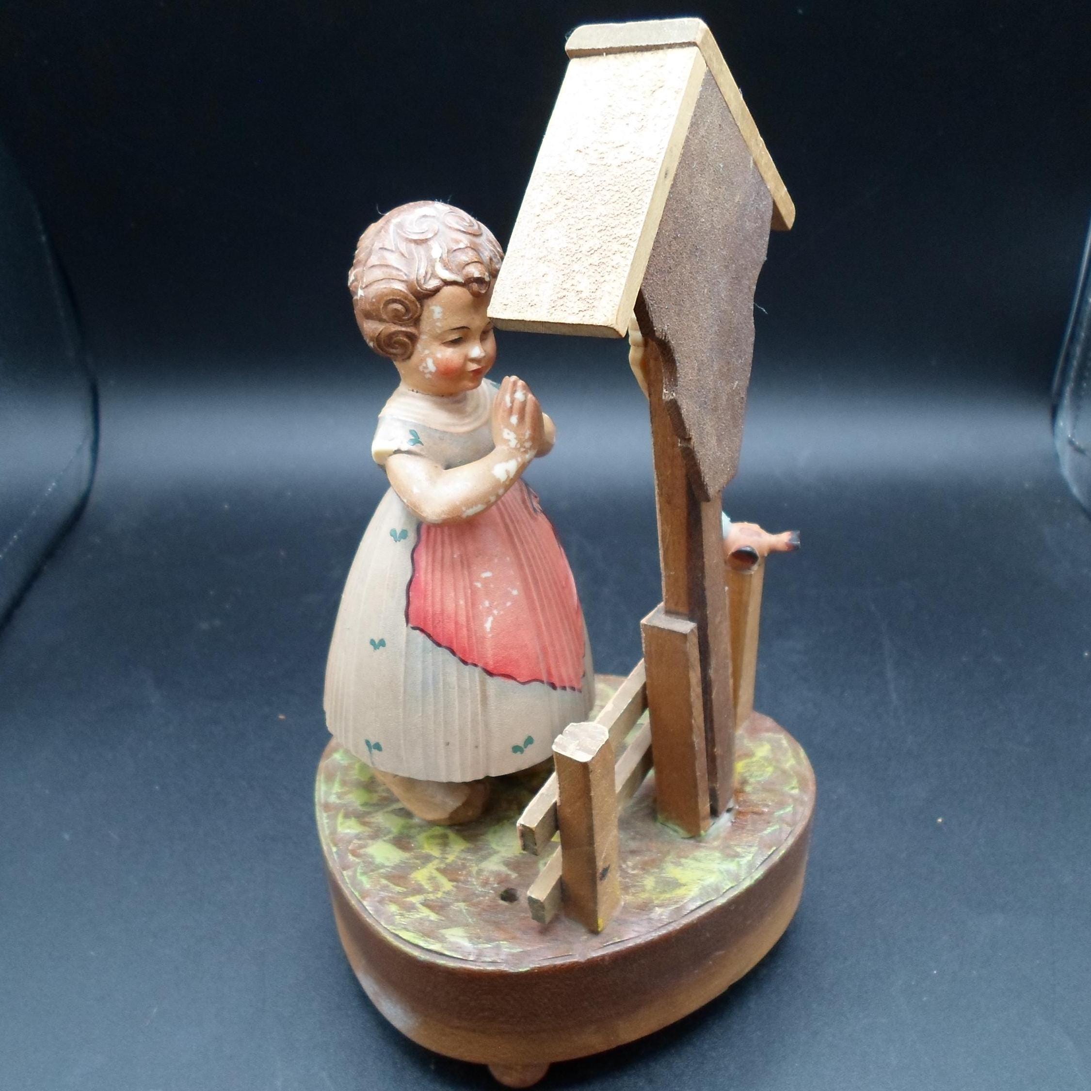 Girl Praying Wayside Stand Music Box is Missing Vintage adorable Italian