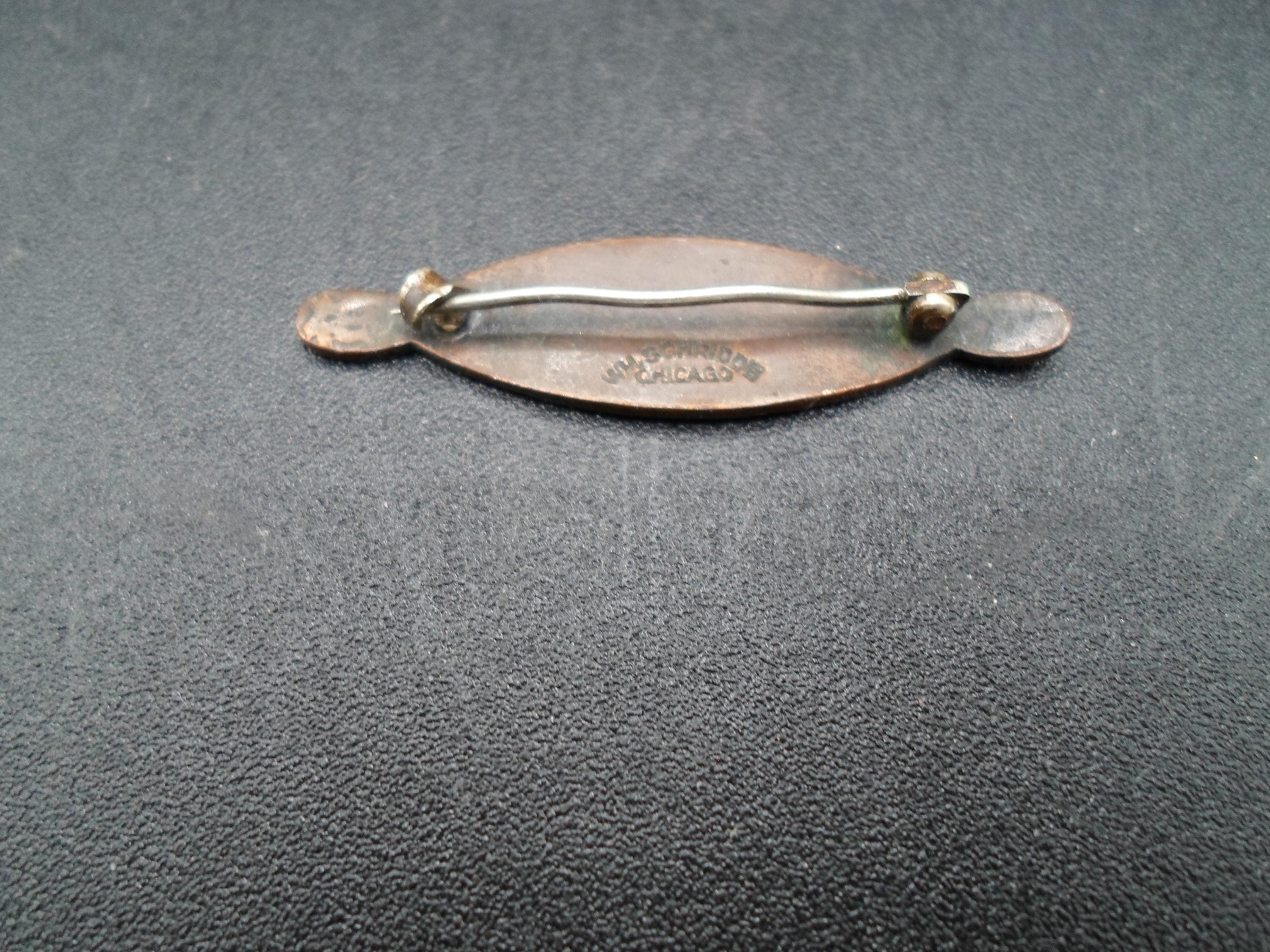 1.50"wide.50"high Chicago South Parks Pin Test Award. Probably around Lake View Area Lake Michigan Chicago. Back reads WM SCHRIDDE Chicago. Antique 1930 or maybe earlier is a collectable from the Chicago Parks and very hard to find.