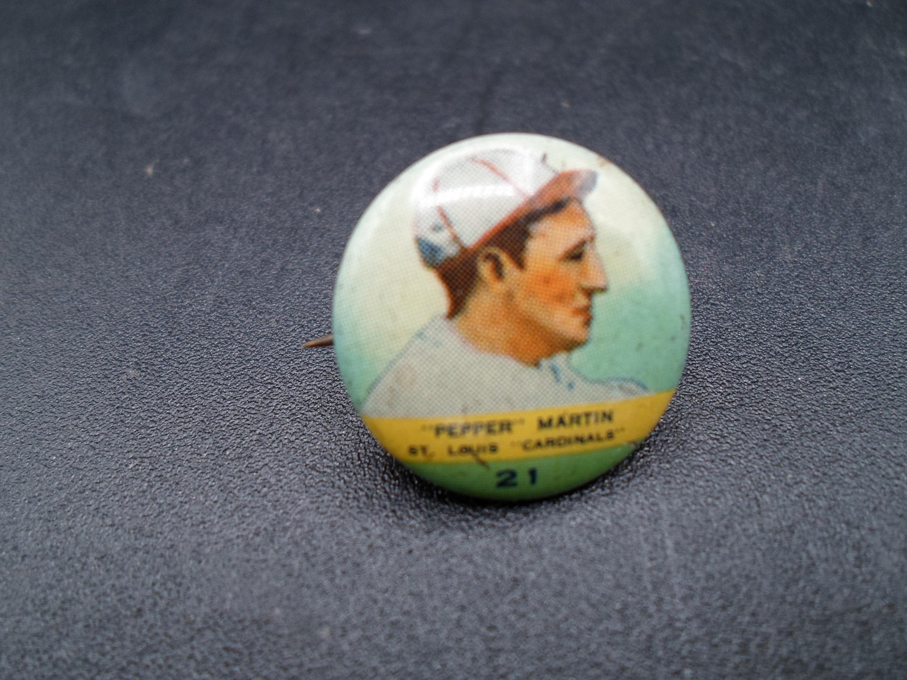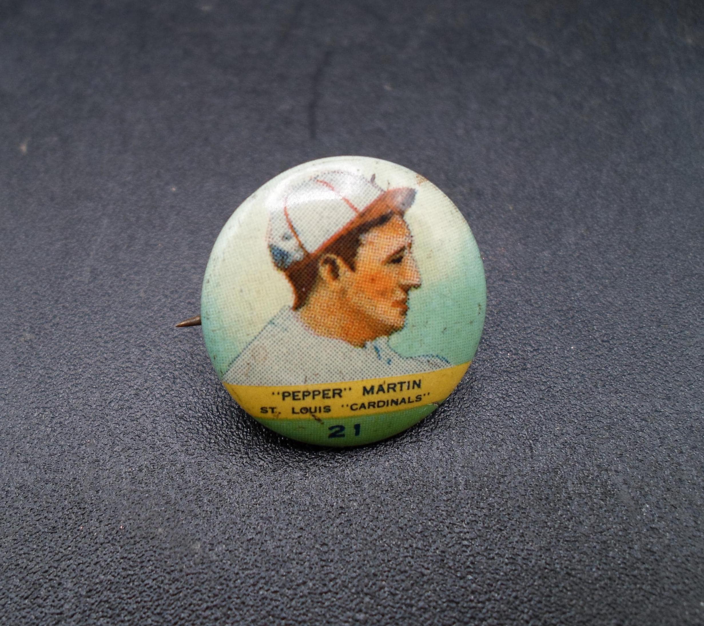 1932 Orbit Gum #21 Pepper Martin St. Louis Cardinals pinback button in good Vintage condition. Give away with Gum. Note photos as part of the description.