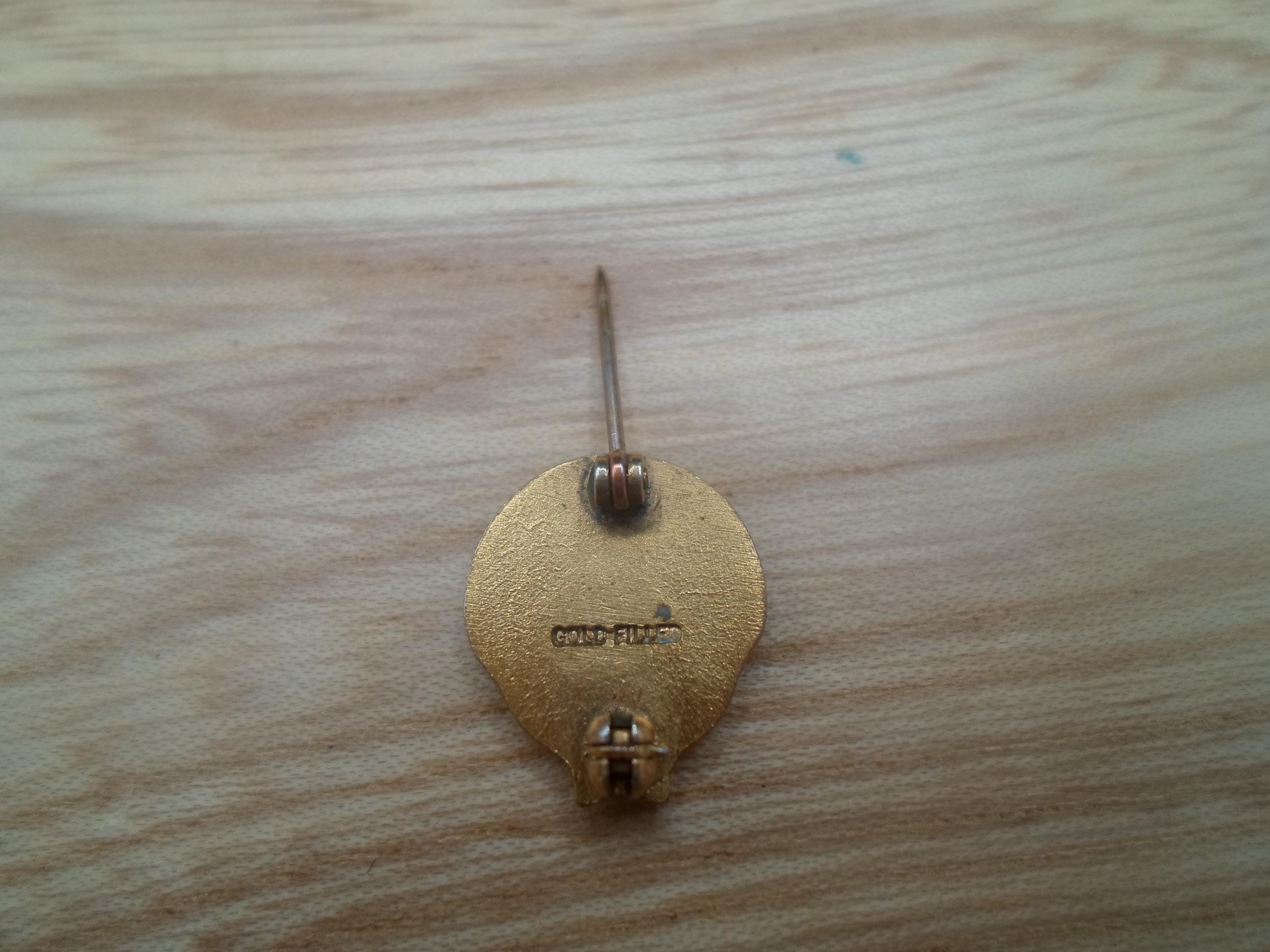 Vintage Negro Business Professional Gold-Filled Pin probably from the 1930's 40's 50's. About 1/2" round in Very Good Vintage condition. Marked on the back Gold Filled.