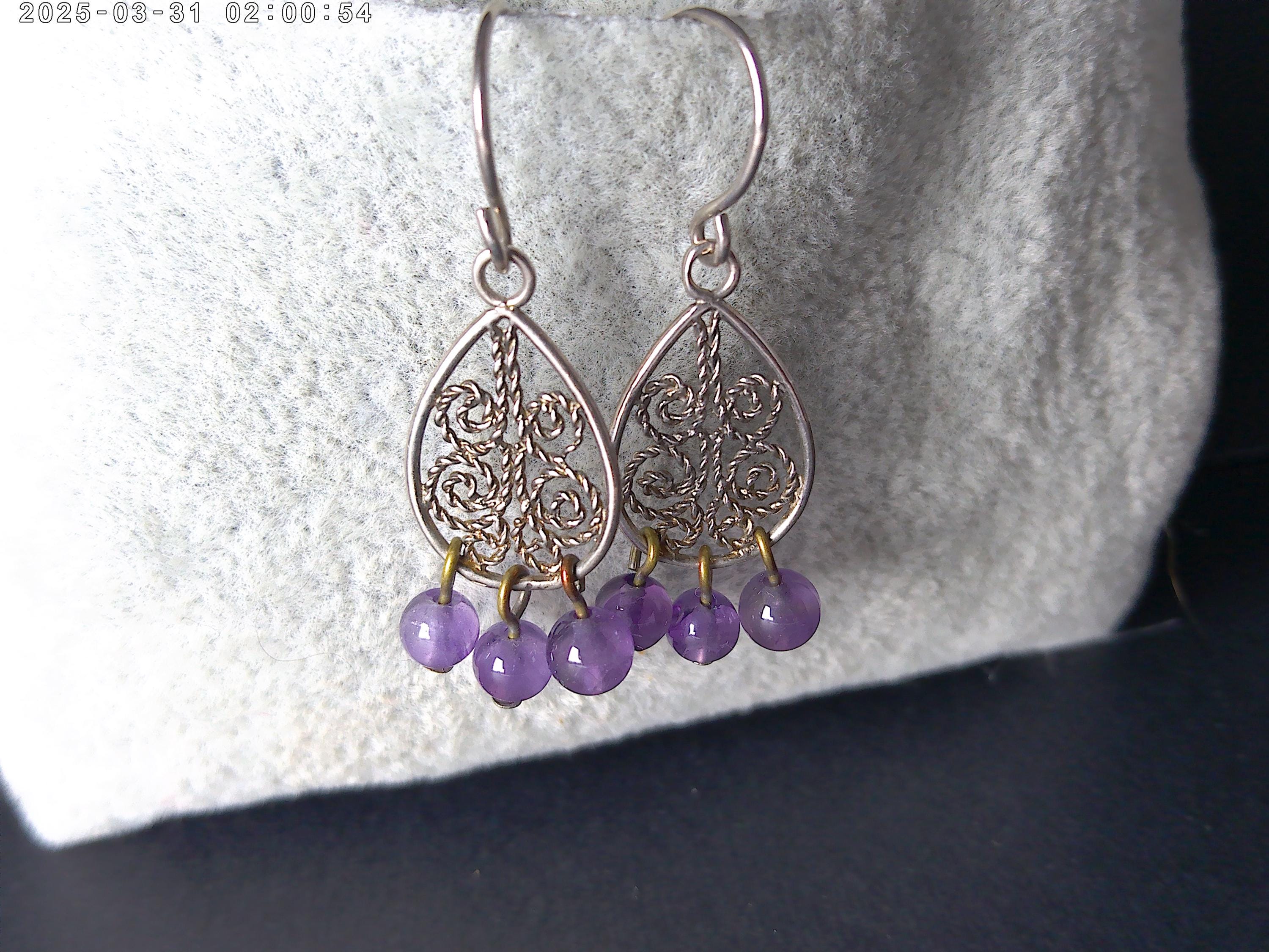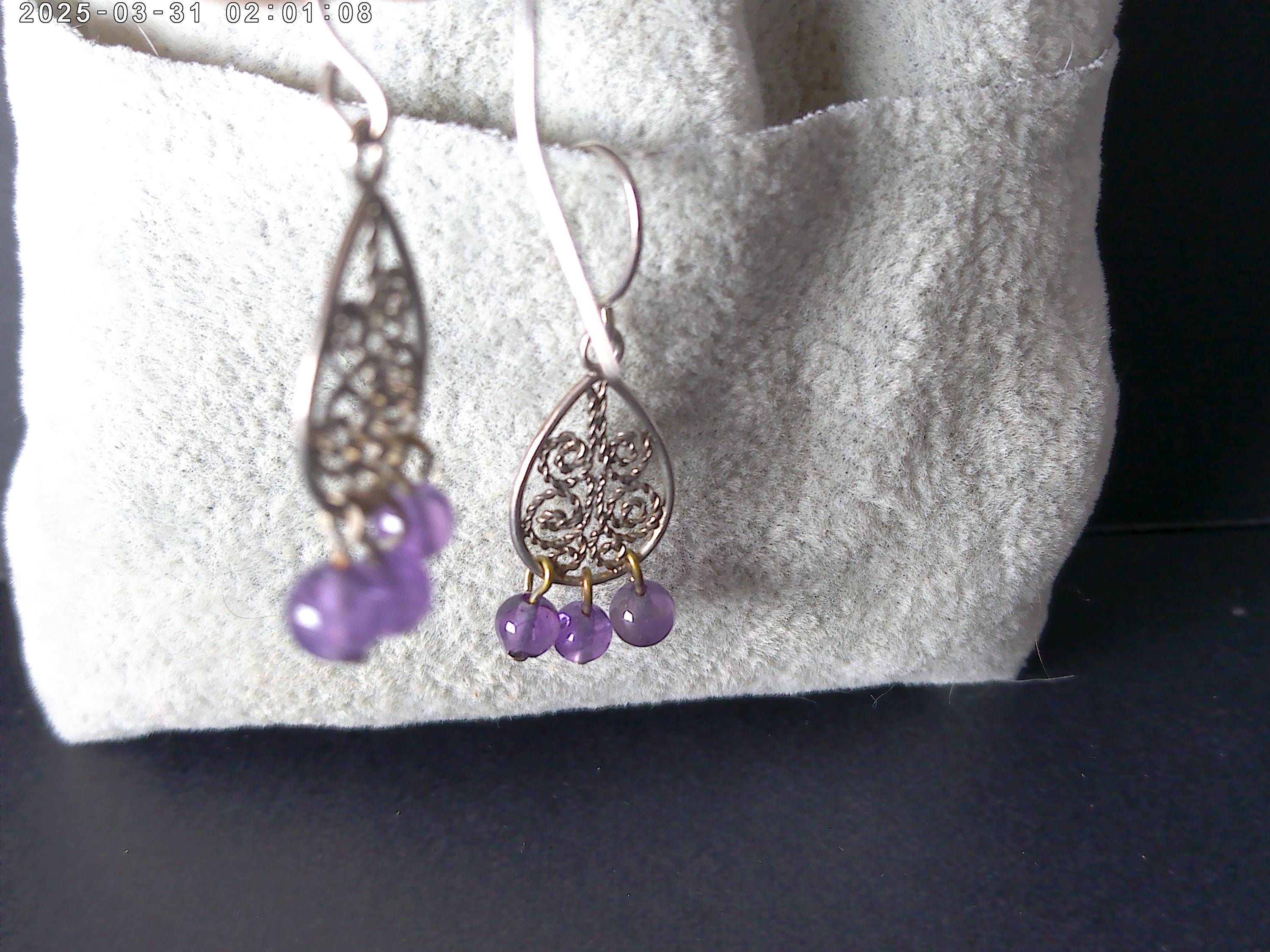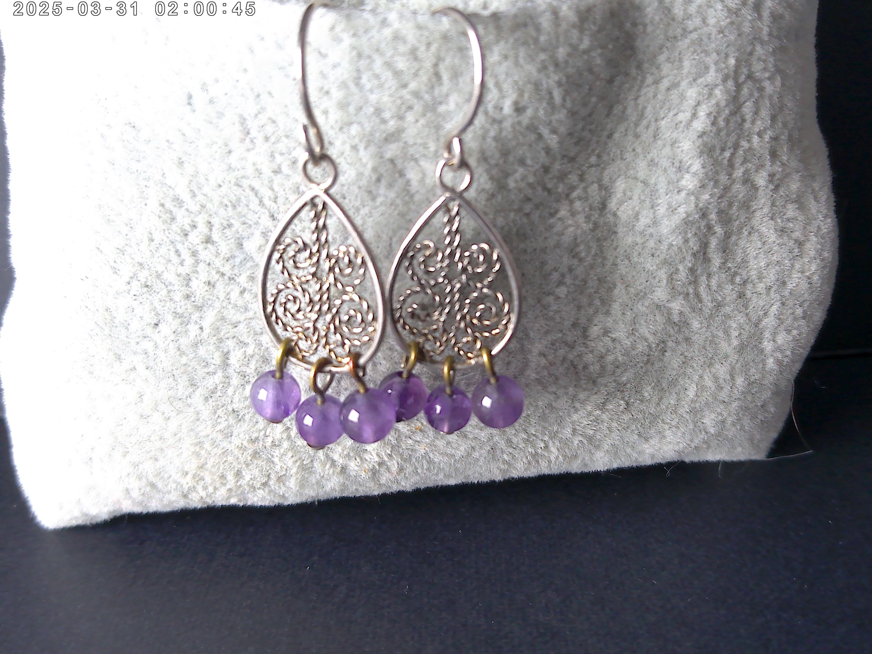 Lovely vintage 90's boho (bohemian chic) sterling silver and Amethyst earrings, dangle 1".