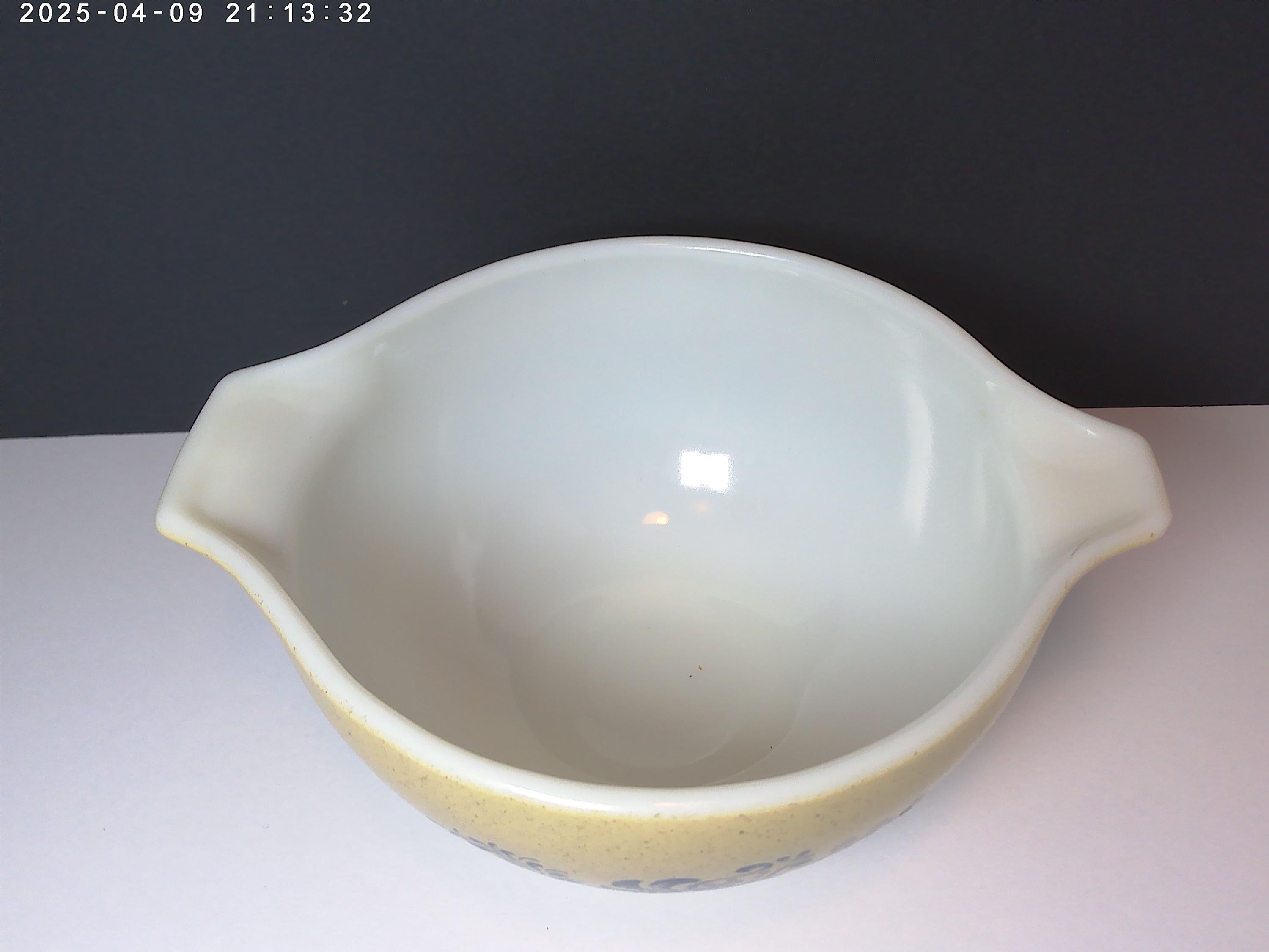 Small 1.5qt pouring handle mixing bowl PYREX Homestead 1976-1980 design