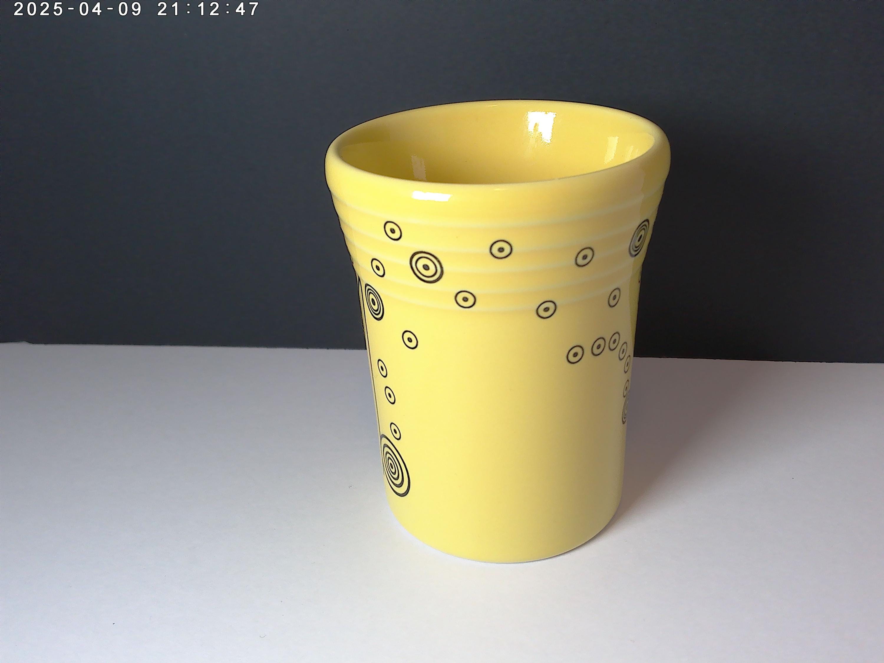 Vintage 90's Lead Free Fiesta no handle mug, cup pale yellow with black art deco design