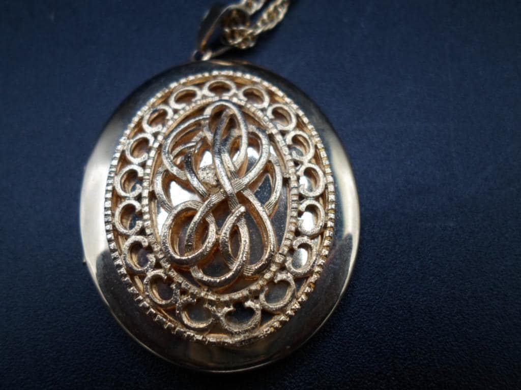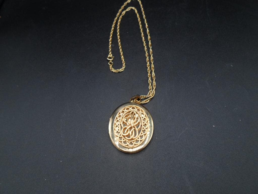 Vintage Photo Locket Ornate Filigree Open Work Pattern 24" Chain Gold tone Lovely