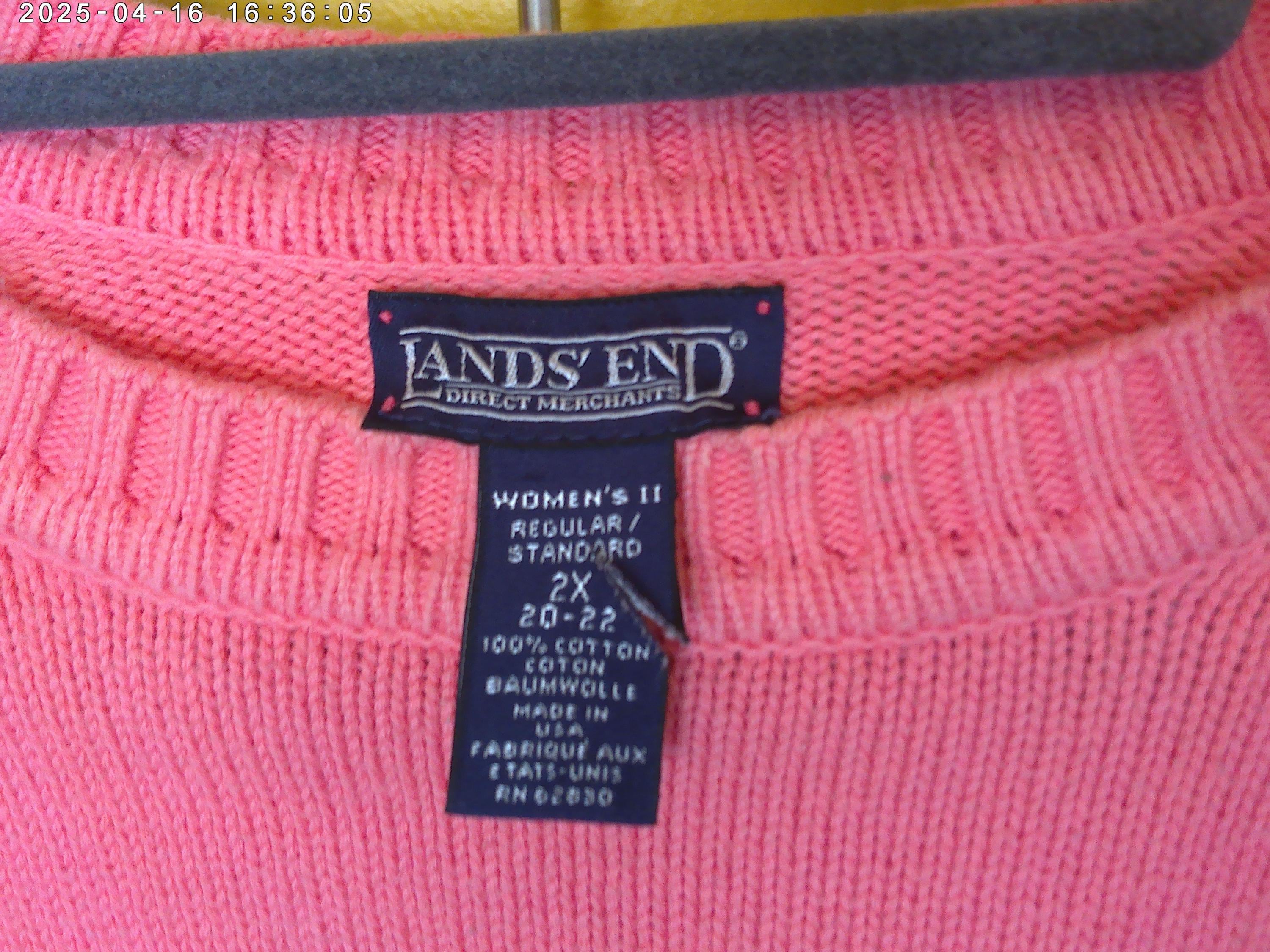 Vintage 90's Lands' End Peach Monogramed sweater 2X Made in the USA unisex