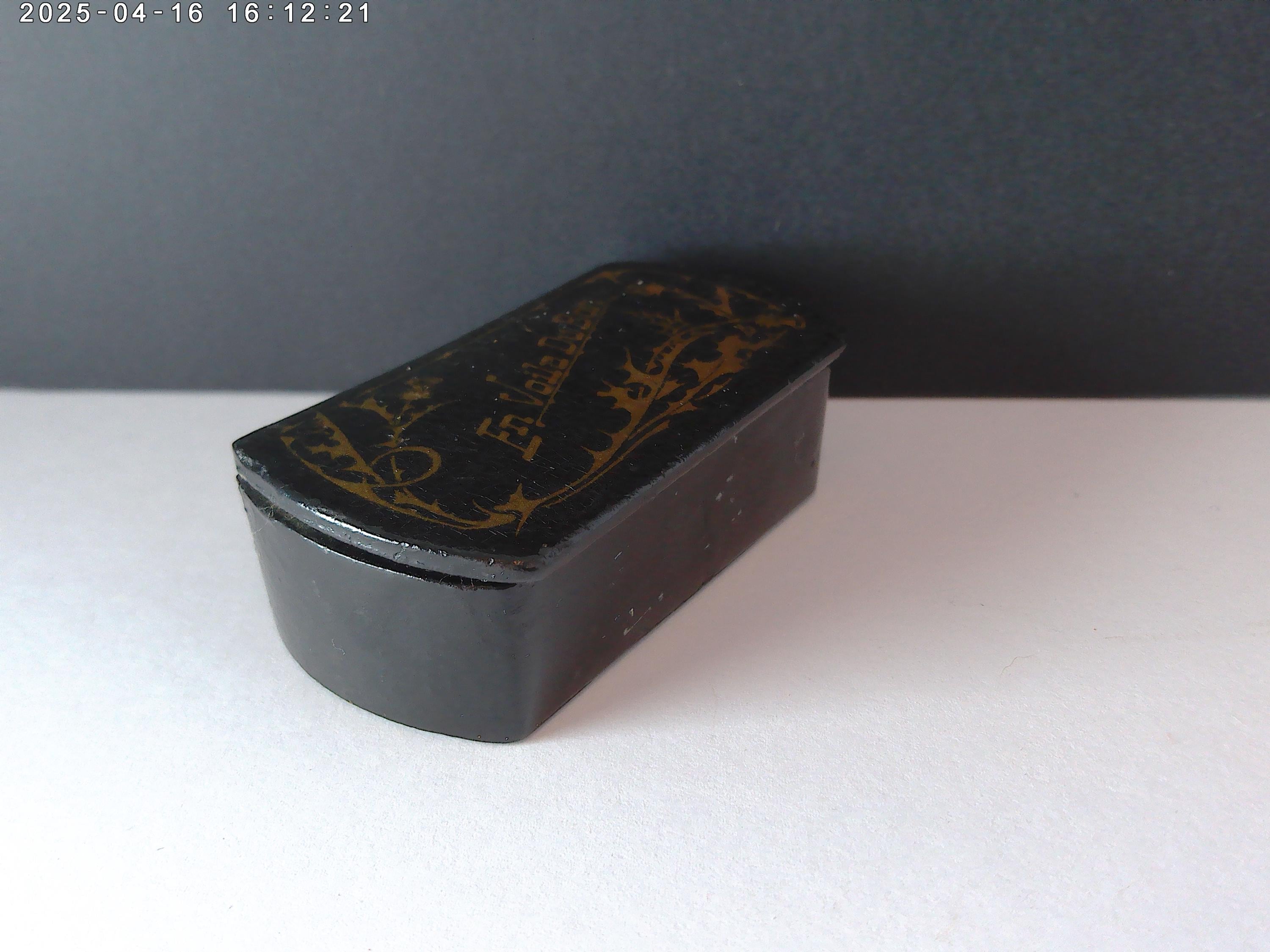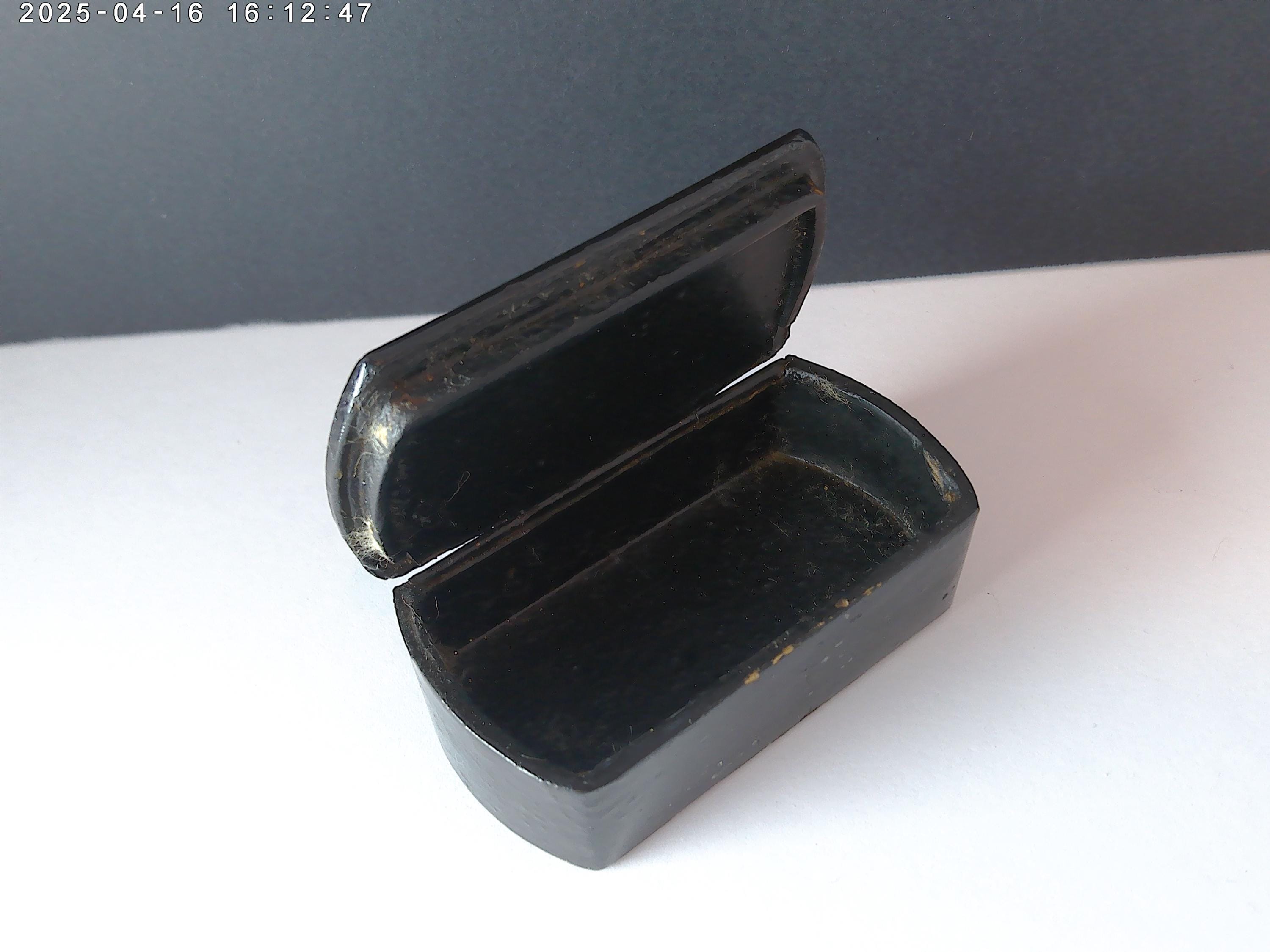 1890's-1900's little ring box black leather gold leafed En Voila Du Bon The good stuff