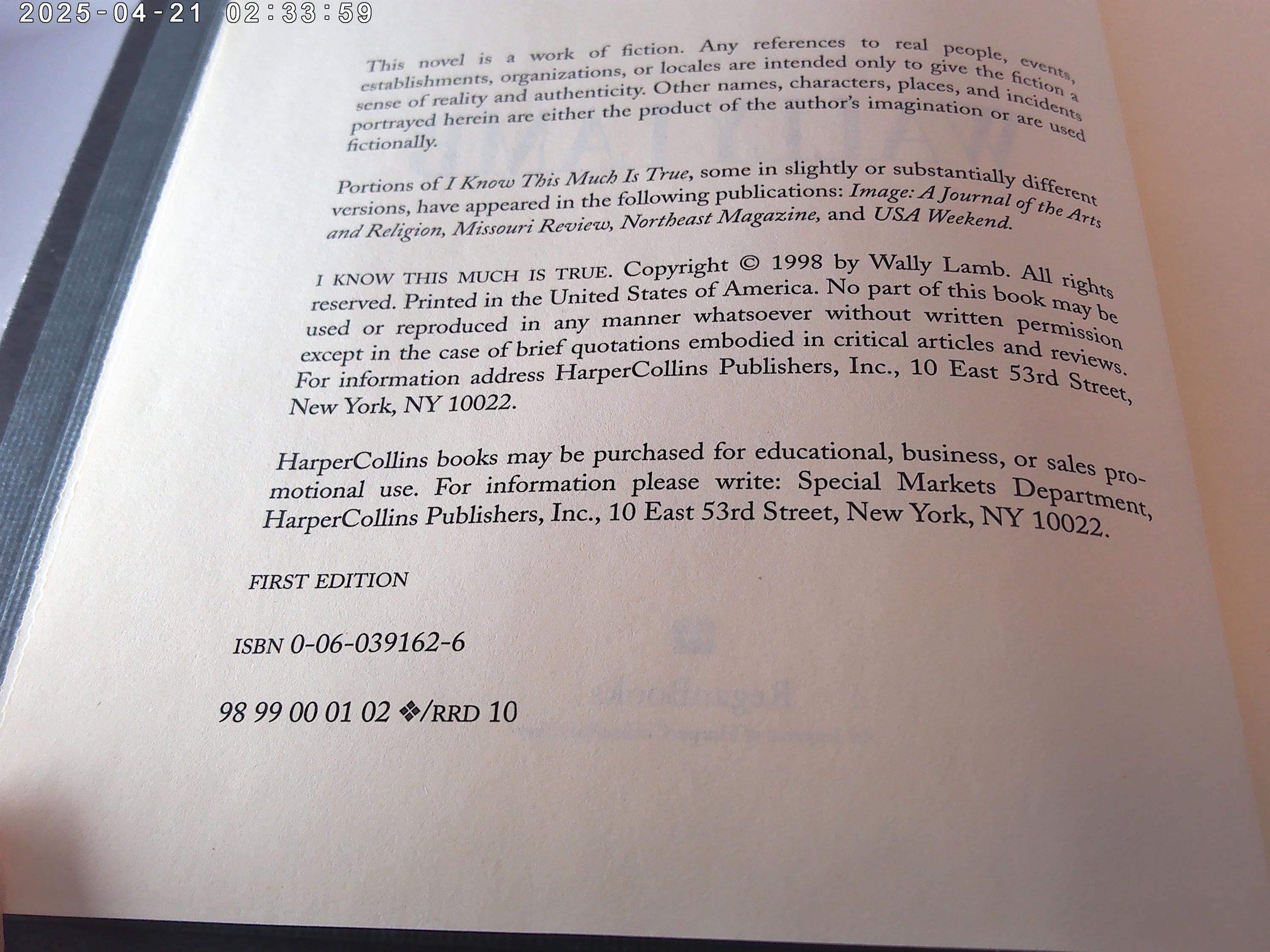 Wally Lamb I Know this Much is True 1st edition hardcover 1998 BOOK