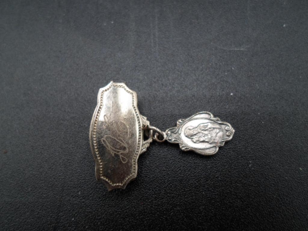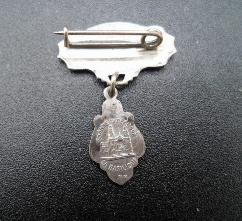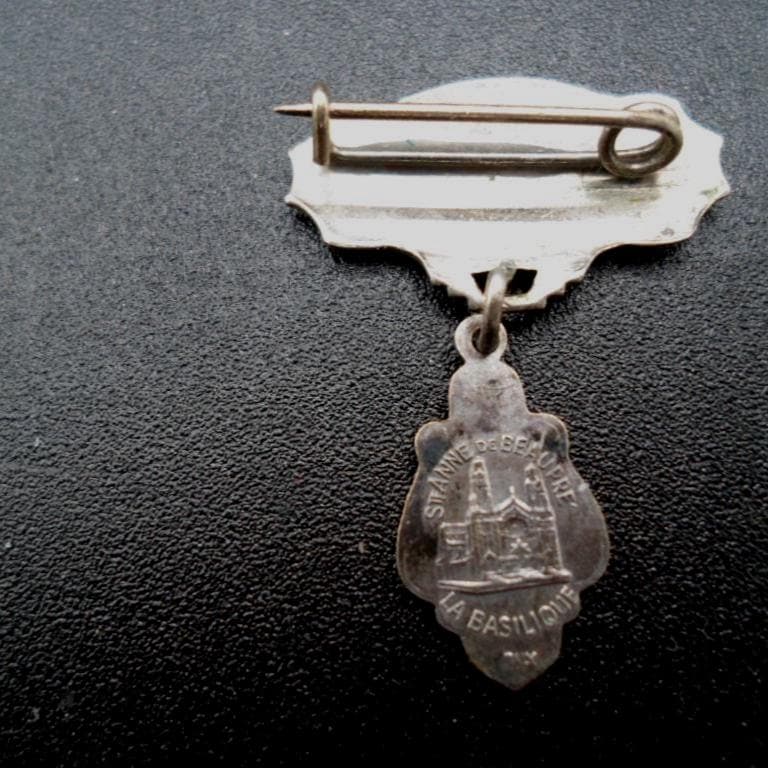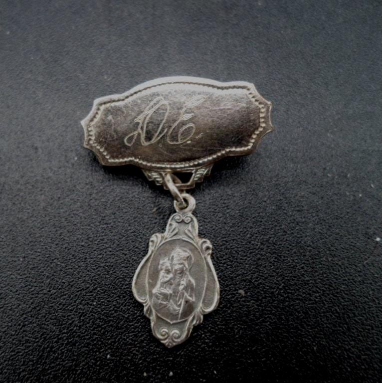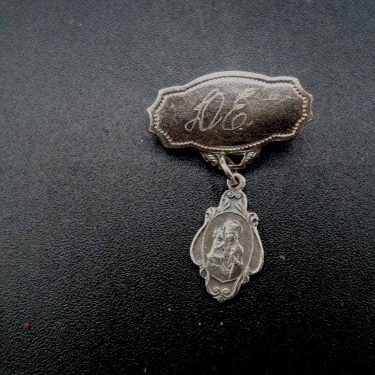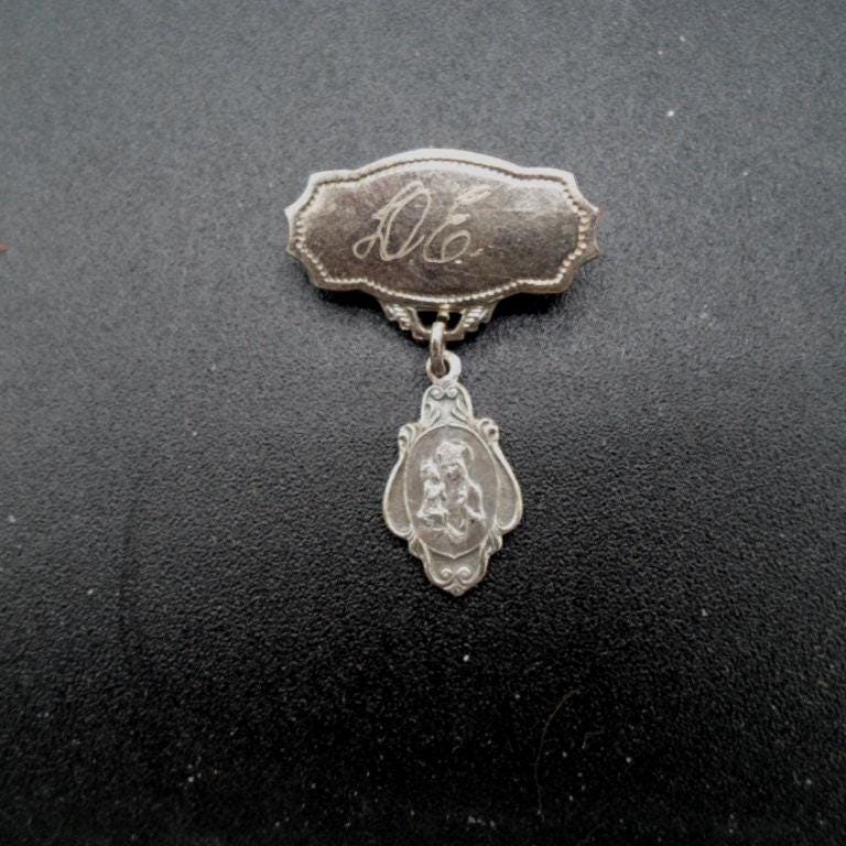 St Anne Medal Pin Antique Saint Anne Deaupre' Unusual Somewhat rare and initialed