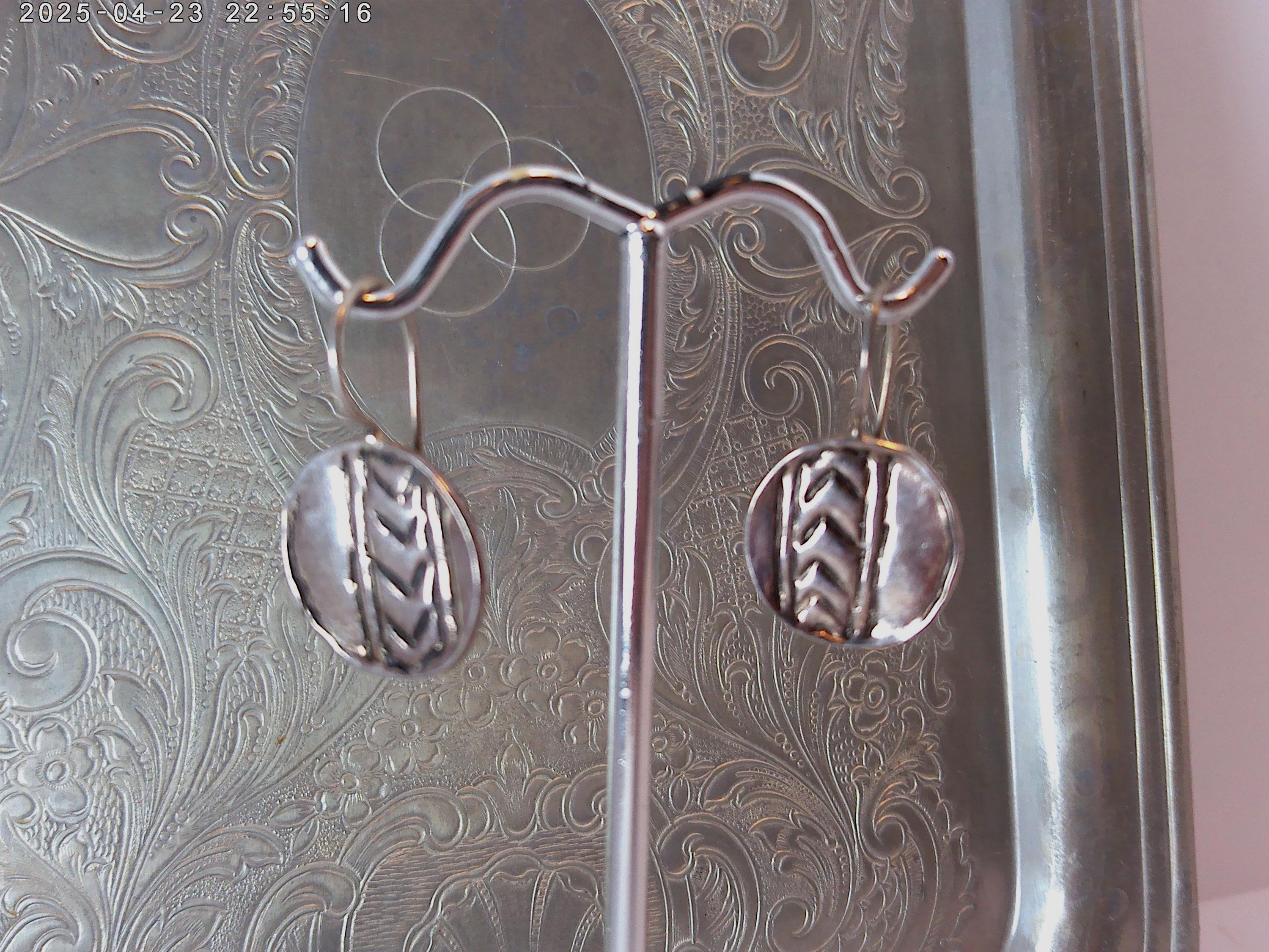 circles with lovely primitive arrow design, perfect oxidation to see details yet shiny silver color