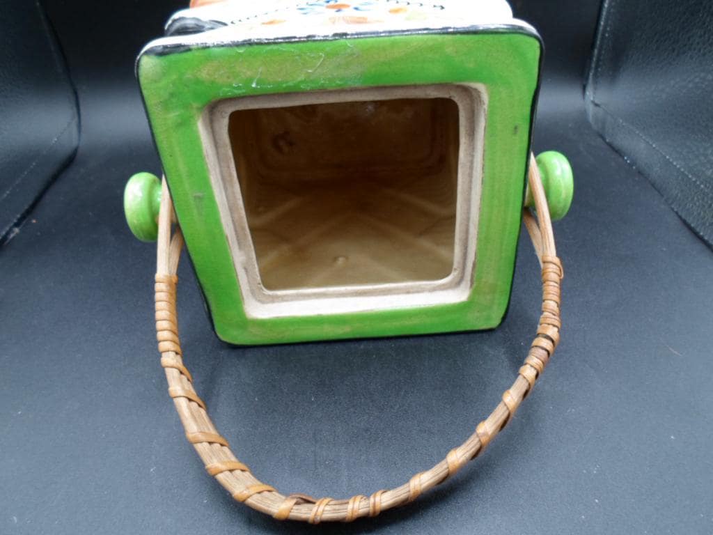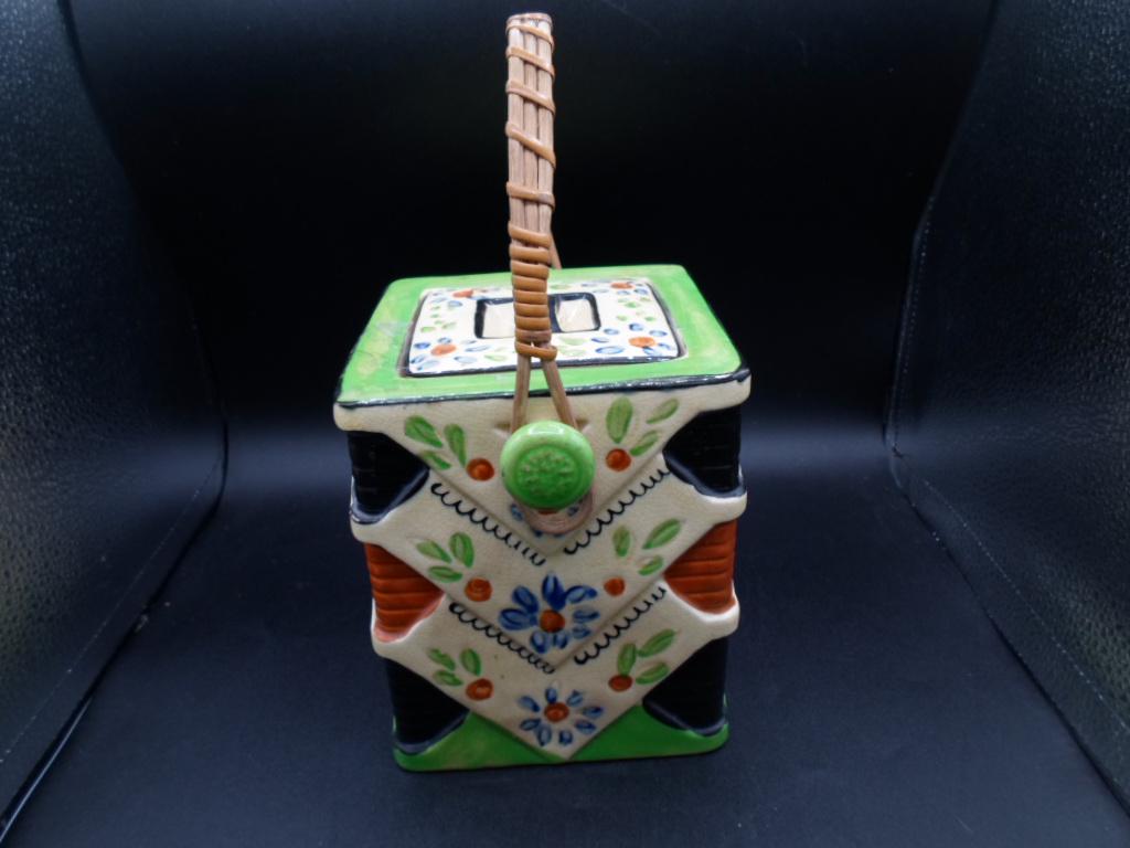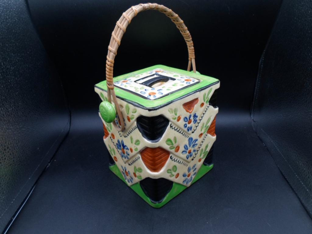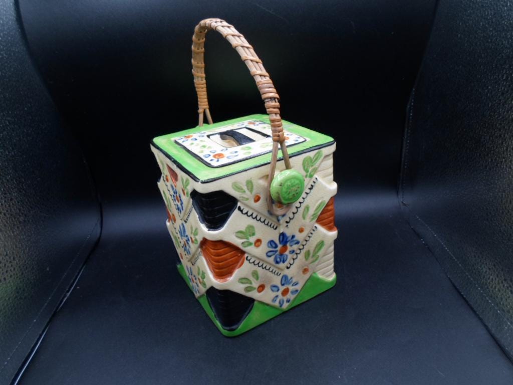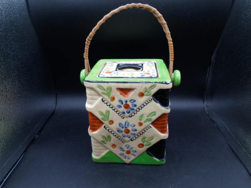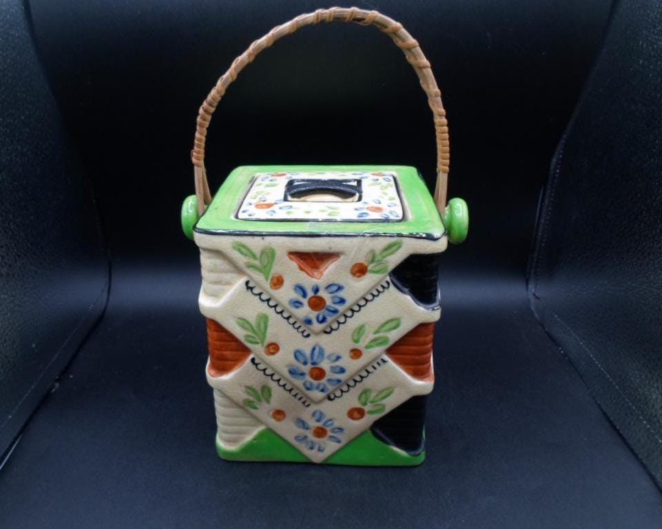 Art Deco Biscuit Cookie Jar Hand Painted Willow Handle 1930's Perfection Japan