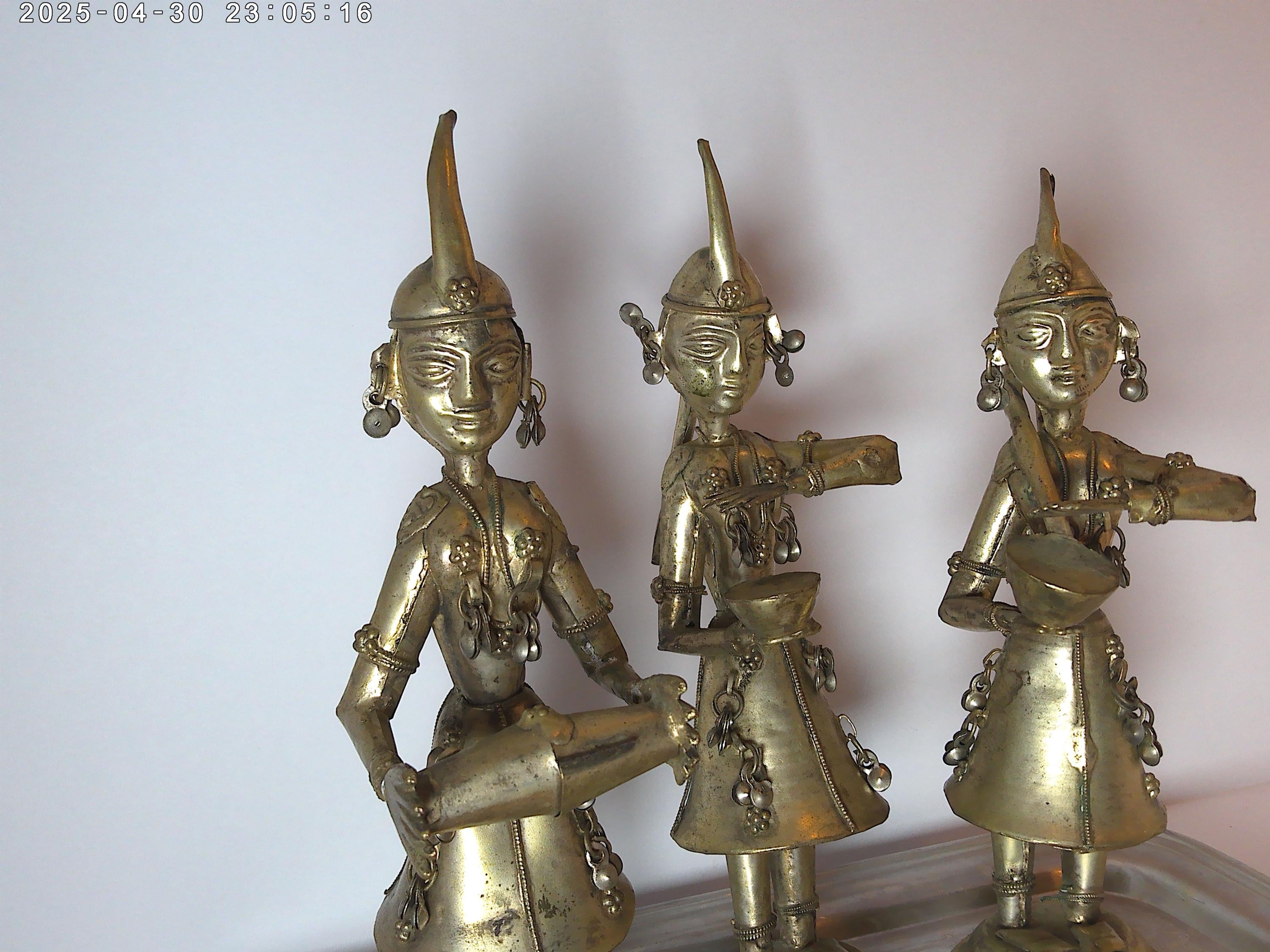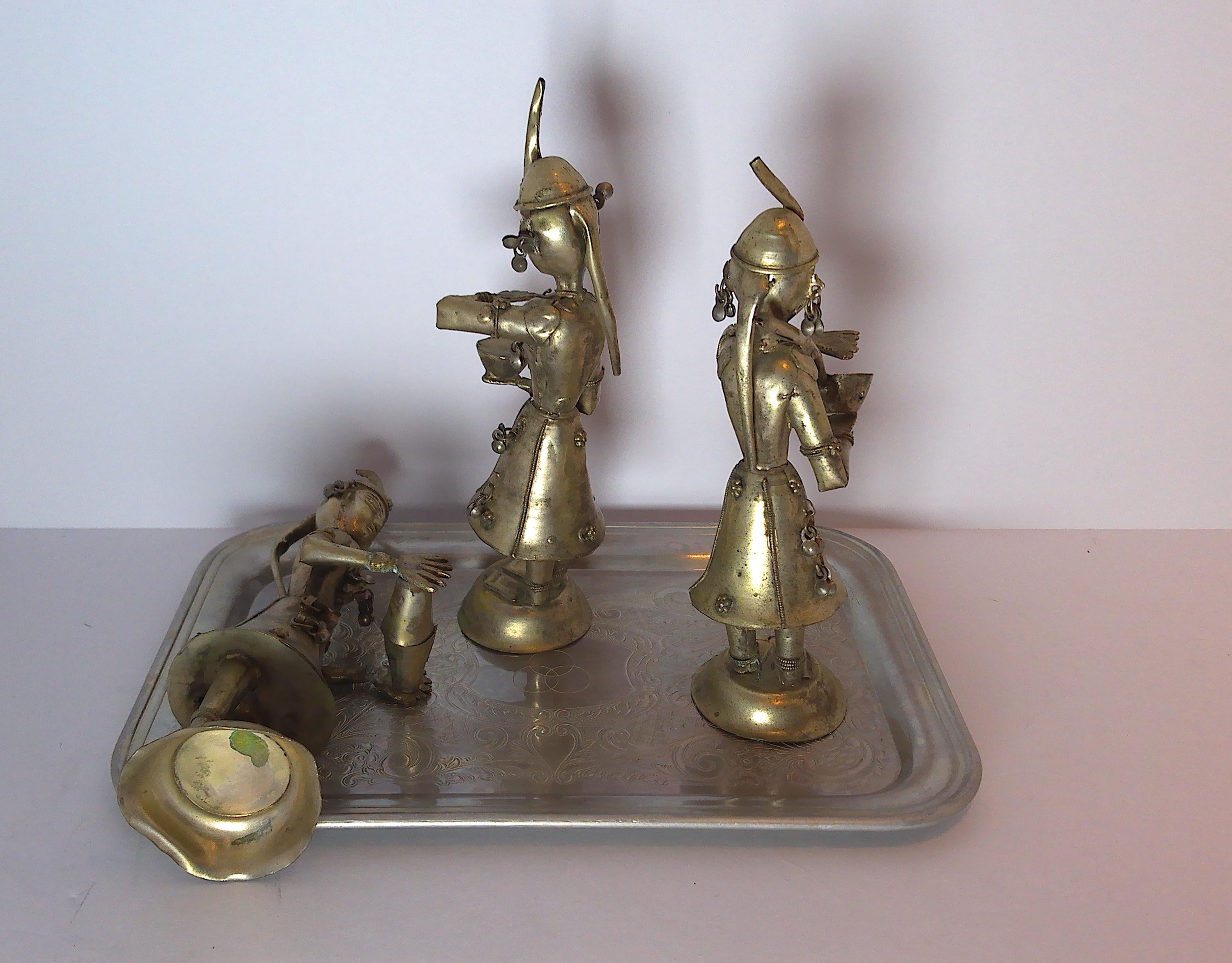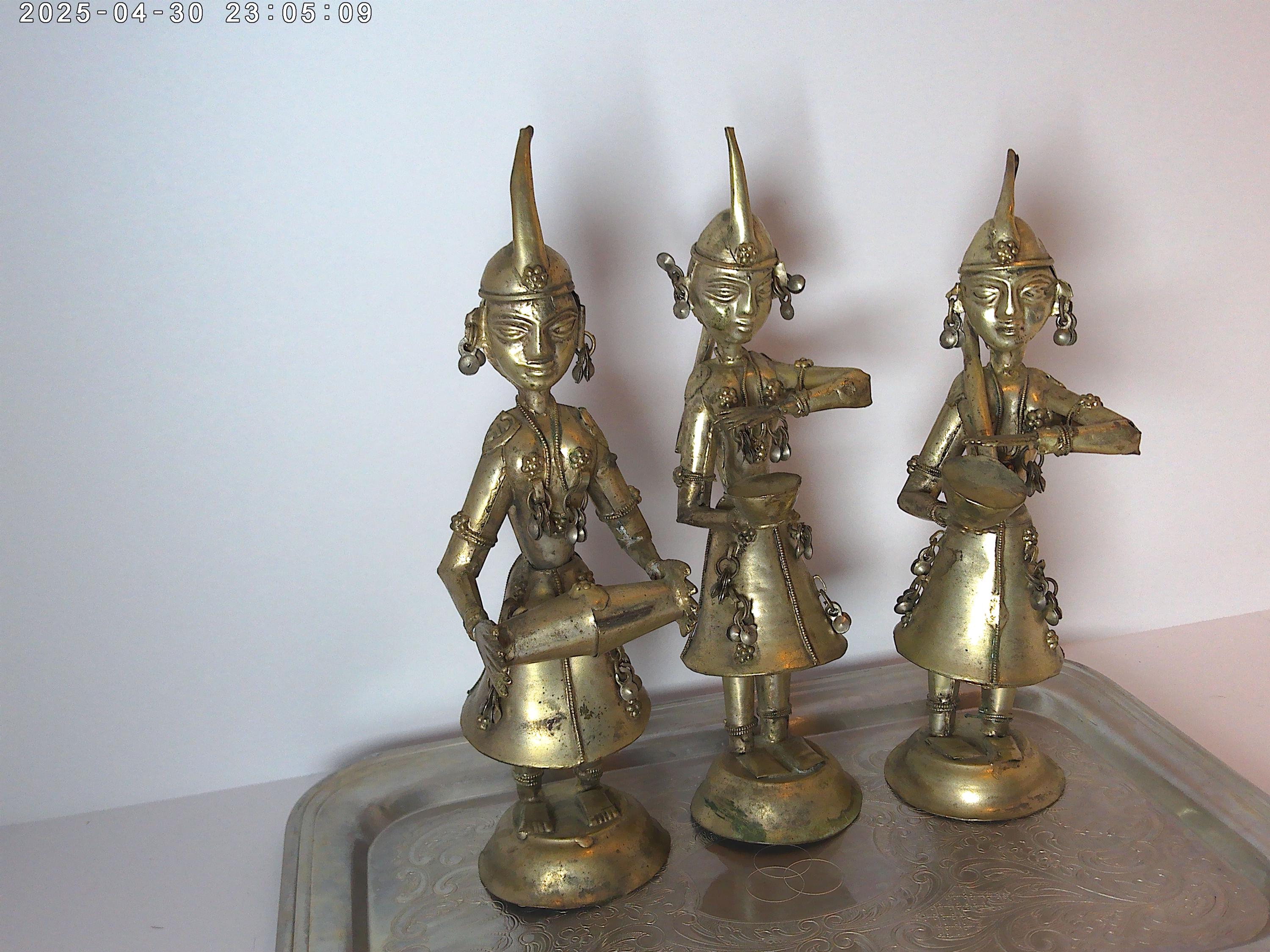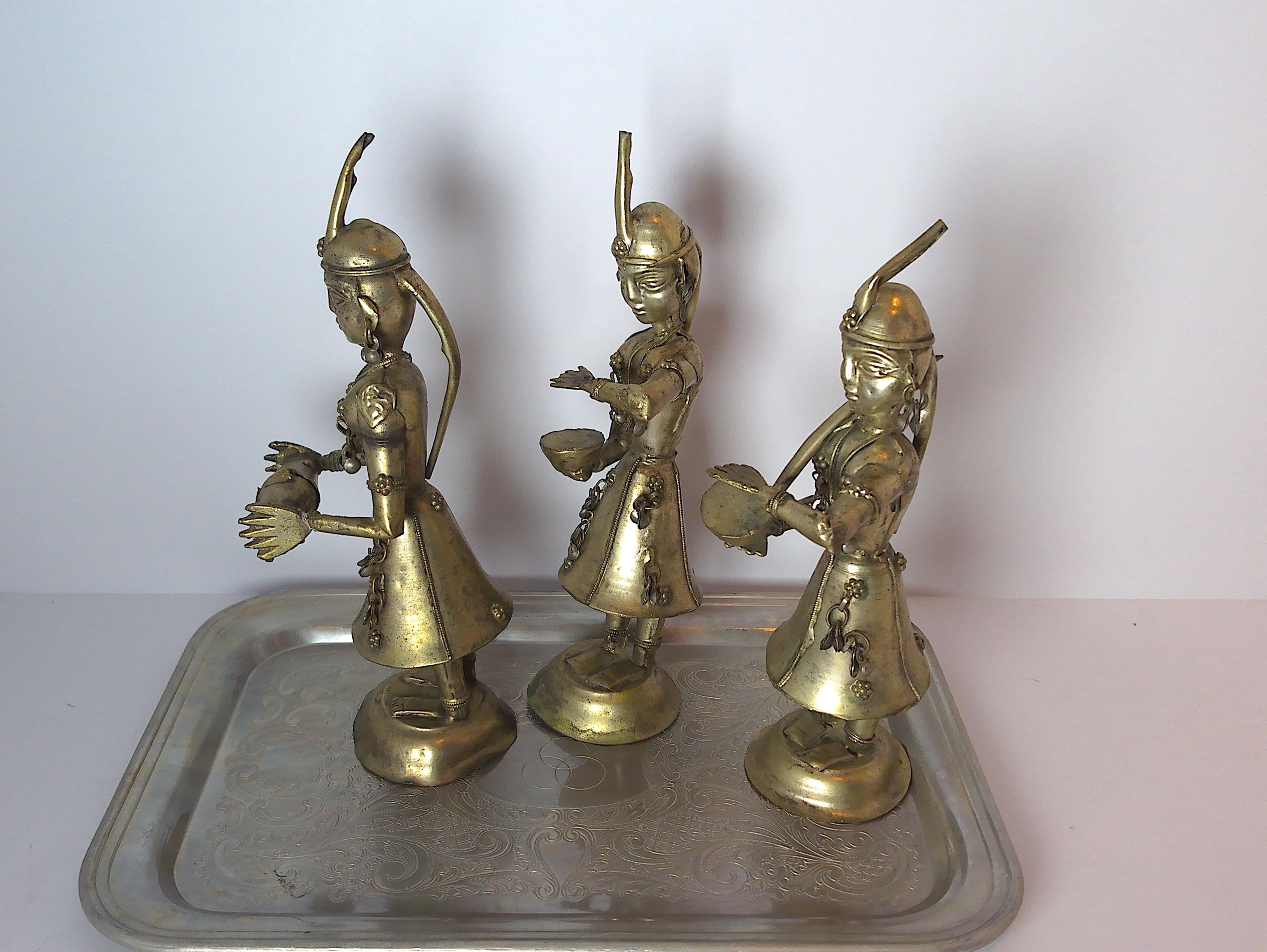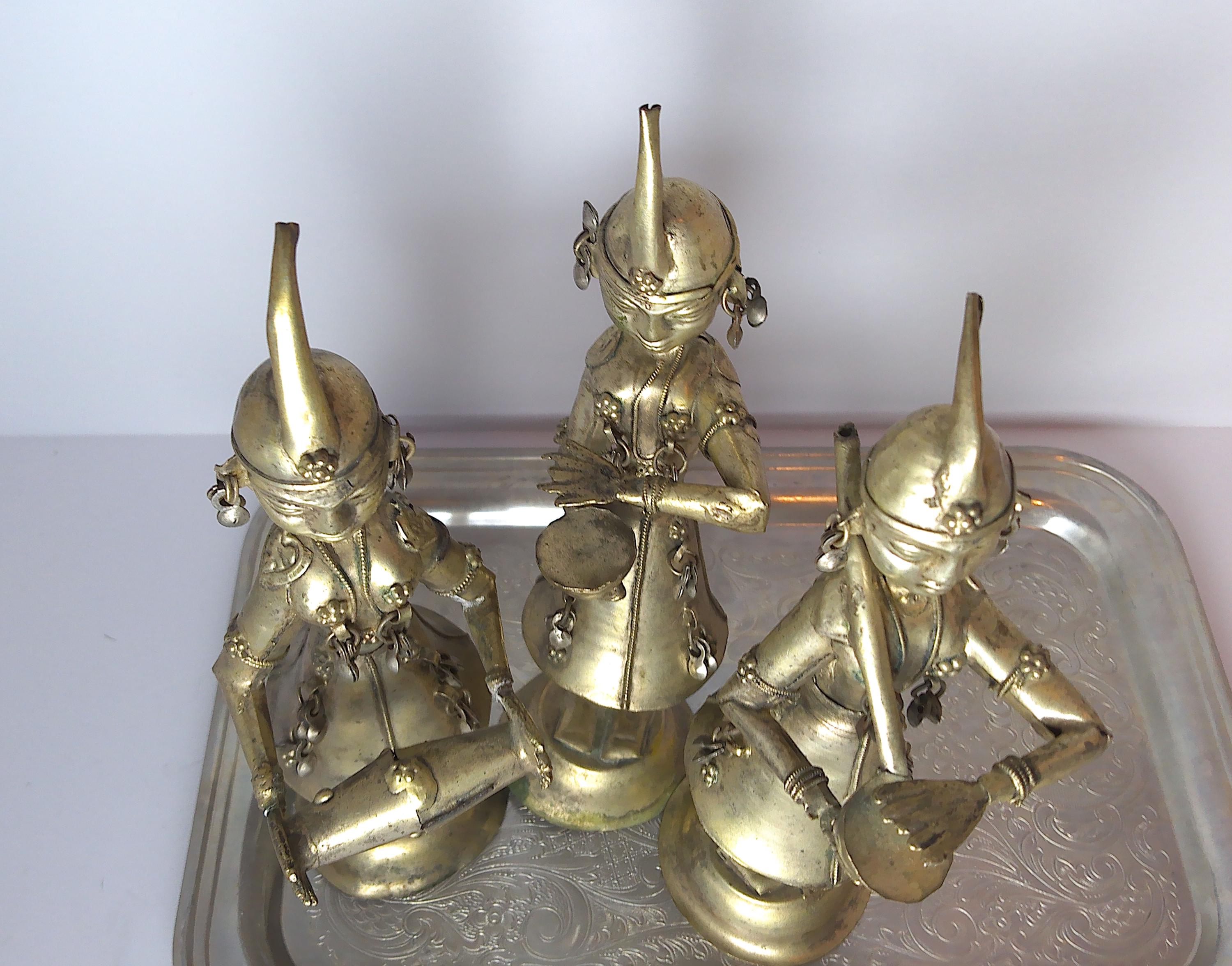 Vintage 60's Hindu musicians set of 3 tin metal sculptures Rajasthani