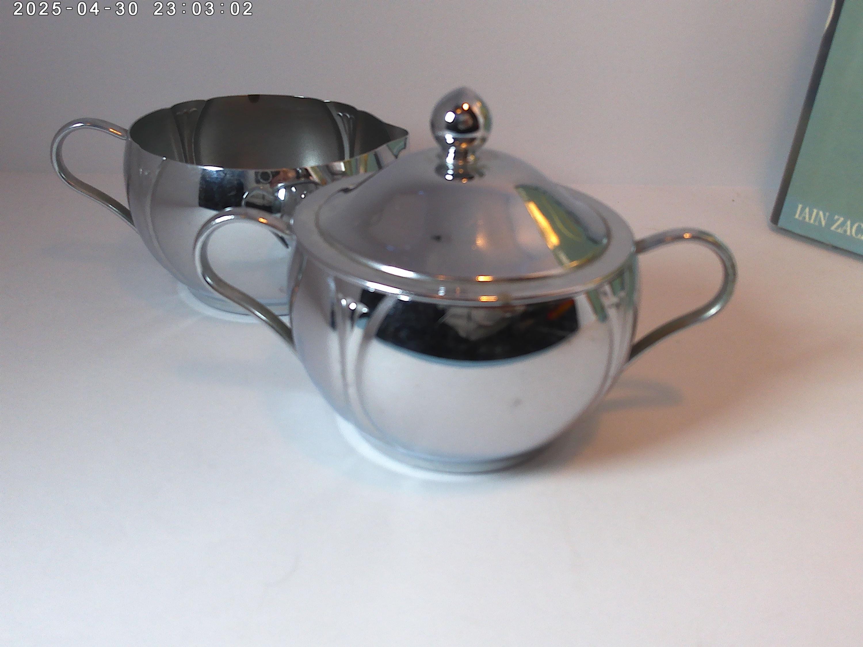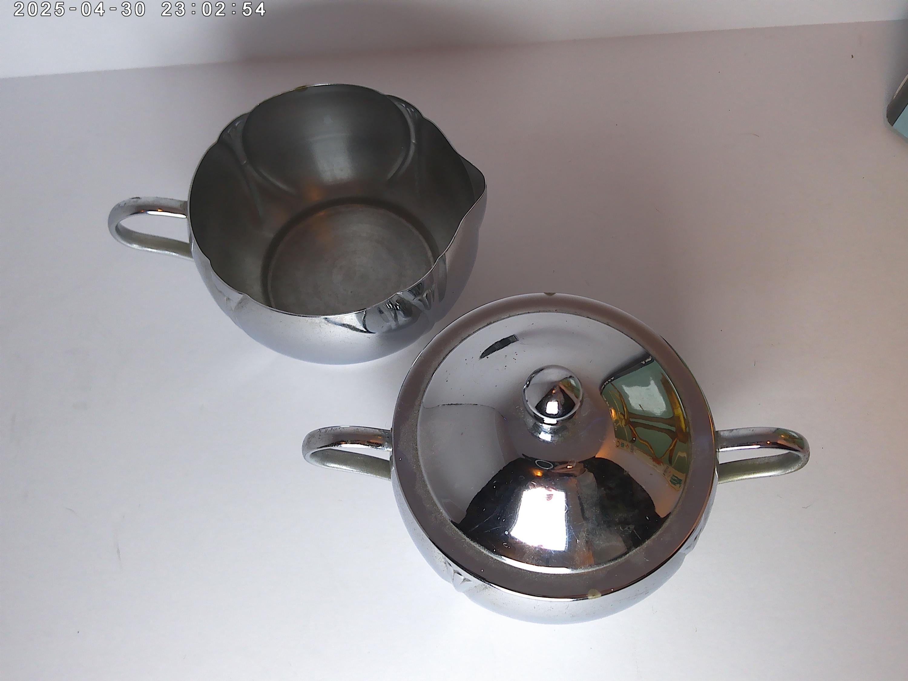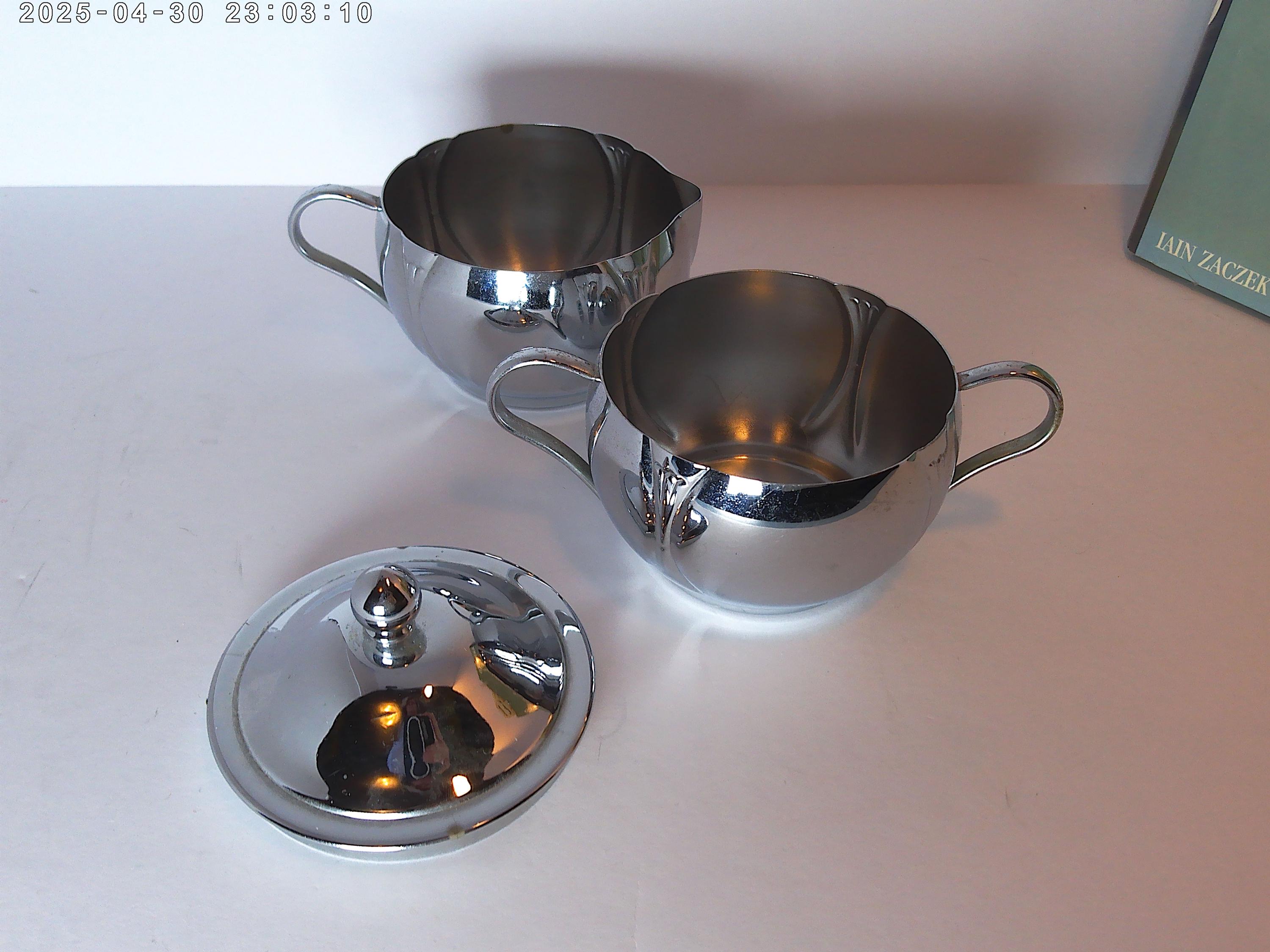 Antique Deco 30's-40's era Chrome creamer and sugar bowl with lid, lovely