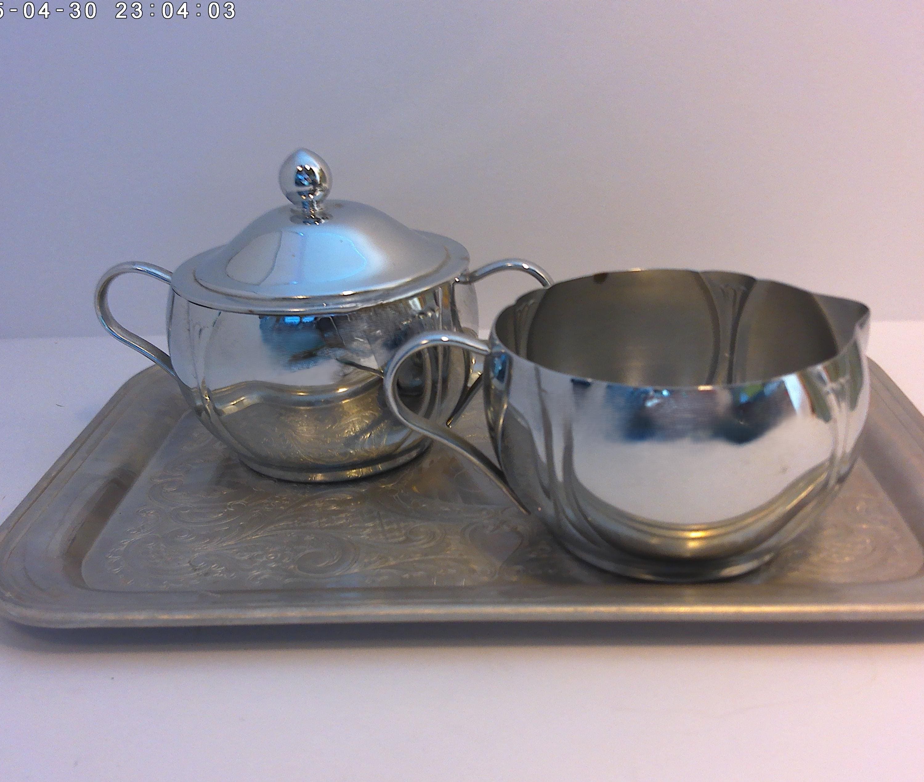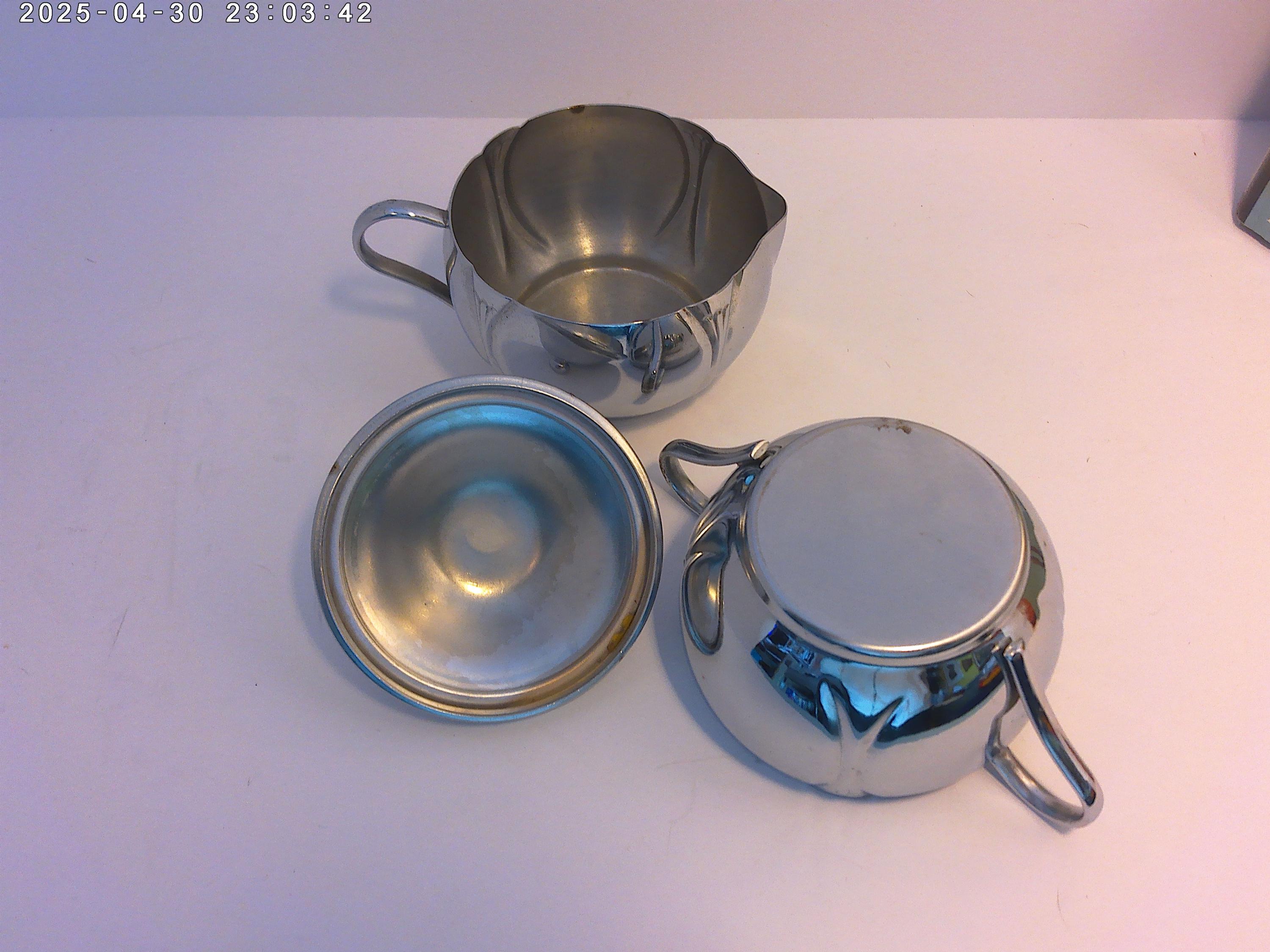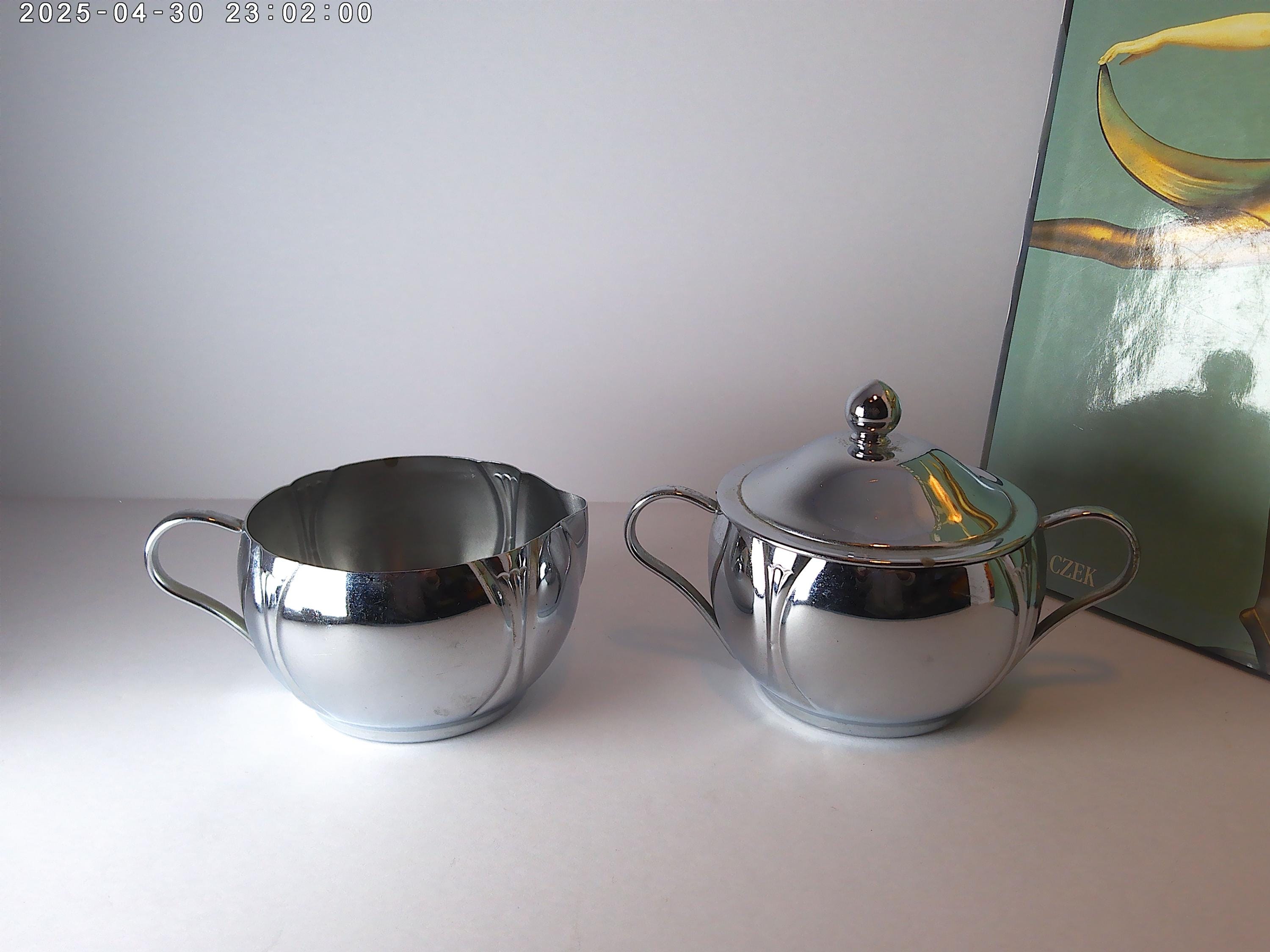 Antique Deco 30's-40's era Chrome creamer and sugar bowl with lid, lovely