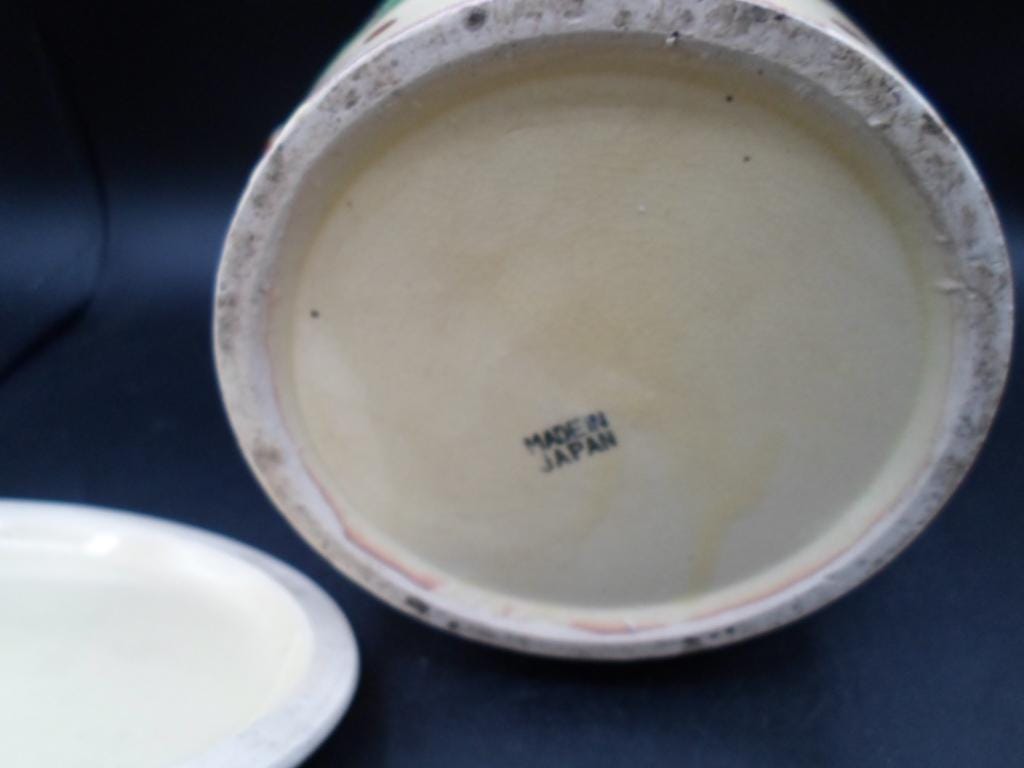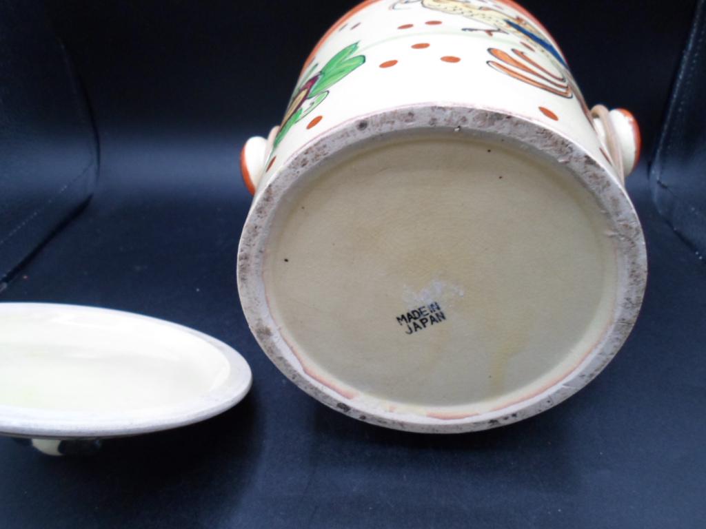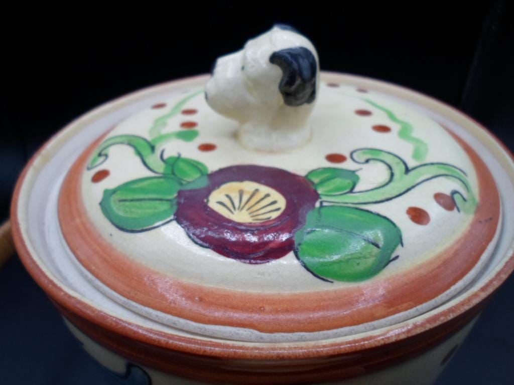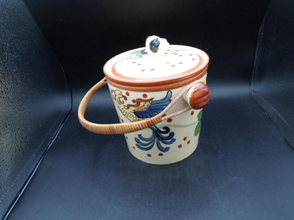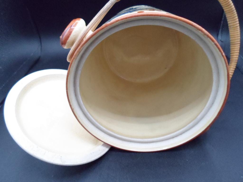 Art Deco Dog Head Biscuit Cookie Jar Hand Painted Willow Handle 1930's Japan Excellent
