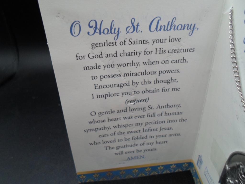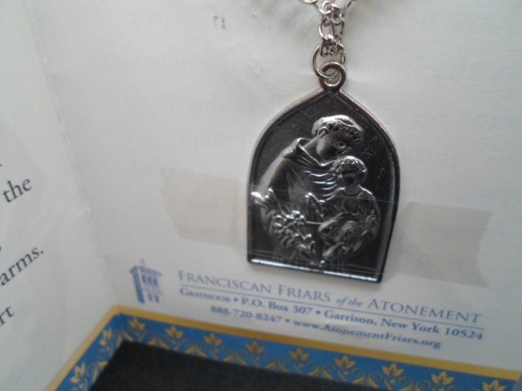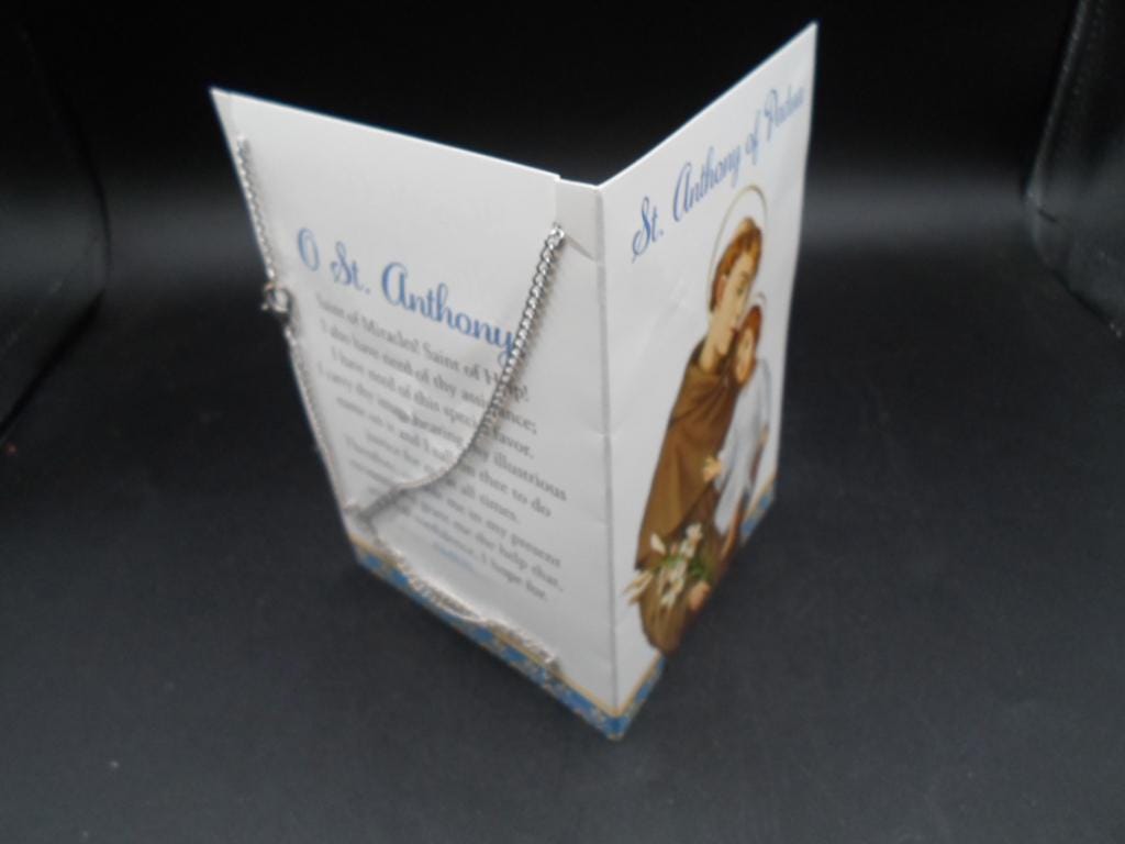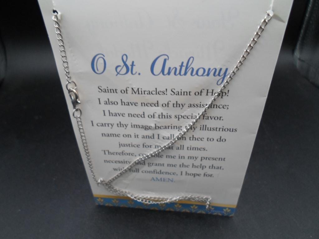 1.50"long 1"wide Saint Anthony Medal and Chain in original Packaging. Unused . Beautiful condition with original prayers.