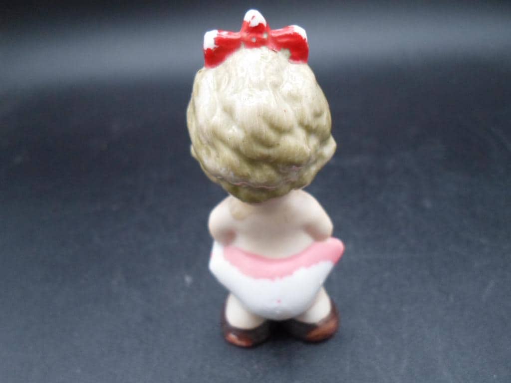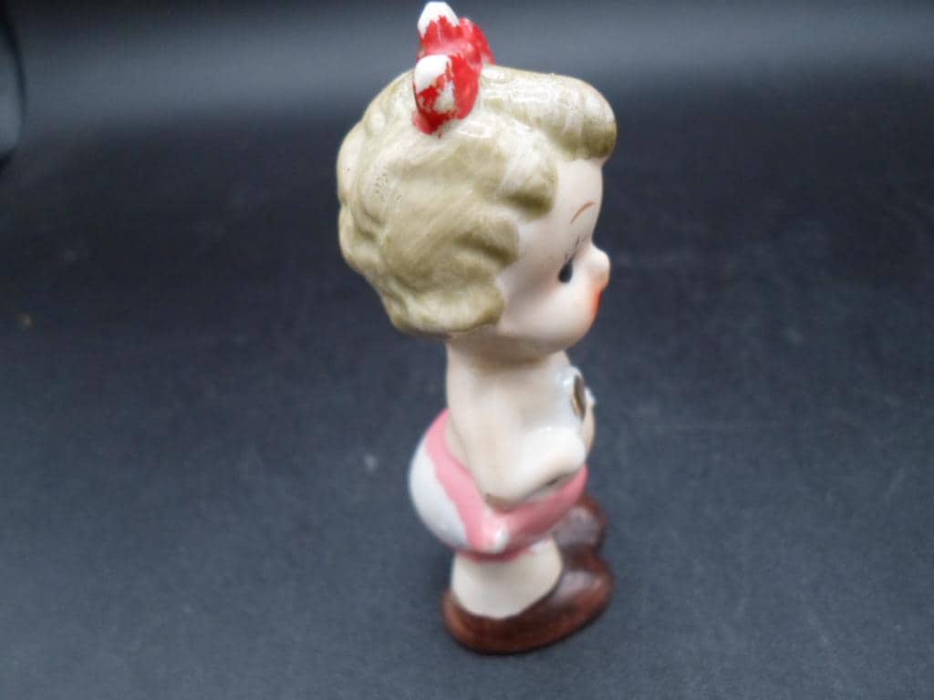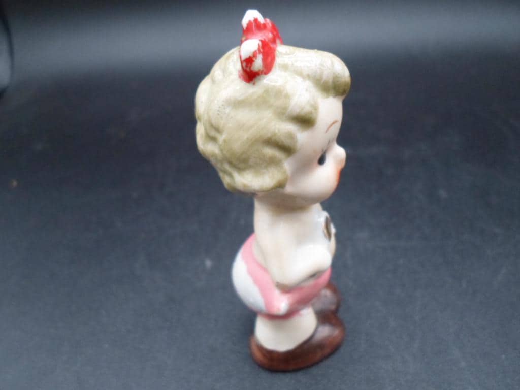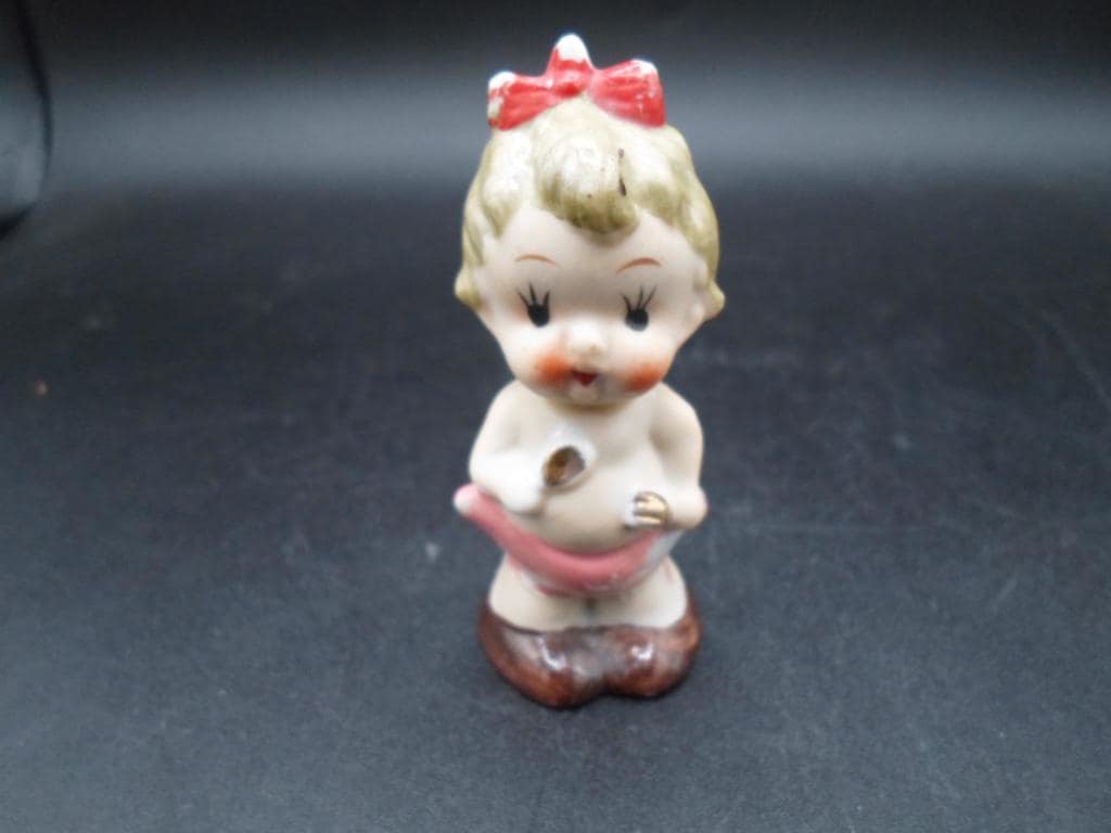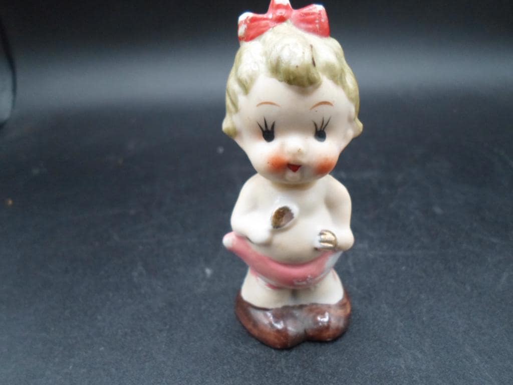 Vintage Made in Japan Baby Figure Spoon Fork in hand Red Bow. Cutie Deco Gal