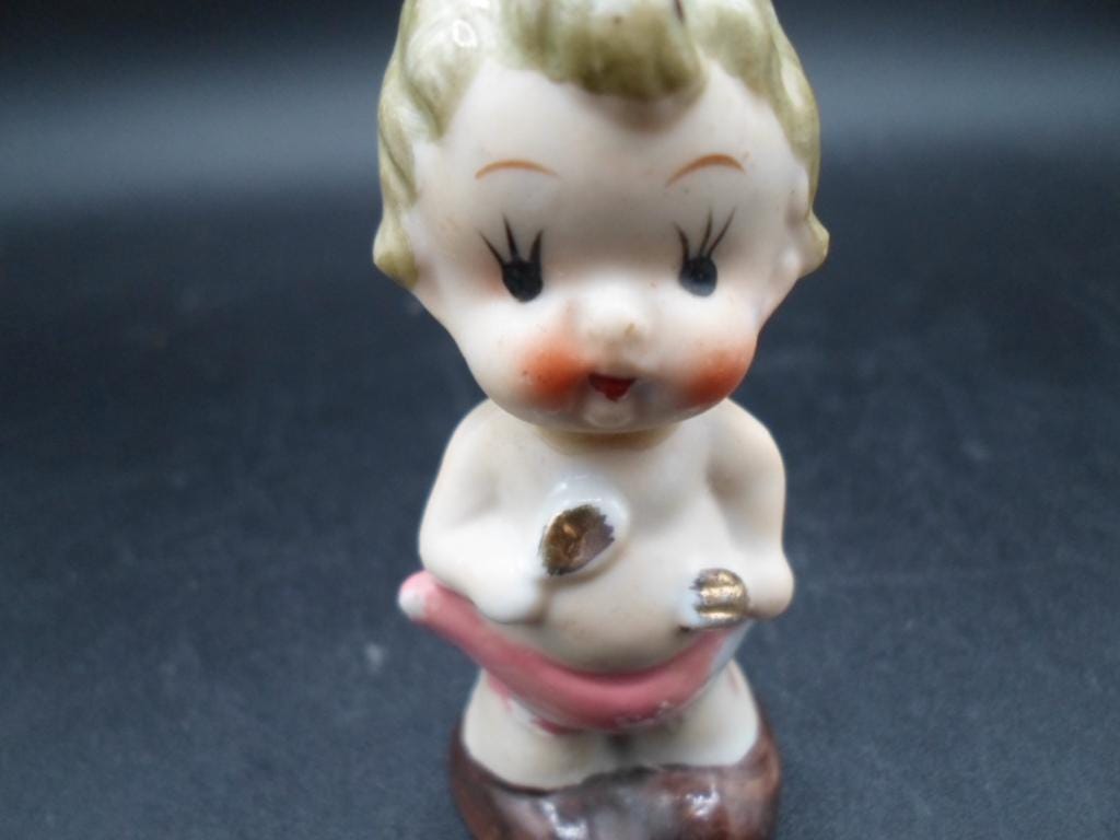 2.50"tall 1" base. Very Cute Baby holding fork and spoon from the Art Deco Era. Marked Japan. Unusual