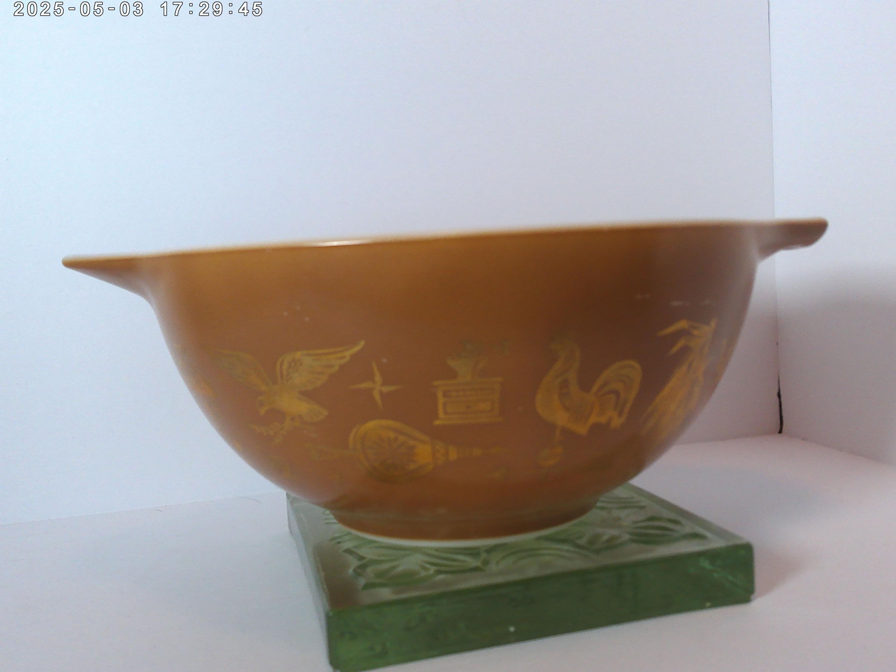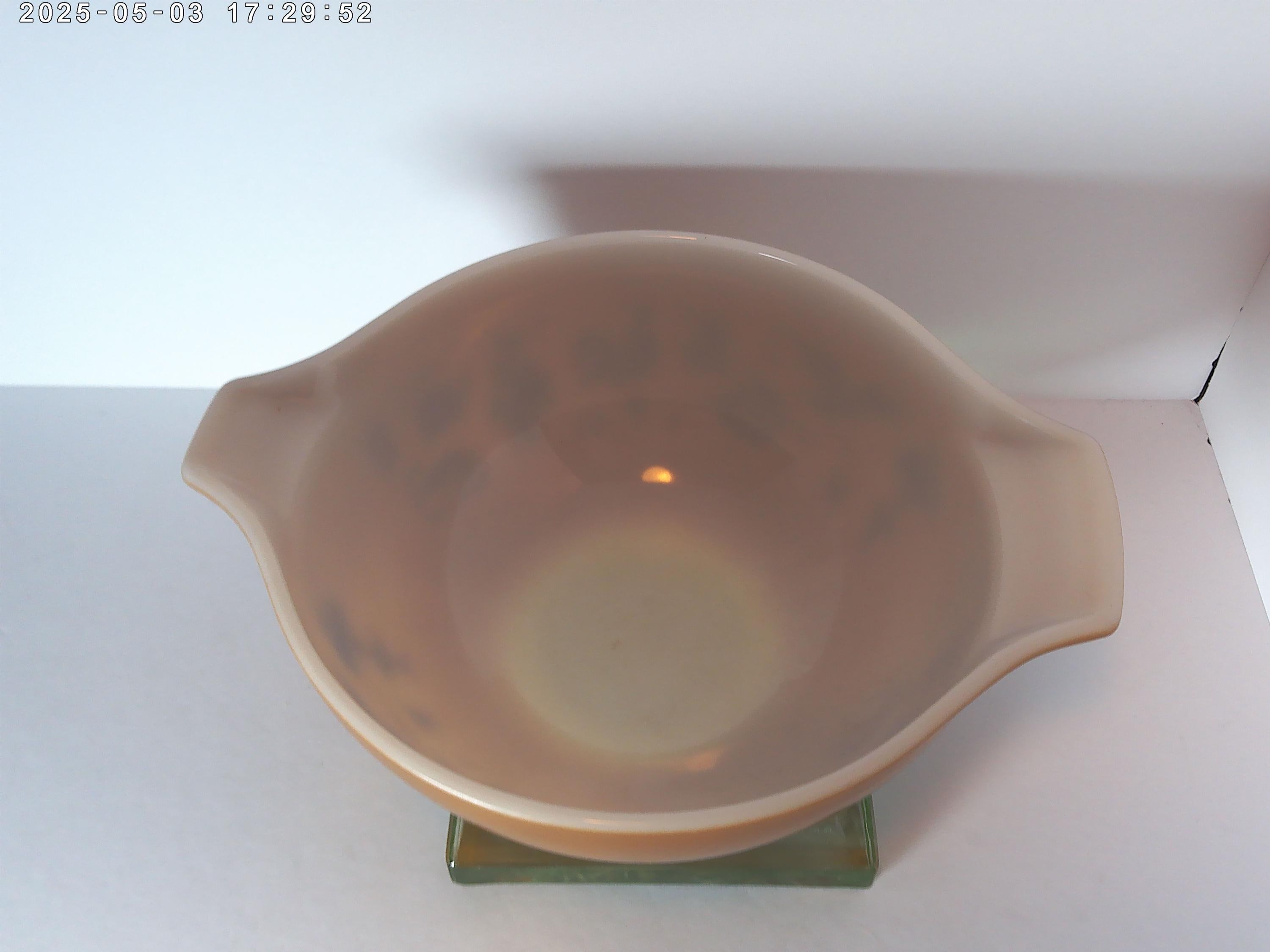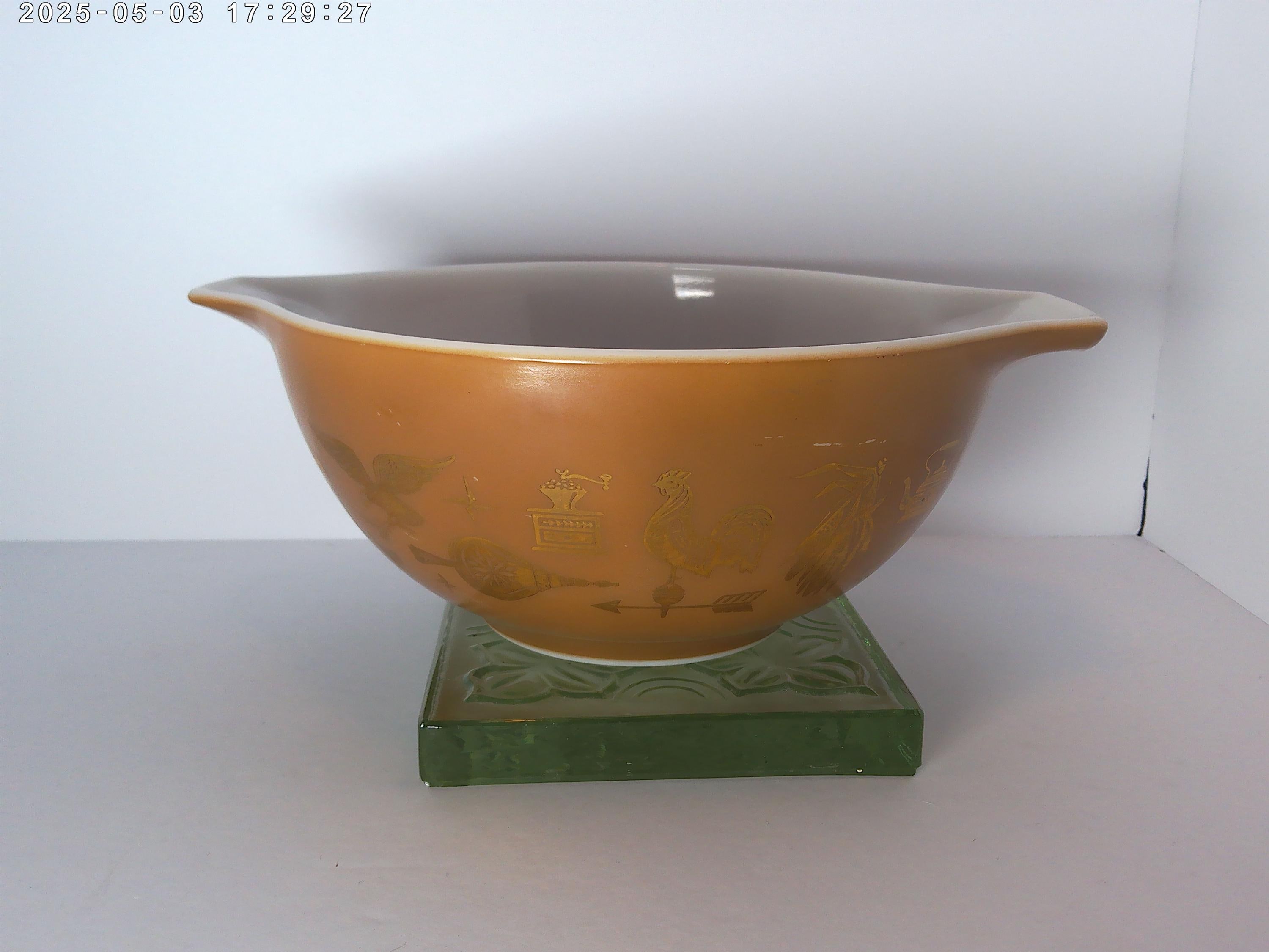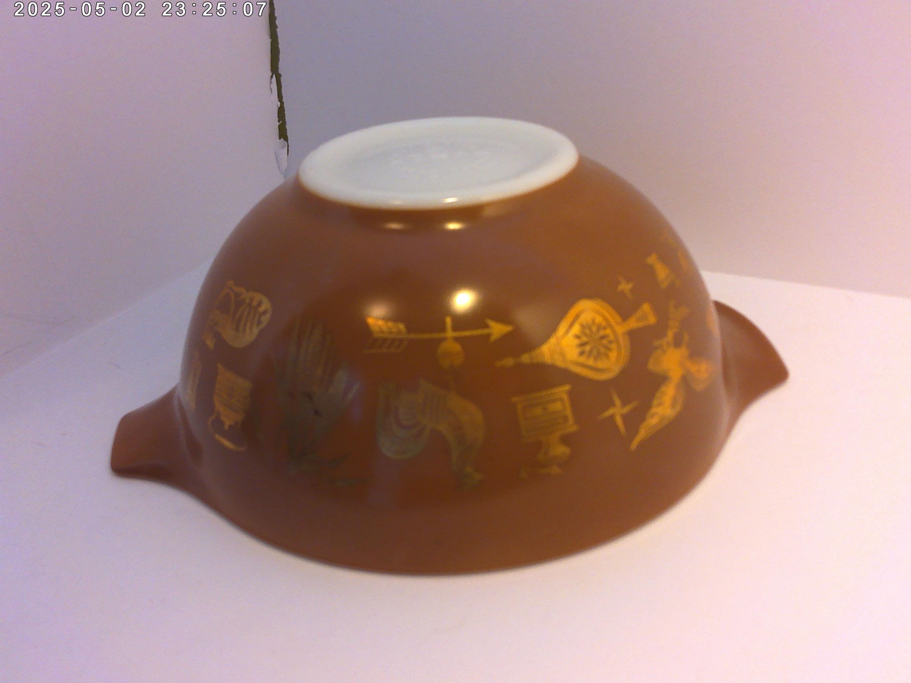 Vintage 60's Pyrex bowl Early American brown with gold pouring lip 1.5" qt