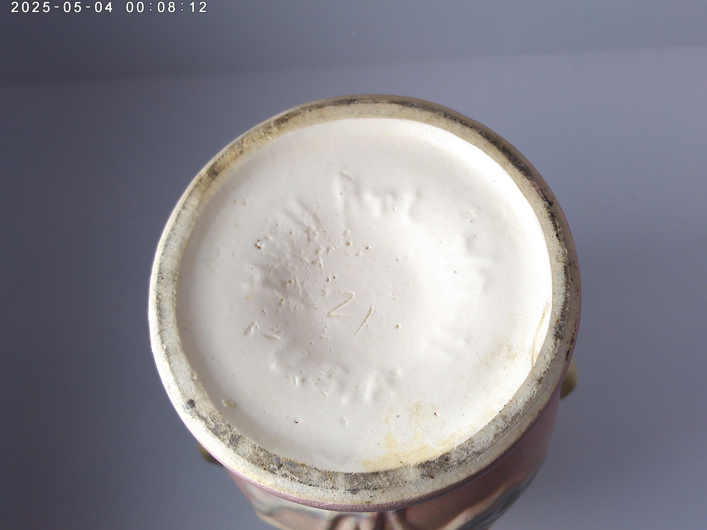 Magnolia flowers vase is pale yellow with mauve bottom.