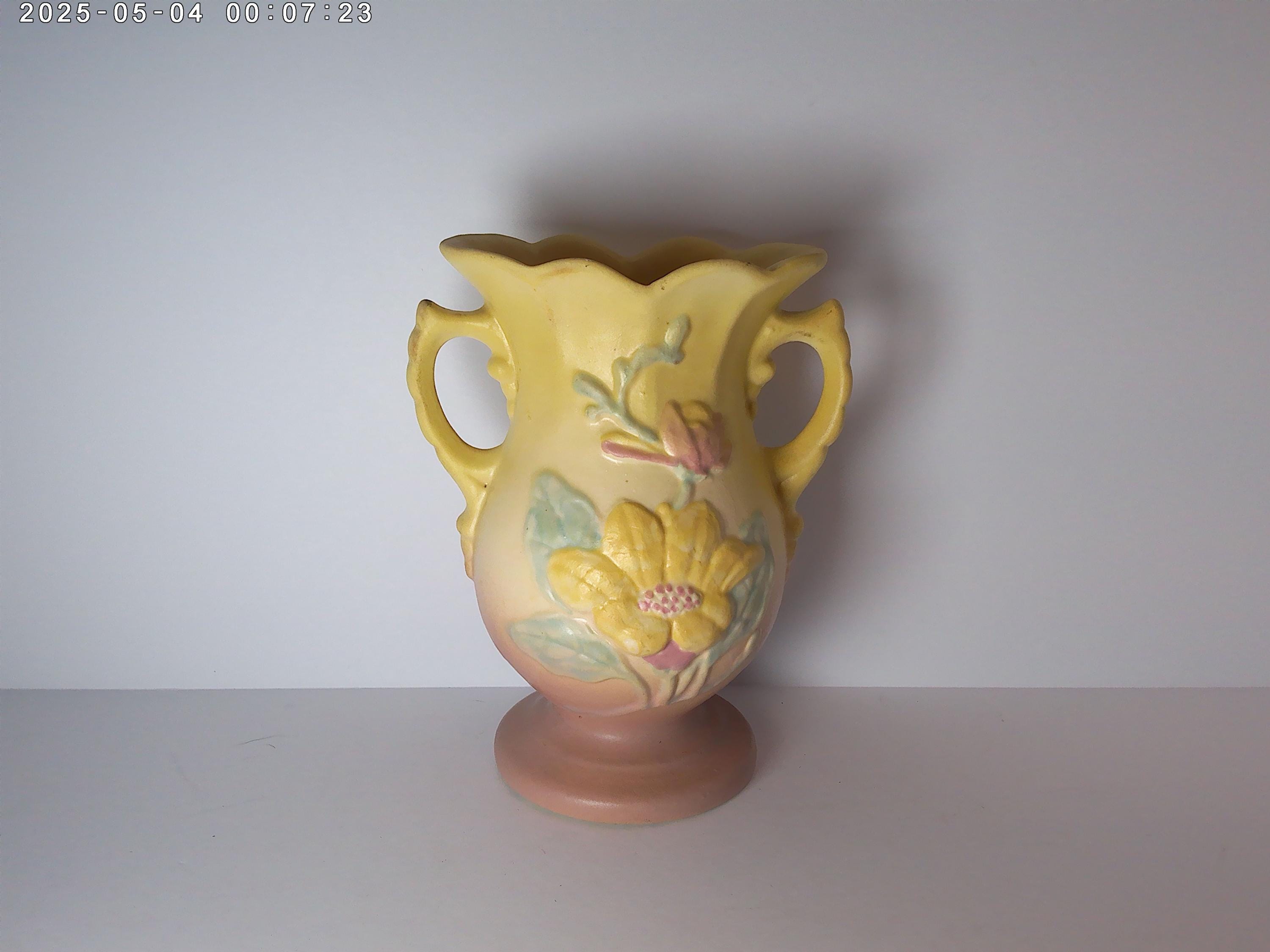Antique Hull Art Vase Magnolia flowers yellow with pink classic vintage style