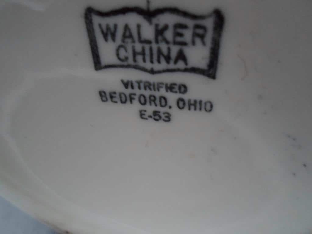 8"high 6"wide at widest area. Bulbous Banded Pitcher Walker Restaurant China. Dated 1953. Thick Durable Some Underglaze around top and on handle. Water, Milk Etc. Very Good Condition note photos. Highly Collectable.