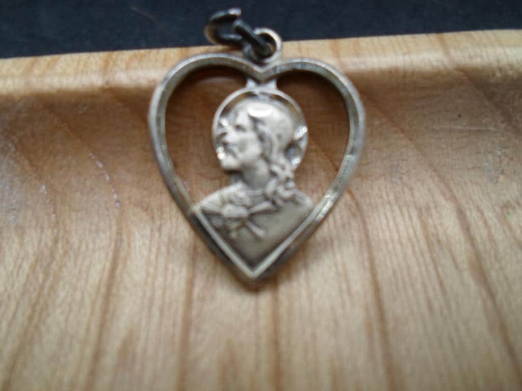 3/4"long 1/2"wide Beautiful detailed Sacred Heart Medal. Artwork in itself this beauty is marked Sterling. 1930's to 1950's.