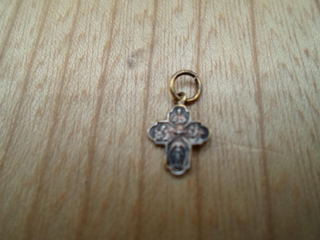 Vintage 4 Way Scapular Medal Miniature Tiny 40's Era Soldiers Cross Rare Size