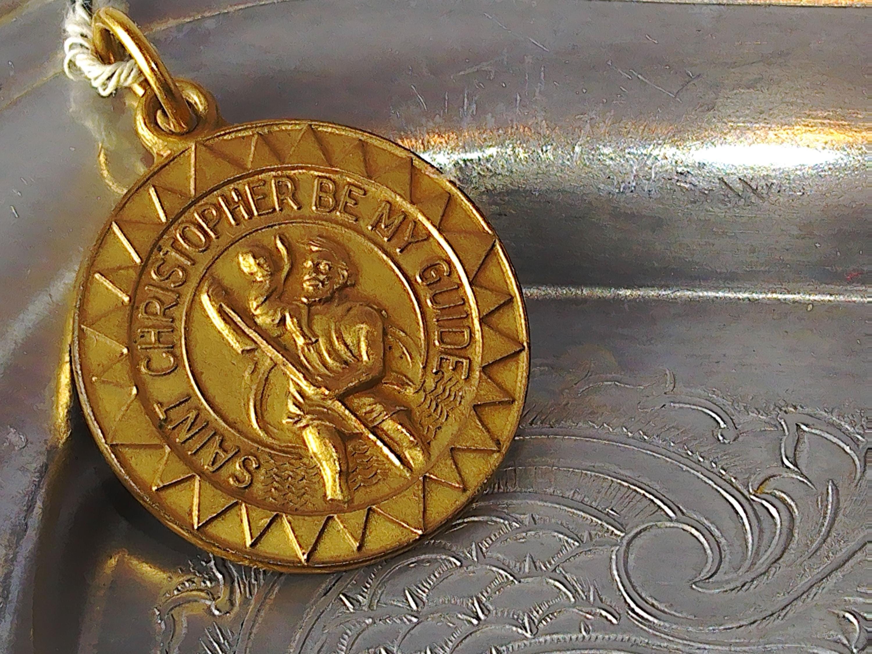 Vintage St. Christopher gold filled medal Ela 12 kt gf Be My Guide religion
