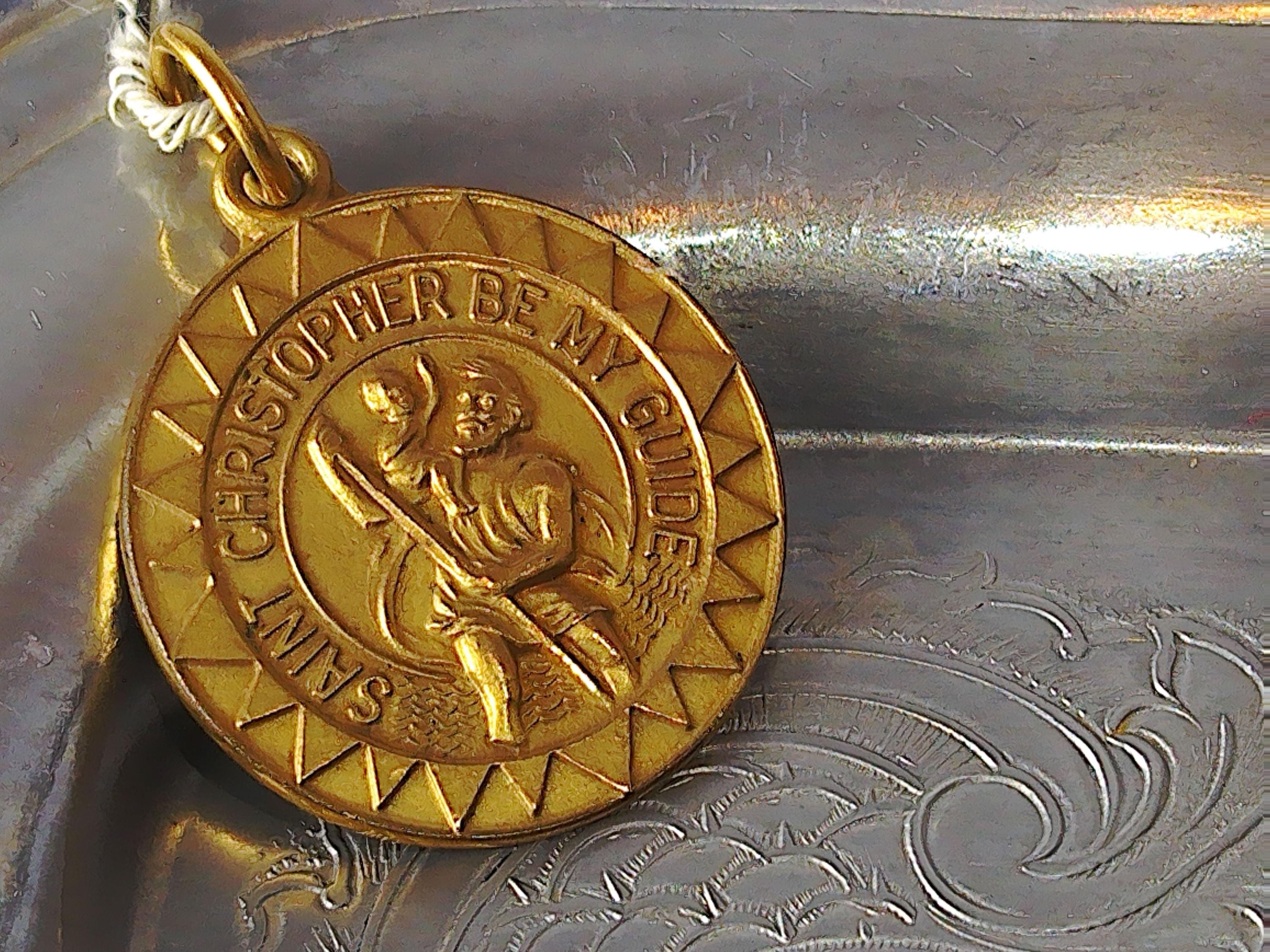 Great looking vintage 70's St Christopher Be My Guide Religious Icon Medal