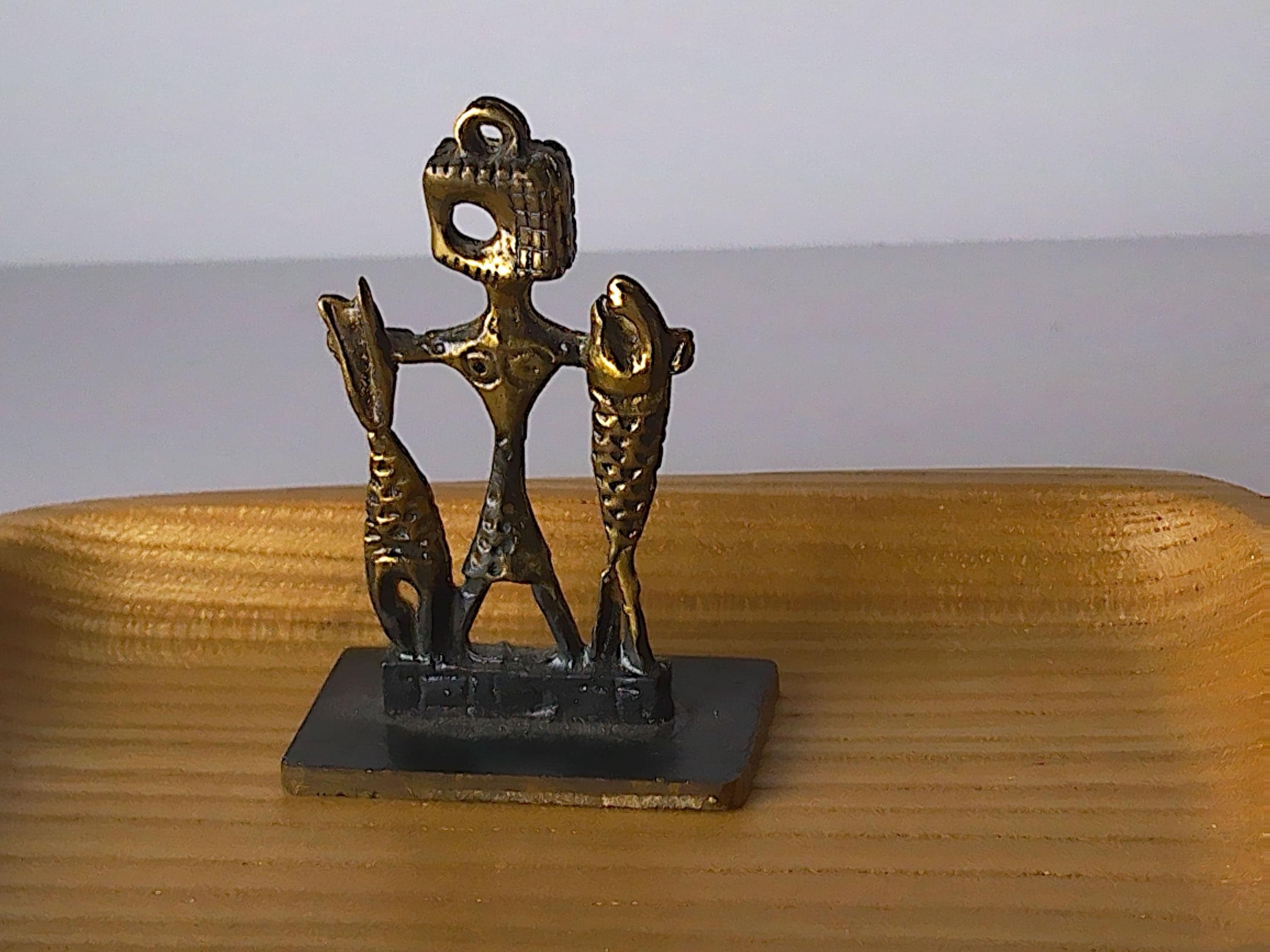 Vintage Aharon Bezel Brass Bronze Brutalist Zodiac Pisces Astro Made in Isreal Yitzchak Bier