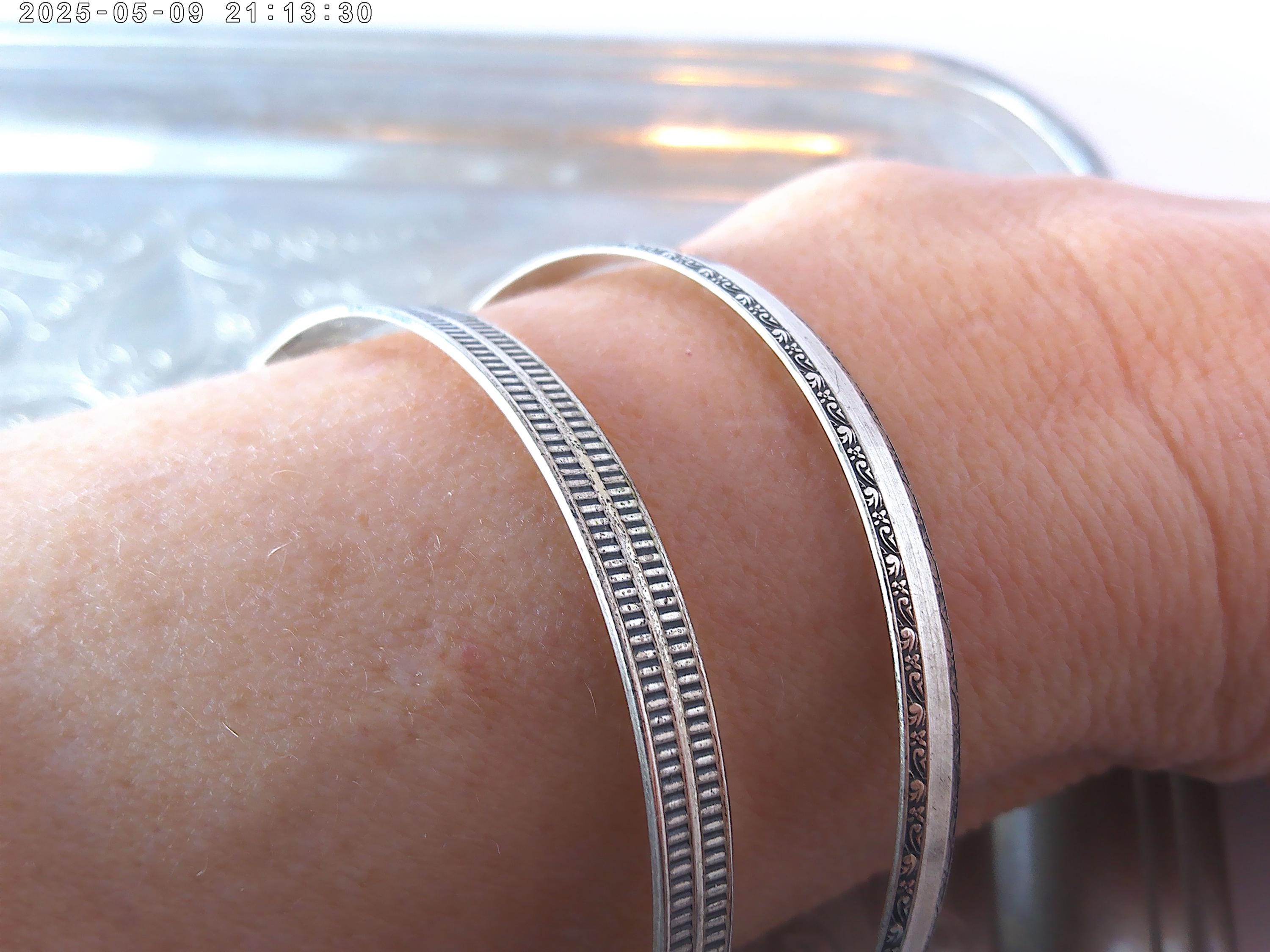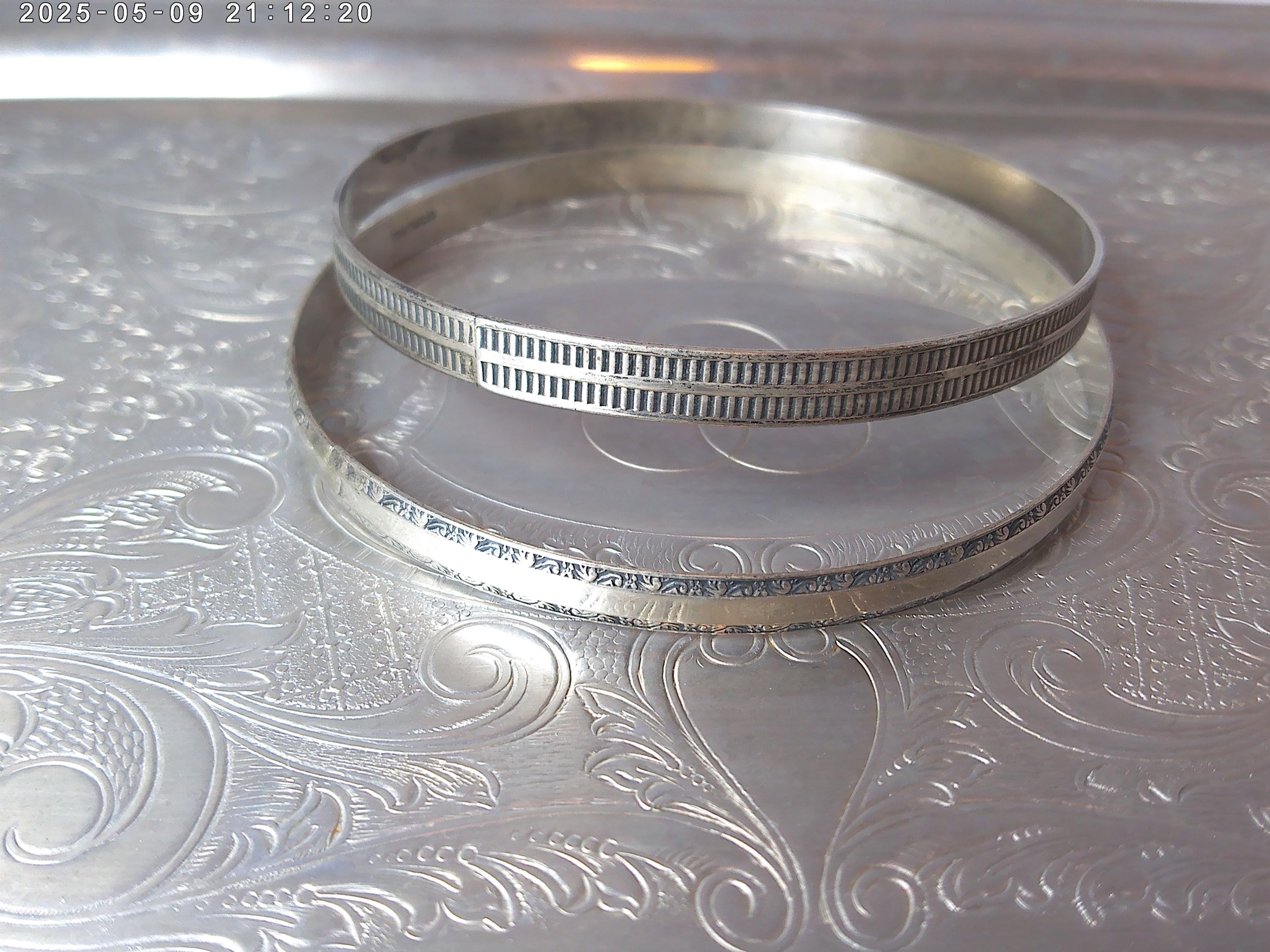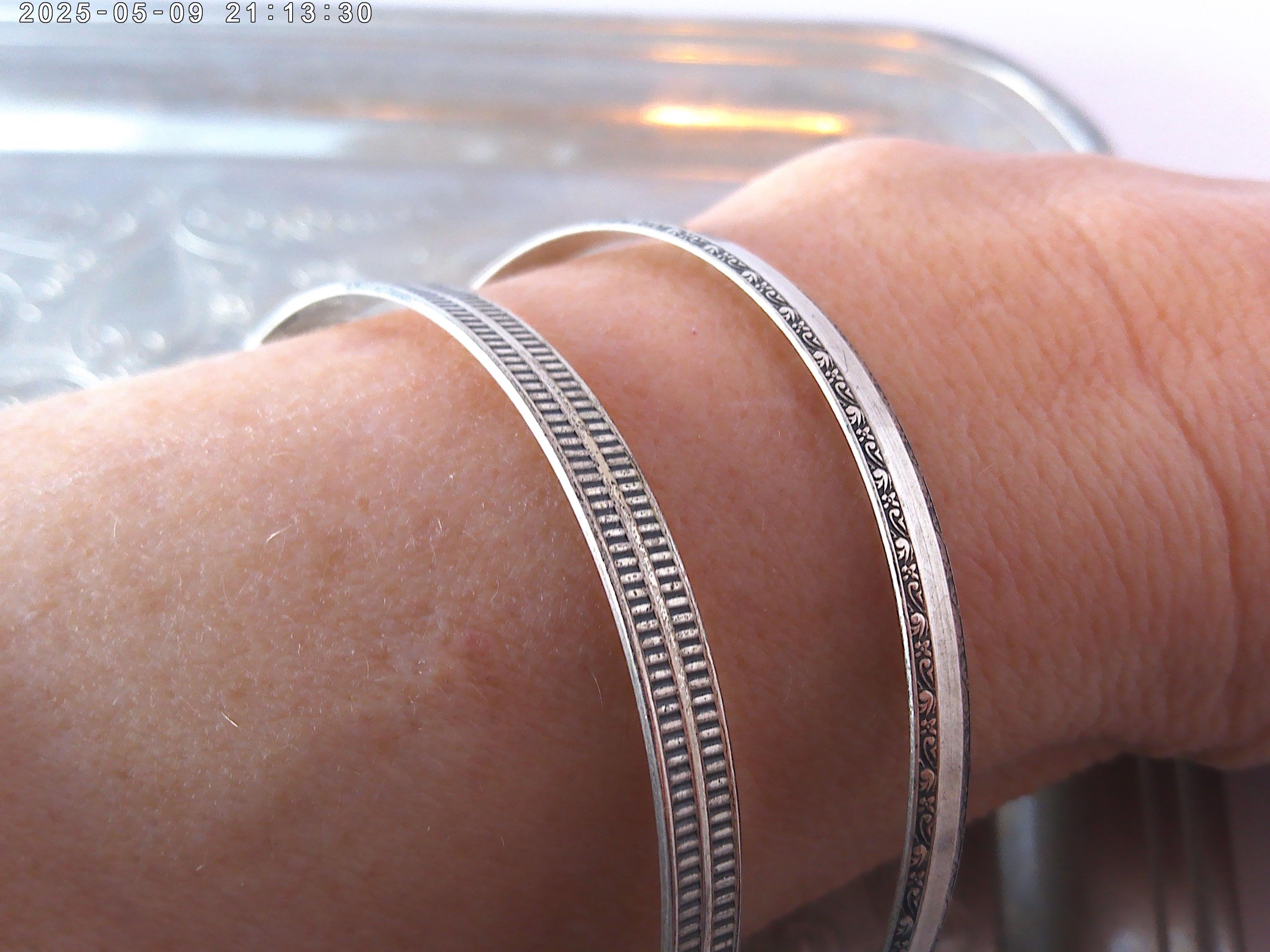 Great looking vintage bangles 1950's stamped Sterling pretty designs on each
