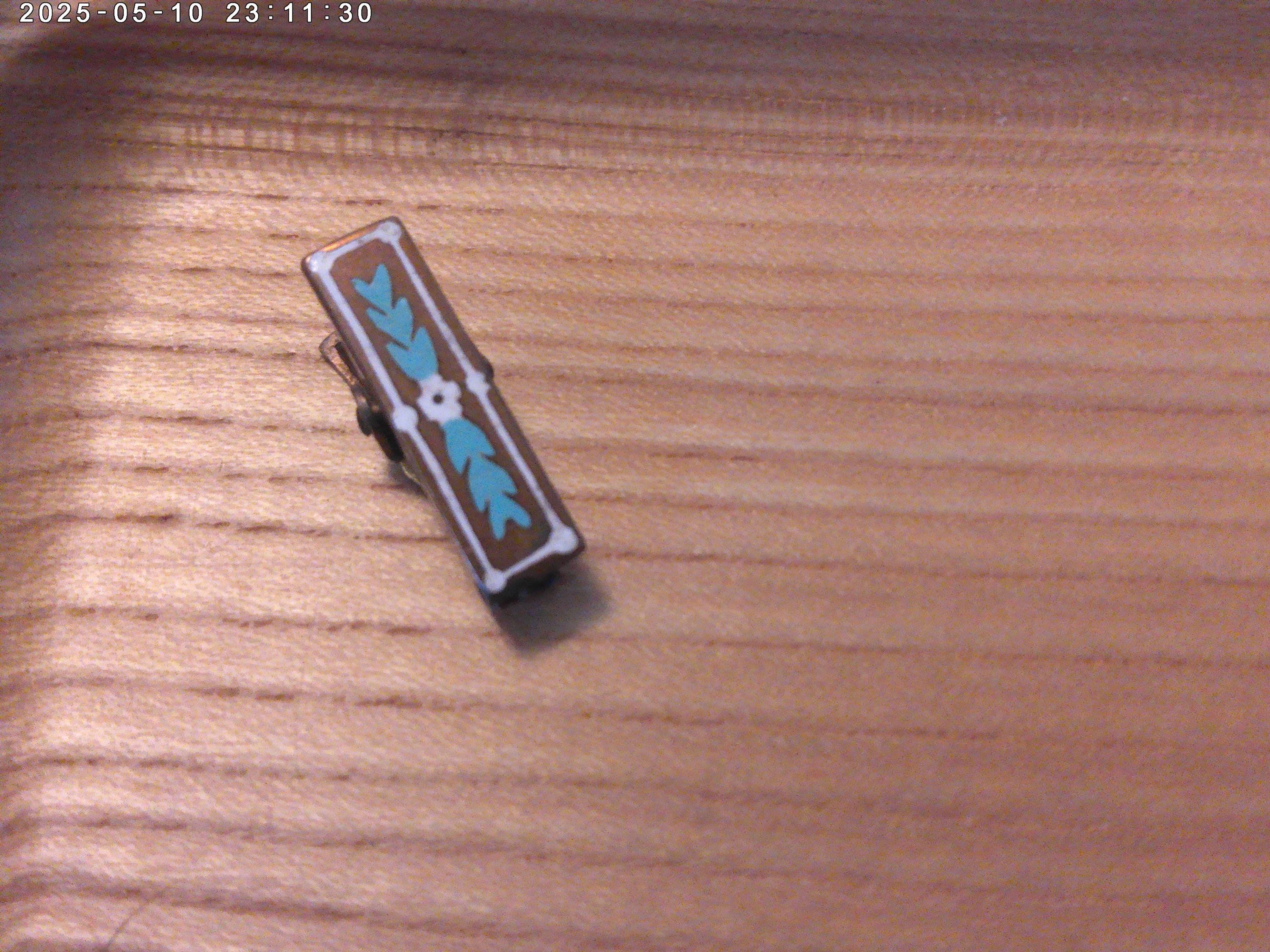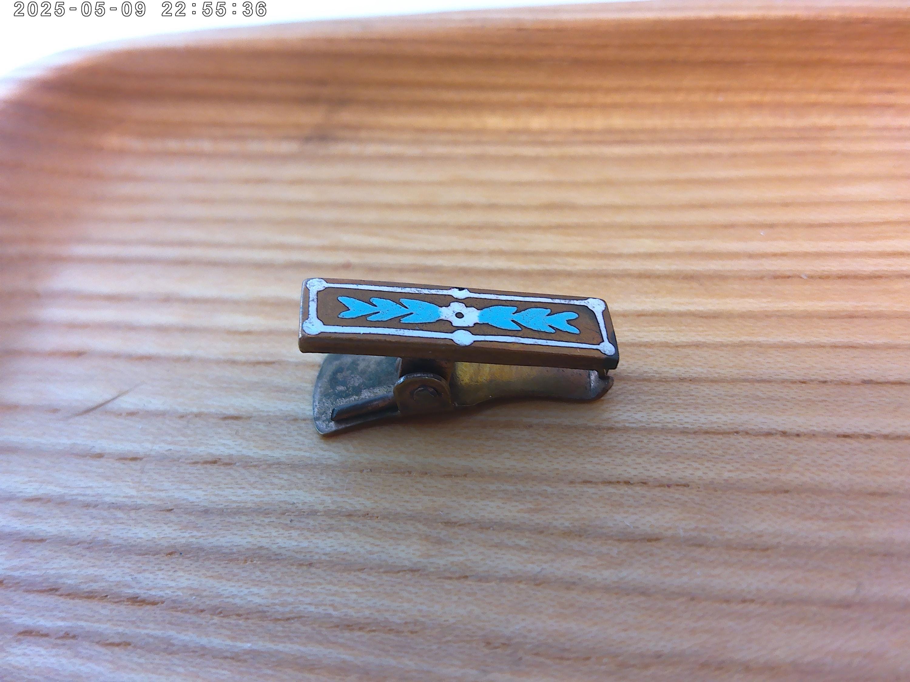 1" copper with lovely hand painted details clip brass backed- art deco era.