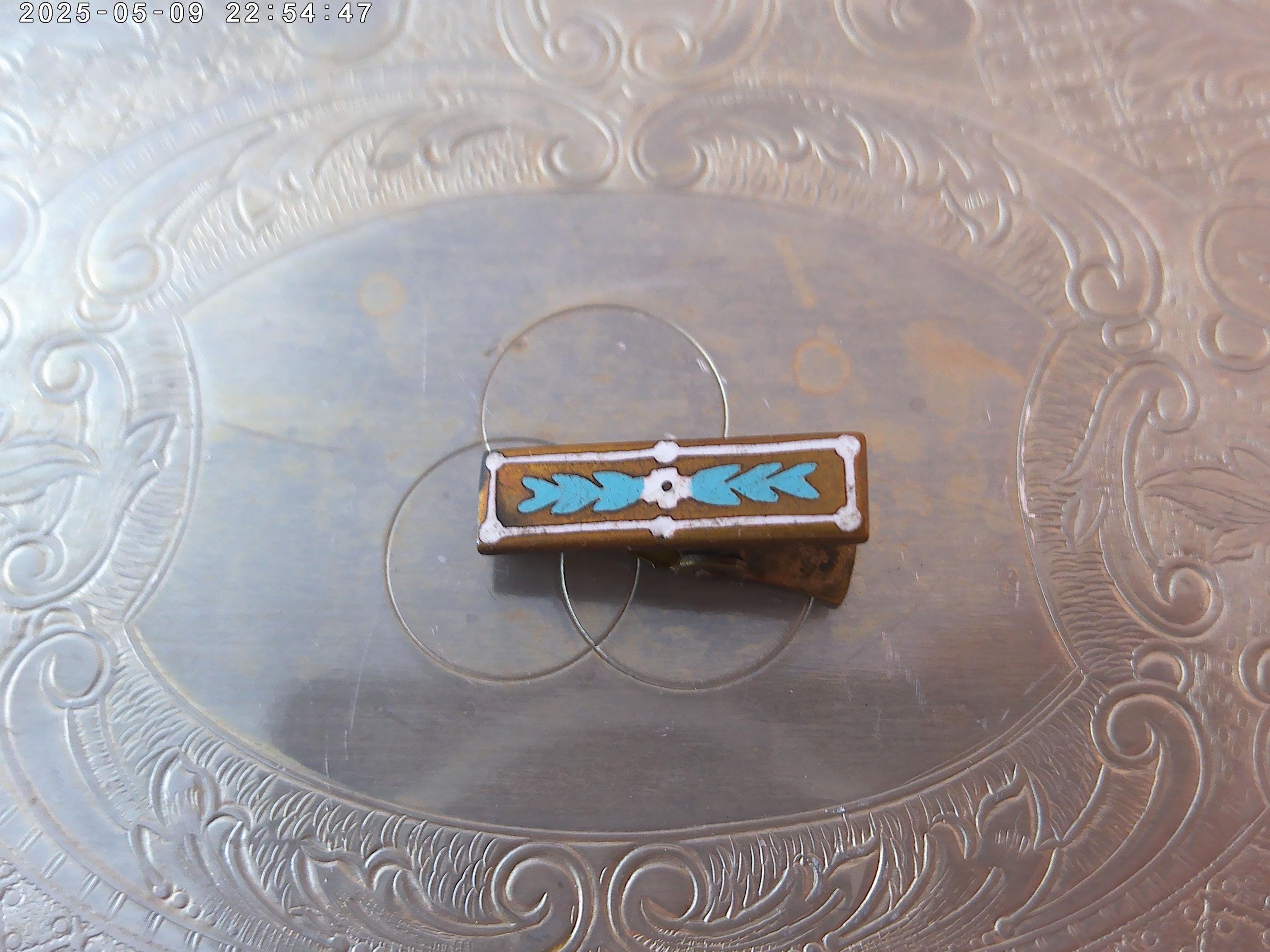 Antique 1920'-30's copper with hand painted flowers clip. unique unisex deco