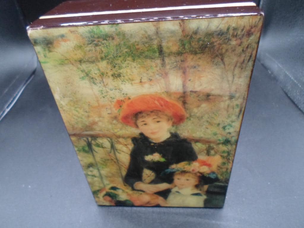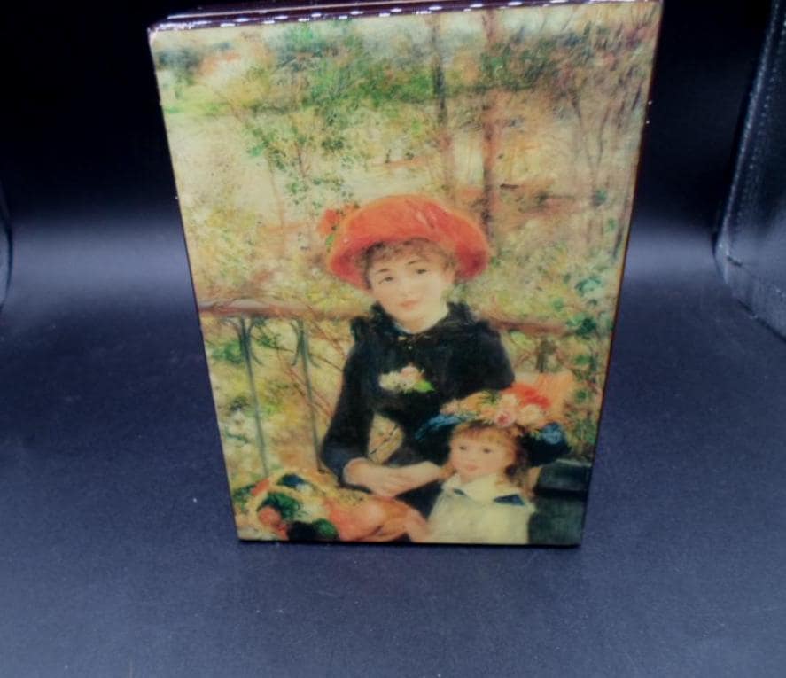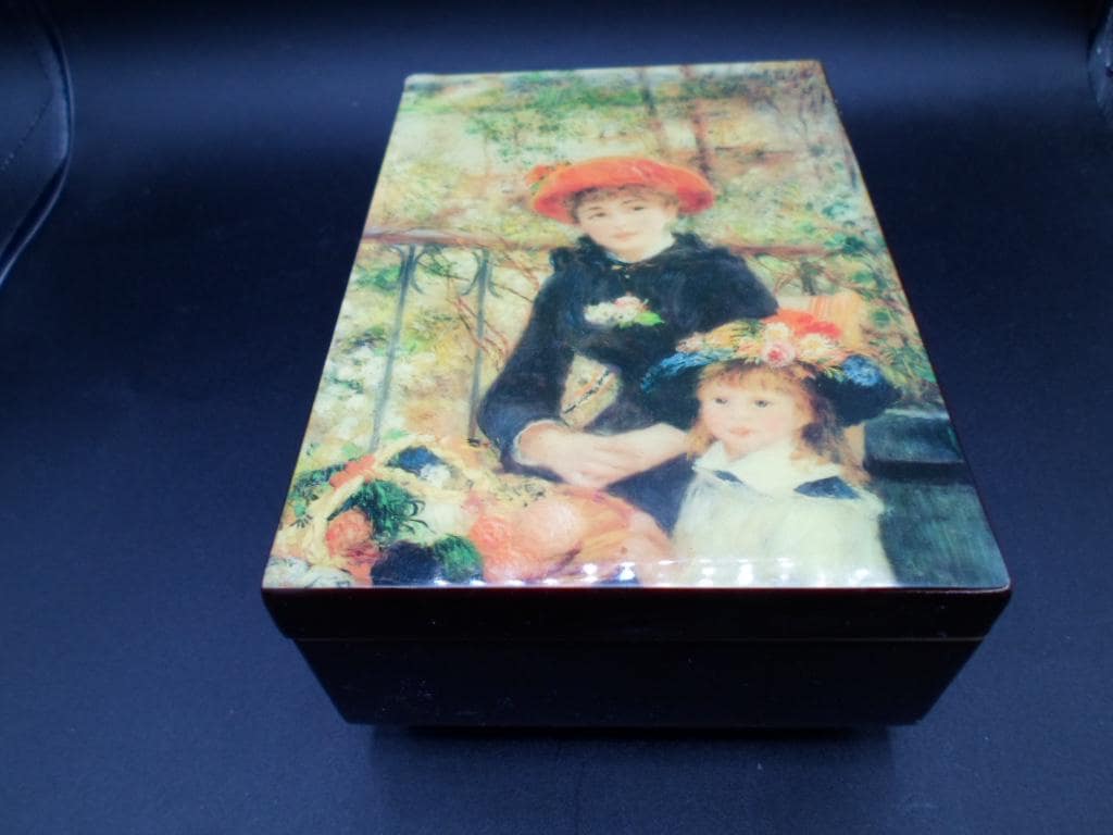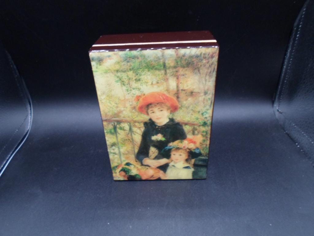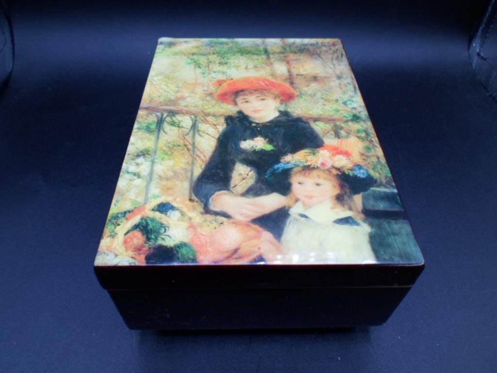Vintage Music Box Pierre Auguste Renoir Two Sisters on Terrace plays Love Story 1980's Lacquered Wood