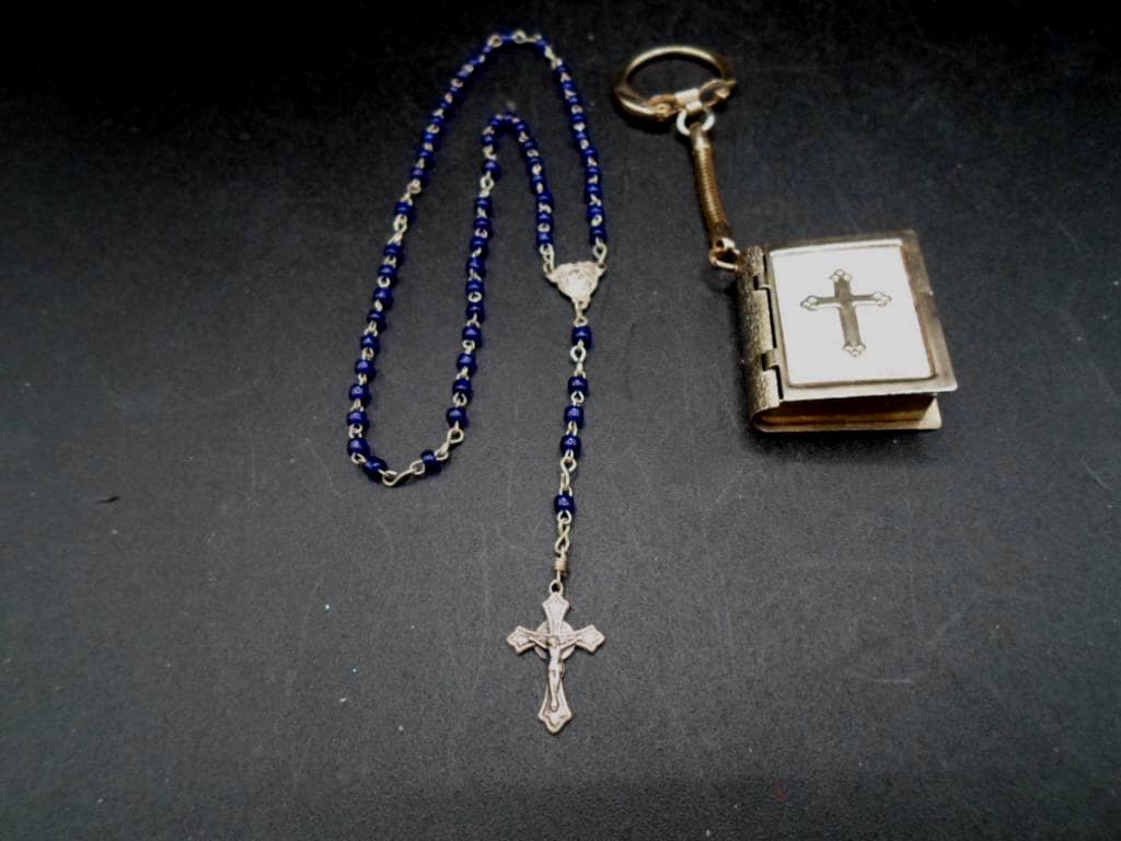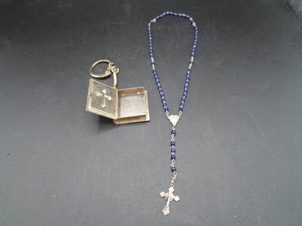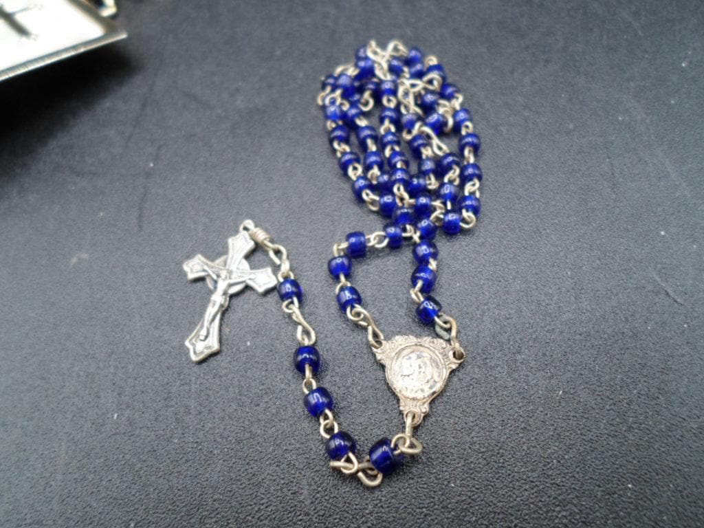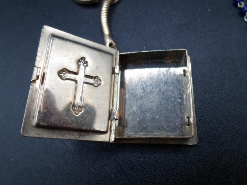 Vintage Mini Rosary in Book Bible Metal Case Glass Beads Rare Catholic Item