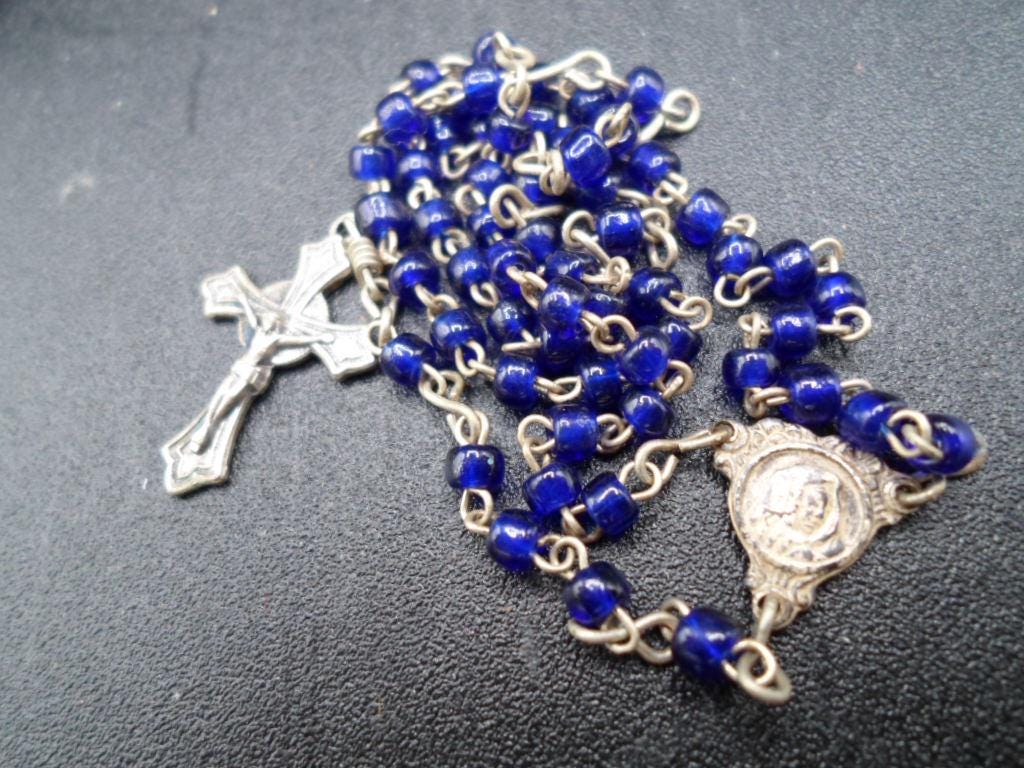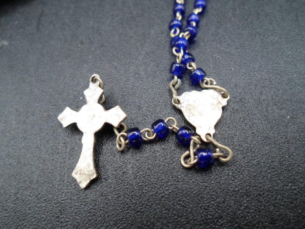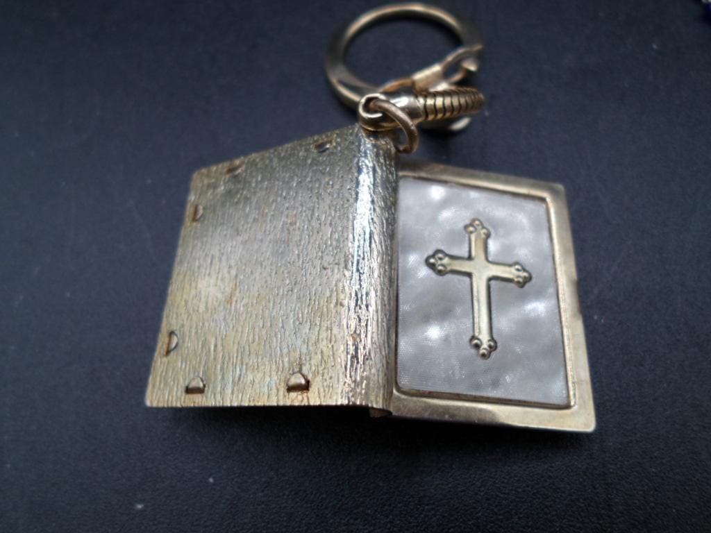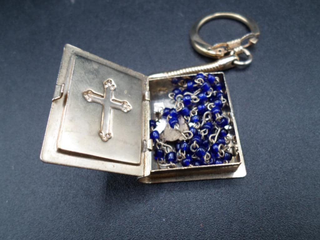 Vintage Mini Rosary in Book Bible Metal Case Glass Beads Rare Catholic Item