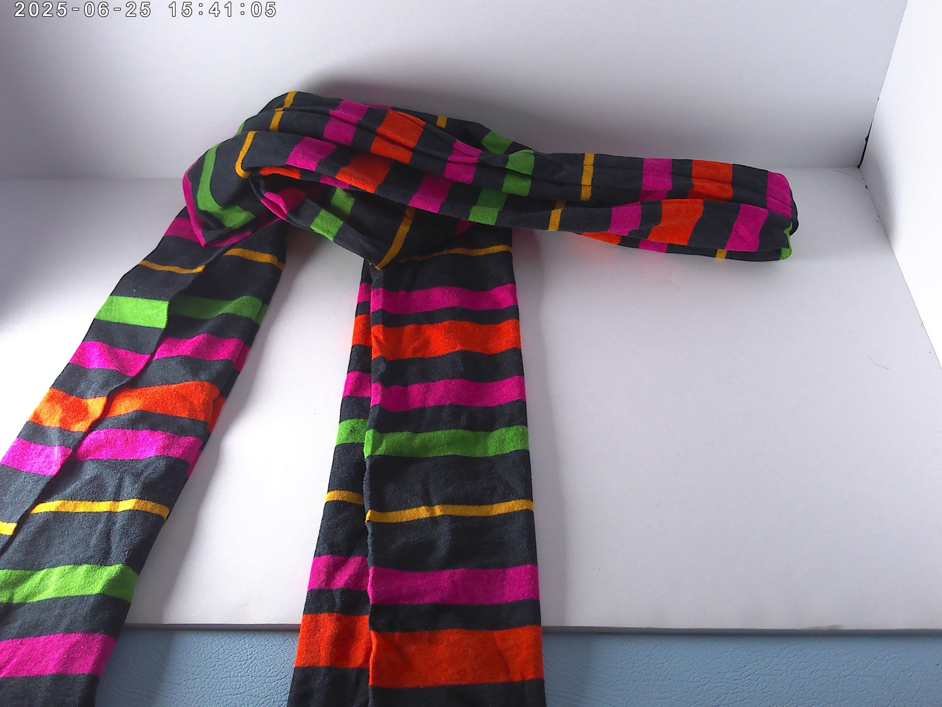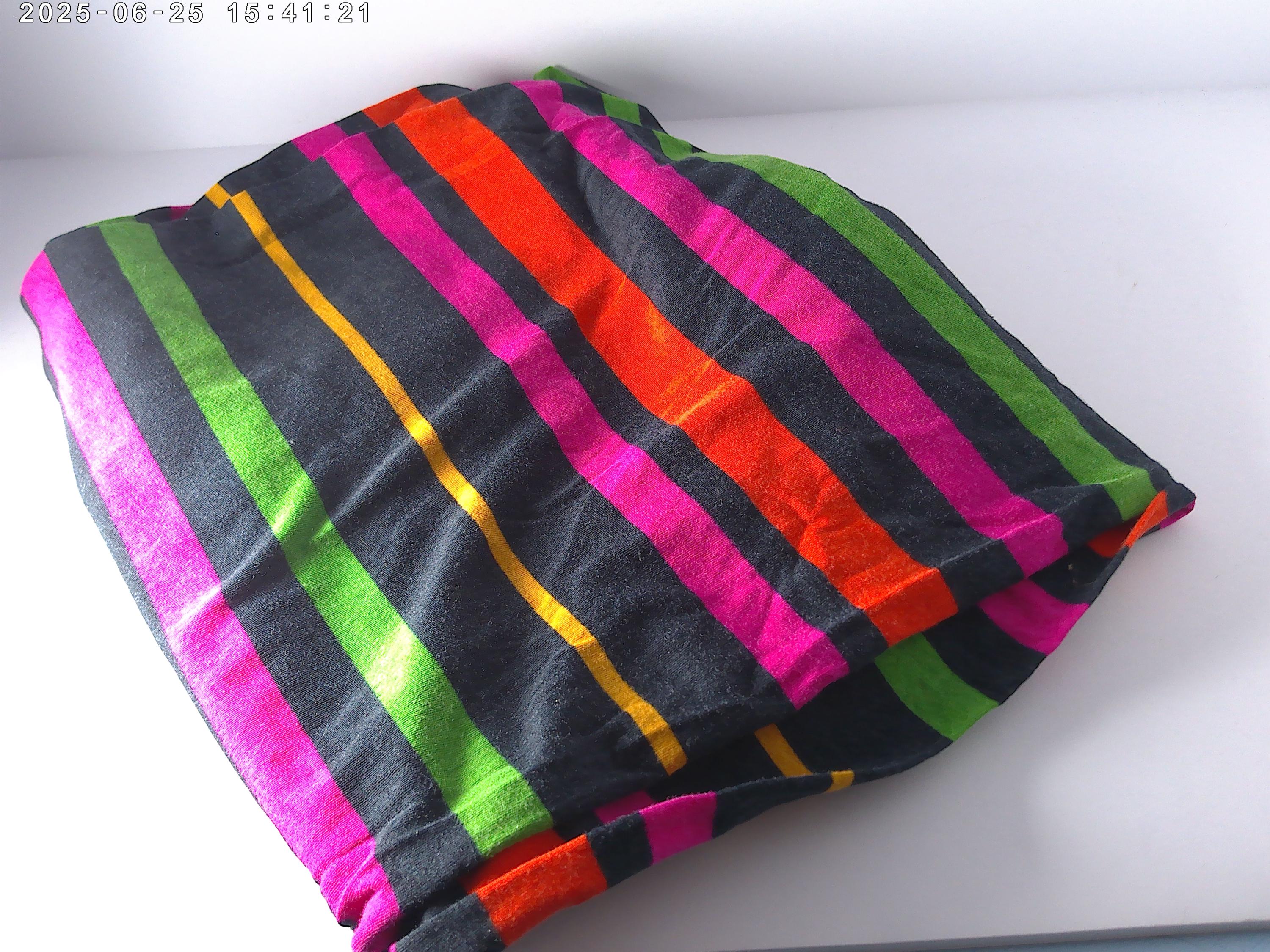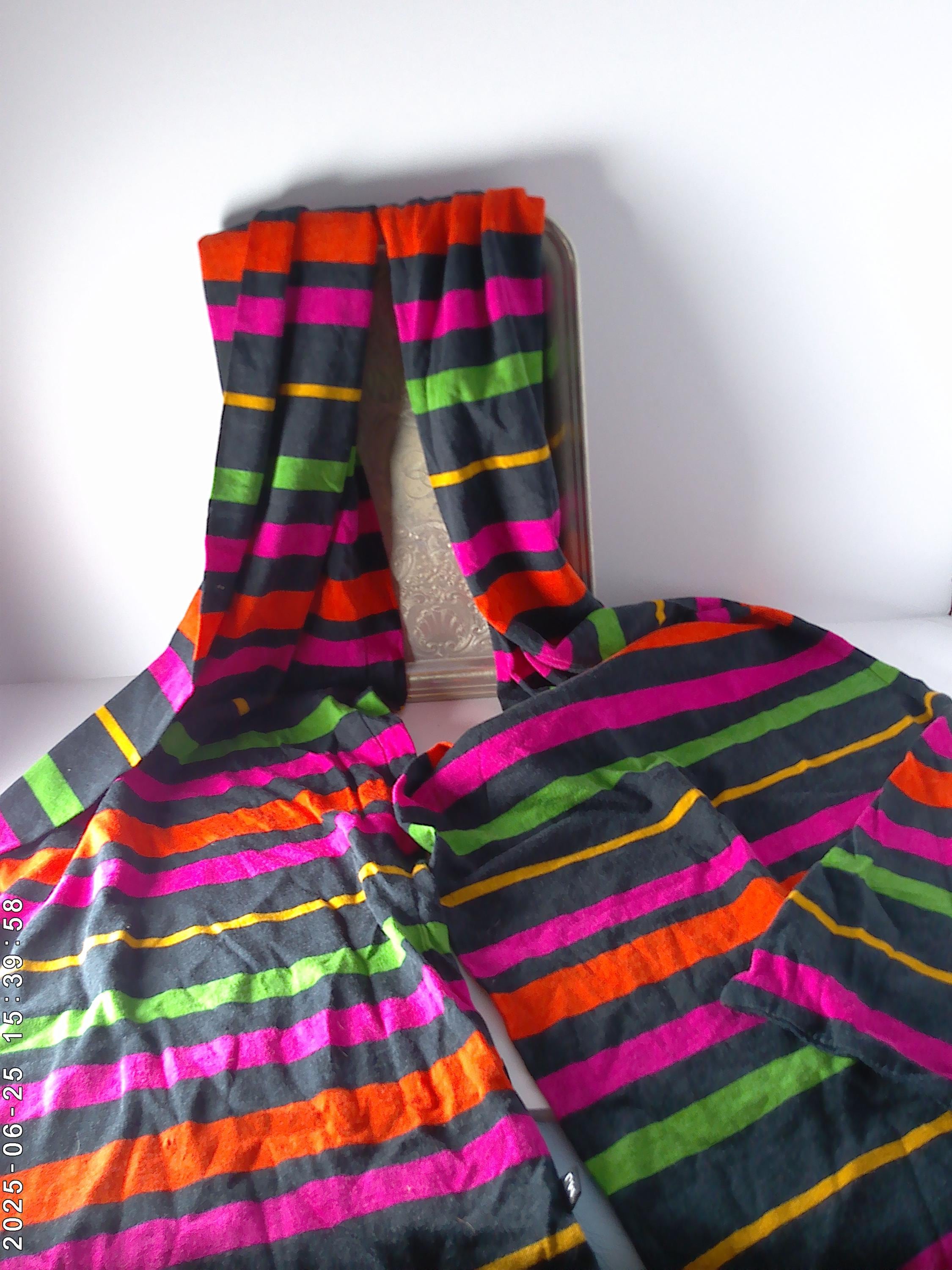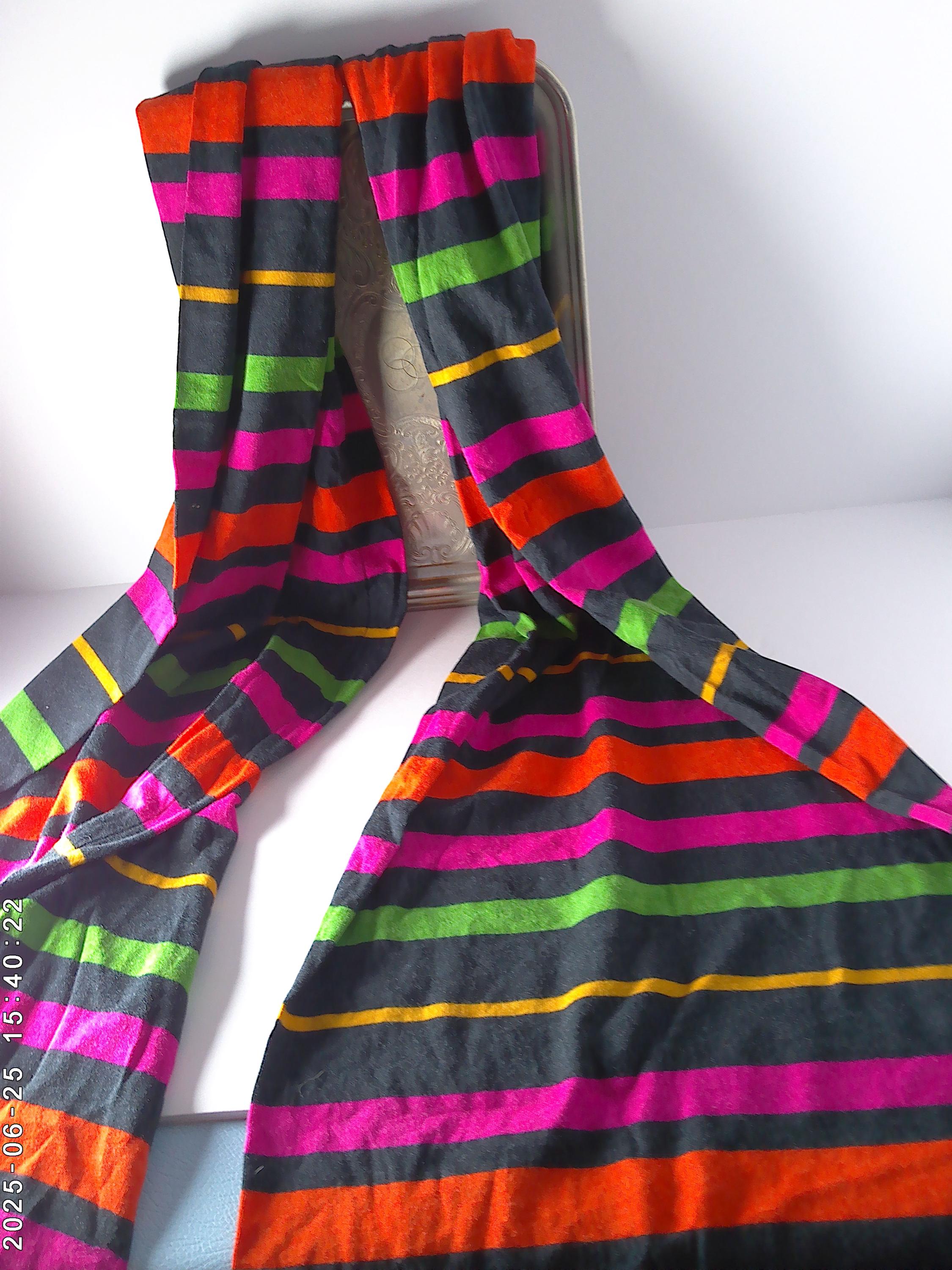 Navy with hot pink, orange lime green golden yellow stripes