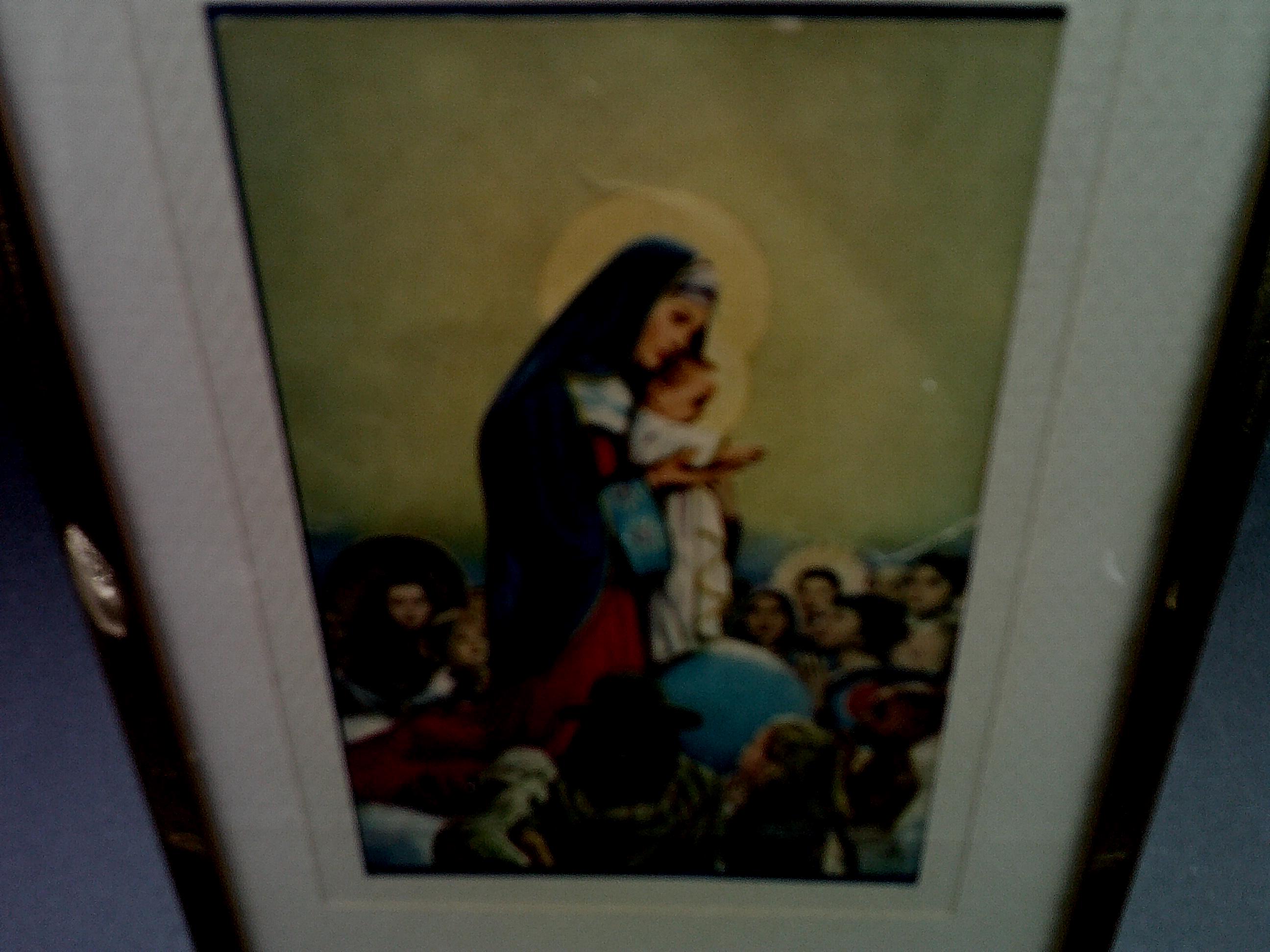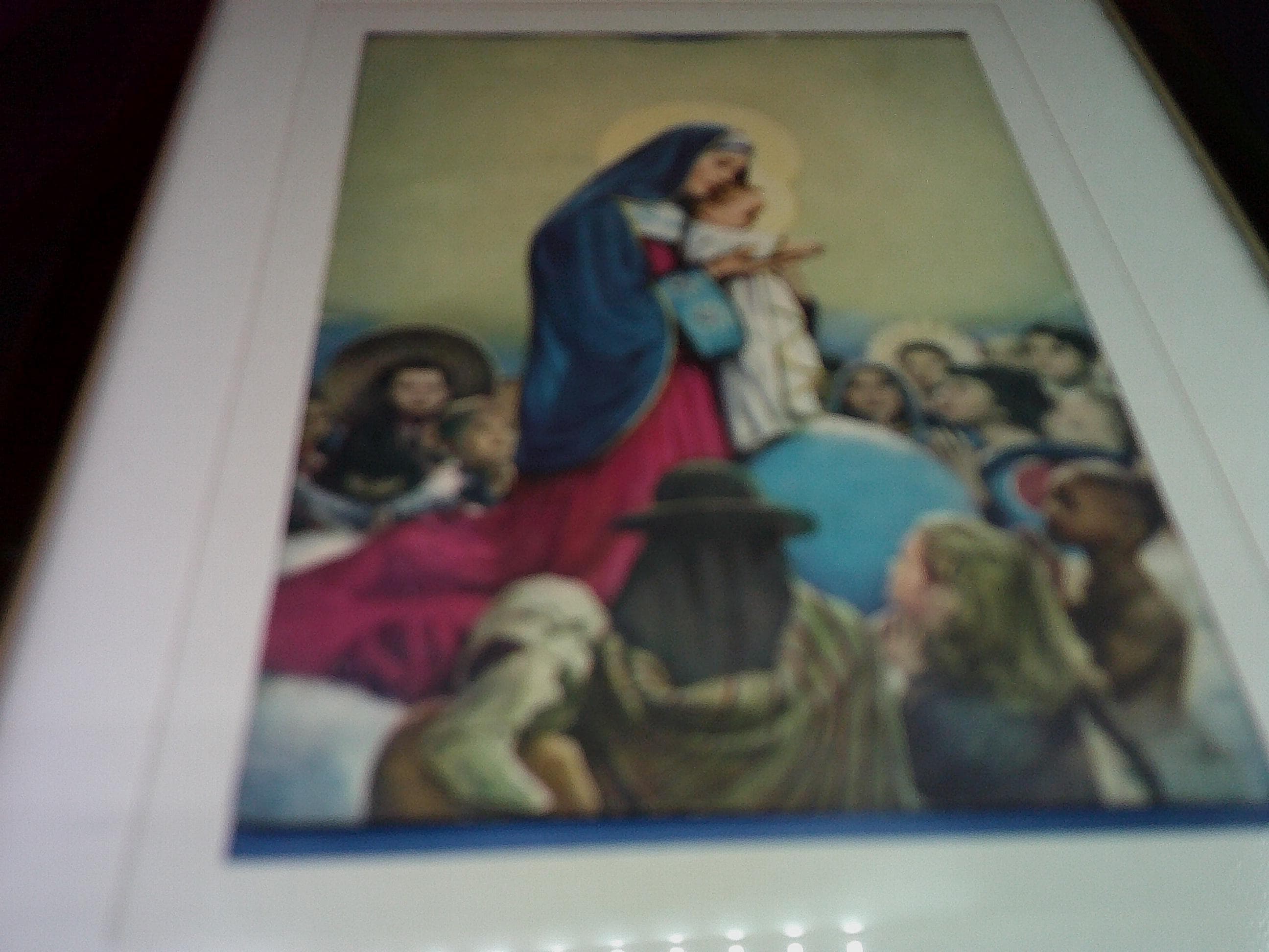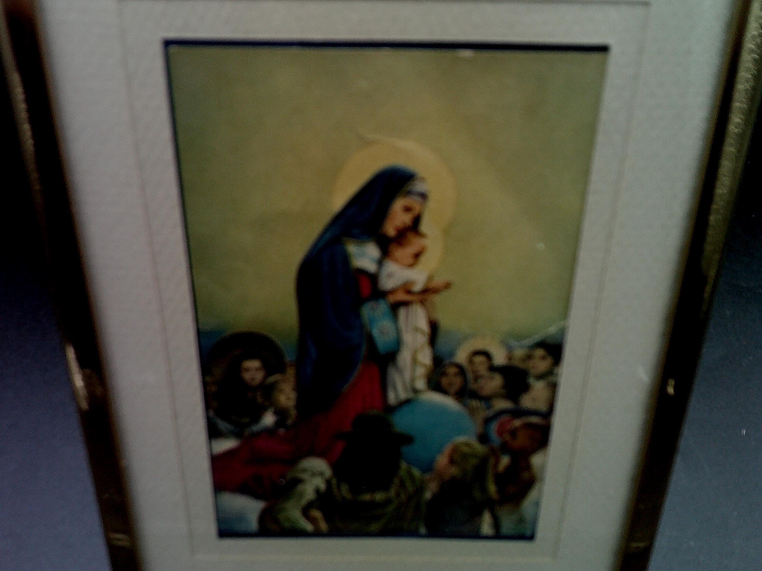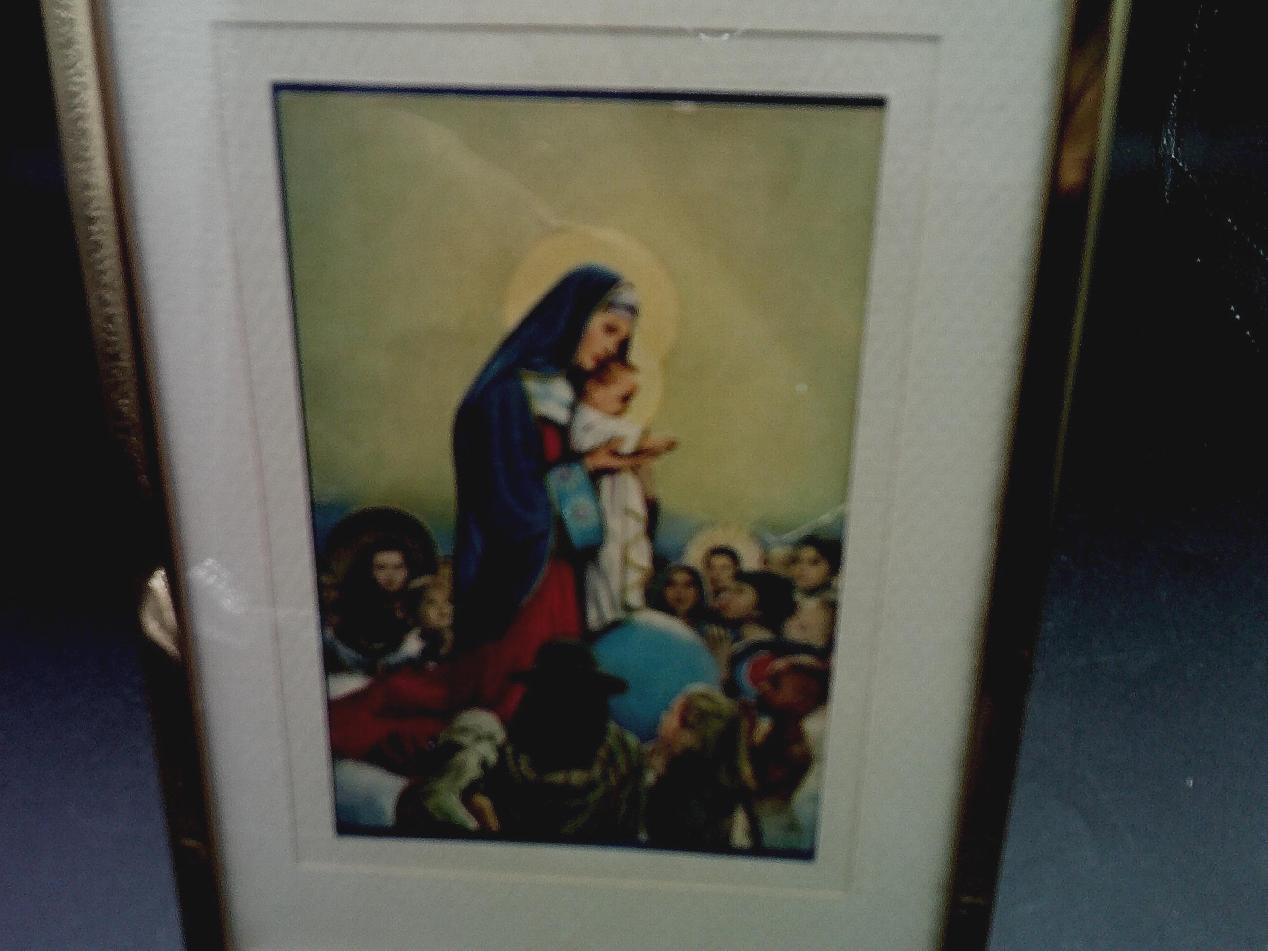 Vintage Art Deco Original Print Framed in Brass Virgin Mary Child Jesus People of many Cultures Brass Frame