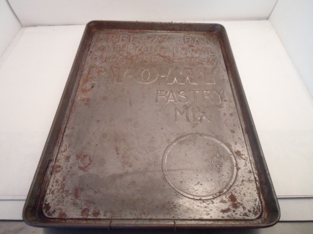 Vintage Art Deco Antique PY O MY pie oh my Advertising 49 cent Tin Baking Cookie Sheet Pan Ready to hang Farm House Chic